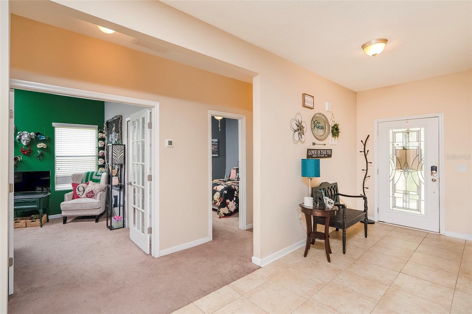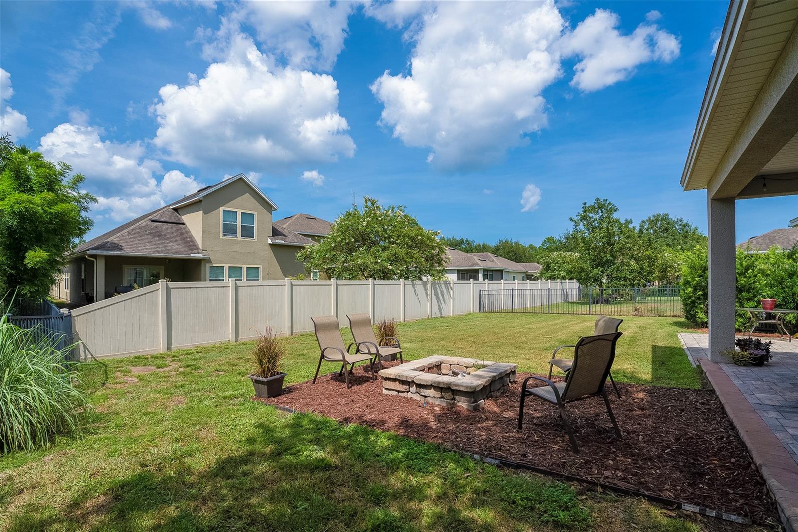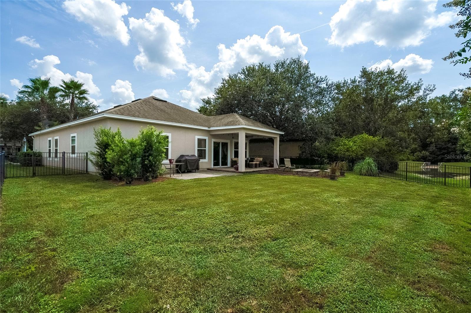 Beautiful elegant four bedroom home. The foyer leads you into an open kitchen, featuring an island, 42 inch cabinets, granite countertops, stainless steel appliances and breakfast bar area. All this in a café style area. This home also has an oversize gathering room. You are only steps to an awesome outside entertainment area. The area has a covered porch with ceiling fan. Porch will accommodate any outside furniture. Back yard is fully fenced and offers beautiful fall nights with a fire pit. Great oversized owner suite with lots of furniture space. The en suite bathroom oversized shower, plus a walk in closet that will not only accommodate an extensive clothing collection provides space for storage for additional items. This gorgeous home has a retreat room for office/den. Guest bathroom is very spacious definitely a plus. The community provides convenience to I-95, historic St. Augustine, hospital, beaches and within distance to shopping which includes a Publix. The St. Johns county schools district is top rated. Located just off of Kenton Morrison Road, Mission Trace is across from St. Johns River State College. Is also within distance to great dining.