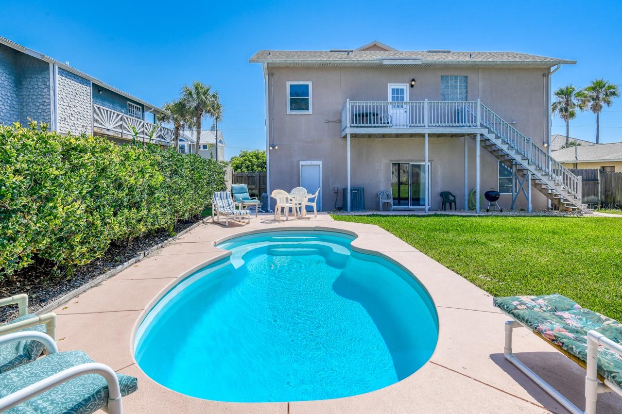 Great Location, Short Term Rental Pool Home! Ocean Views and so much more! Walk over to the White Sandy Beach in minutes or spend the day in the privacy of your own pool. This Home has so much to offer and so much more available. Enter the first floor from either side garage into a large Foyer. The Ground Floor has a Flex/Great room with sliders to the back yard and pool area. There is a full bath a storage closet and a bedroom on this level also. The Second Floor has an Open Floor plan, L/R - D/R - Kitchen. The Primary Bedroom is to the left of L/R with a huge In Suite Bathroom plus a 14x16 Balcony off this Suite. The second bedroom on this floor is to the right, with a In Suite bath and a 14x16 Balcony off it also. Behind the kitchen area is an entrance to the 2nd bedrooms full bath, a laundry/Utility room, a built-in office area and another balcony 17 x 6 across the back of the home. The 3rd Floor Crows Nest is set up as another bedroom with Amazing Ocean Views. A in-ground pool with deck for Sunning loungers and an umbrella table. The Fully Fenced back yard adds privacy to the pool area plus has plenty of green space for vacation fun. Currently on a short term rental program, being left available to show for the month of May... Come check it out Room Feature: Linen Closet In Bath (Primary Bedroom).