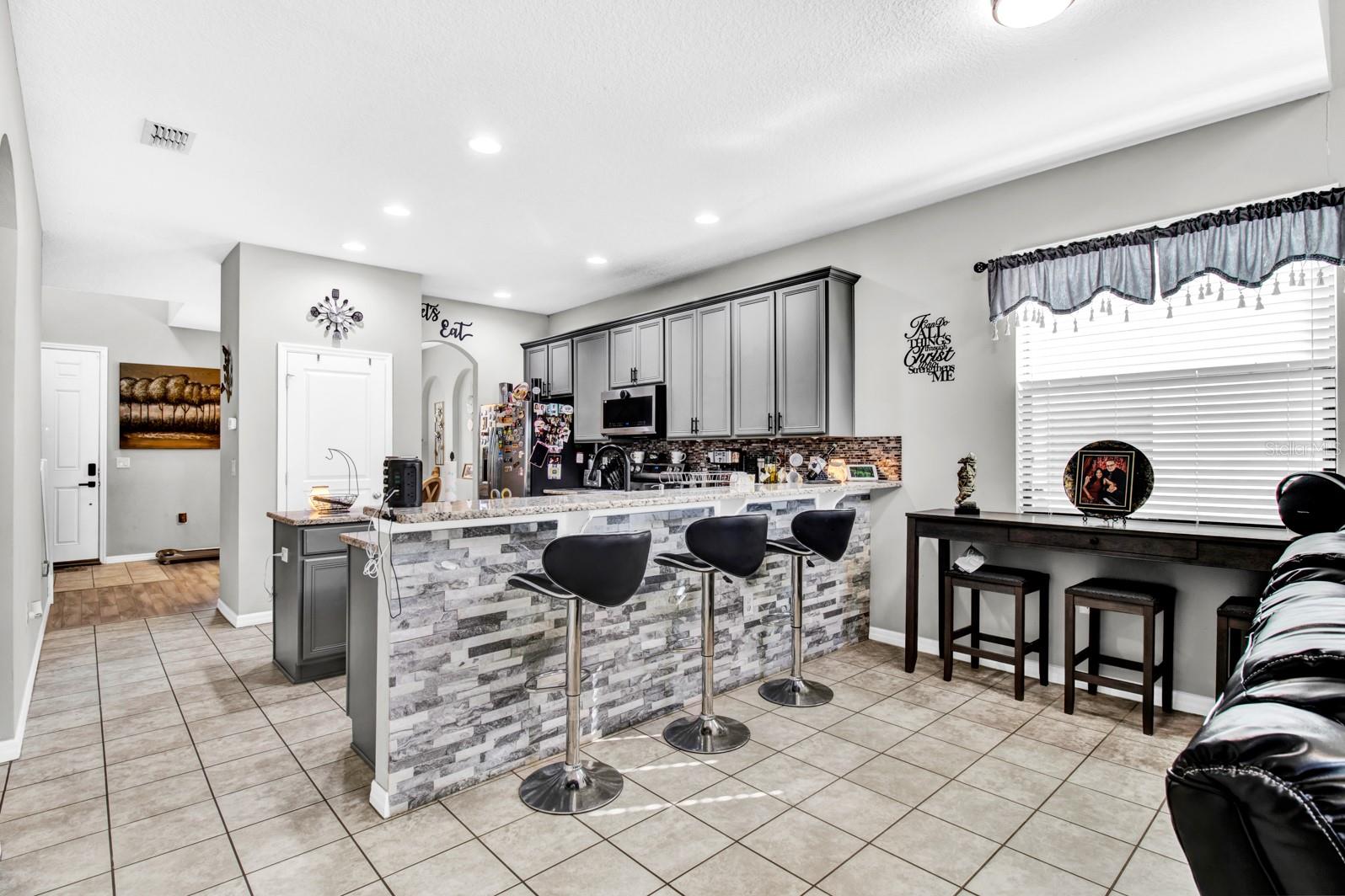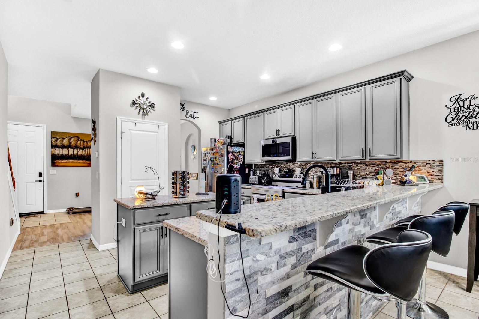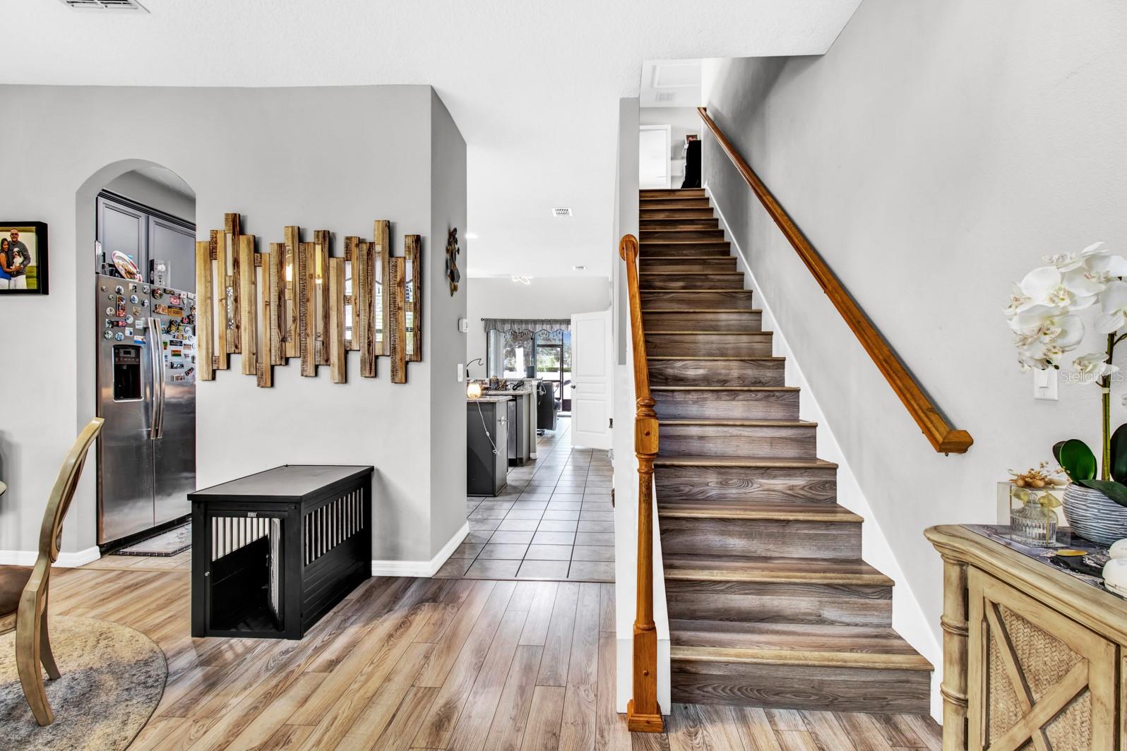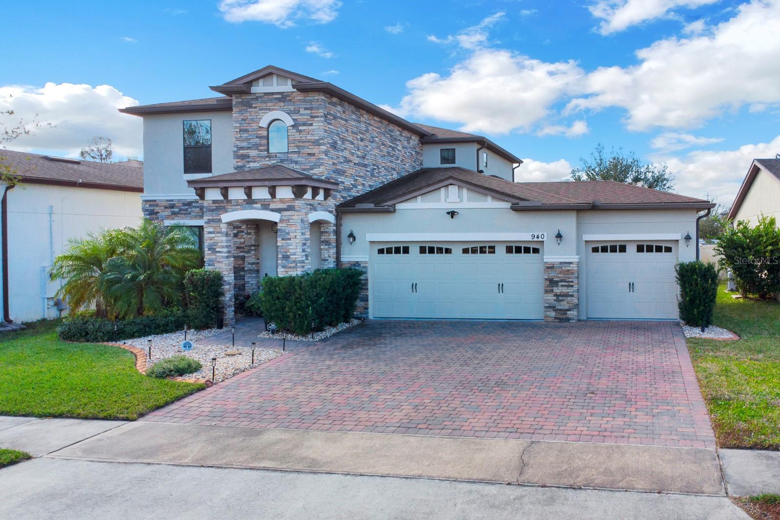 Welcome to this stunning stucco and stone two-story home, perfectly situated in the highly desirable Stonewood Estates neighborhood. With 4 spacious bedrooms, 2.5 bathrooms and a HUGE 3 car garage with speckled floor! The main bedroom is downstairs, providing separation from the other bedrooms. This home offers the ideal blend of elegance, comfort and the conveniences of being near shops and schools. Beautifully upgraded laminate flooring in the main bedroom and the formal dining room with stairs leading to the upper level loft area meshes seamlessly with the tile and carpeting in the other bedrooms adding warmth and and modern appeal. The layout of the house is perfect for entertaining, featuring a bright and airy living space that effortlessly connects to the large island kitchen and dining areas. Outdoors, the thoughtfully added pavers that enhance the curb appeal and provide a stylish space for relaxing or hosting small gatherings. The home's timeless stucco and stone exterior ensures a lasting impression. Conveniently located in St. Cloud, Stonewood Estates offers easy access to shopping, dining, top-rated schools, and major highways, making your daily commute a breeze. Don't miss this opportunity to own a beautifully upgraded home in one of St. Cloud's premiere neighborhoods. Schedule your showing now!