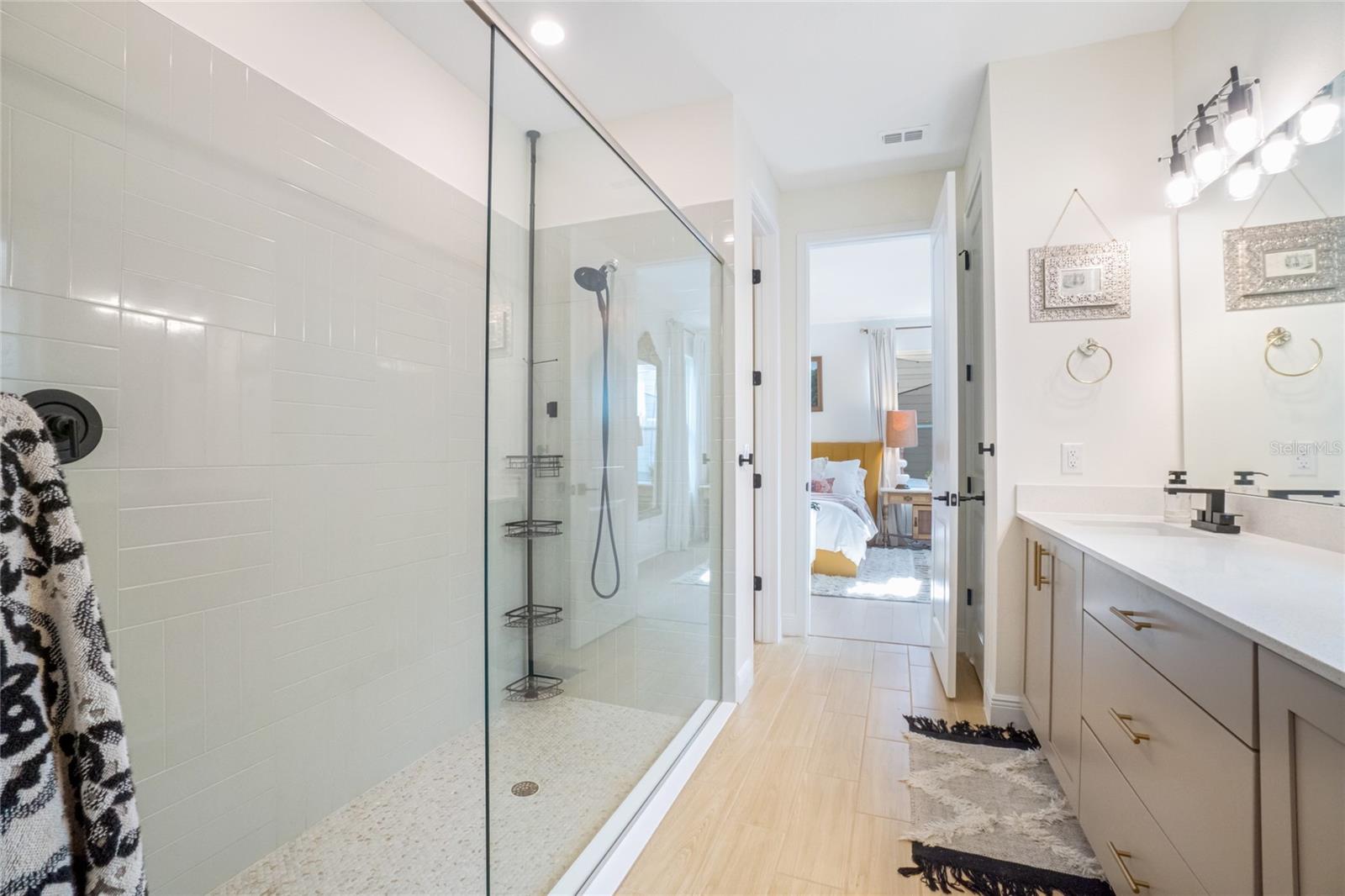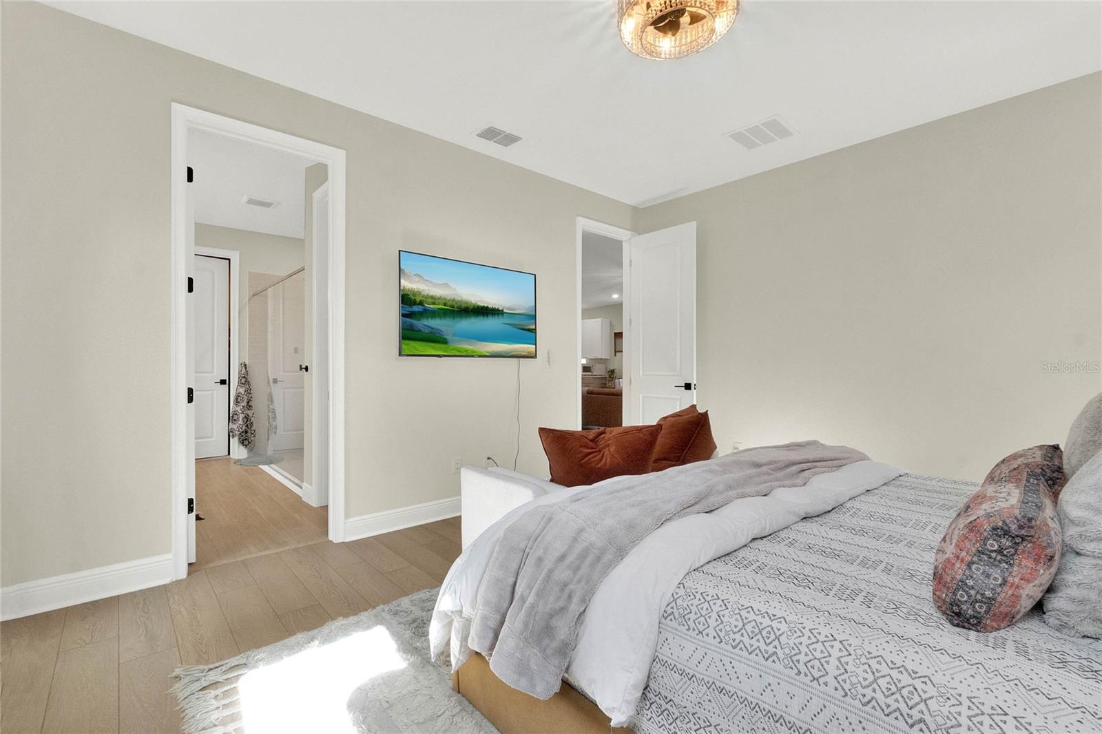 Welcome to Weslyn Park, the "Naturehood", part of the Tavistock Master Planned Community. Built in August 2024, this 3,800-square-foot home blends luxury and functionality with nature-inspired living. This home offers 4 bedrooms and 4 full bathrooms, plus an optional 5th bedroom or flex space. Detached Garage Apartment: The 800 sq. ft. apartment features a full kitchen, bedroom, bathroom, and washer/dryer. Perfect for rental income, extended family, or a workspace. The gourmet kitchen boasts Cafe Series White and Gold appliances, a double oven, hardwood cabinets with dovetailing, and a custom wood hood over the range. The first floor features luxury vinyl flooring, and the spa-like primary bathroom includes a large glass-enclosed shower. Upstairs, a spacious loft includes a bedroom and full bath, ideal for guests or a private retreat. Solar panels included with the home, significantly reduce energy costs, adding to the home’s appeal. HOA includes high-speed internet, ensuring seamless connectivity and all amenities listed below. Enjoy peace of mind with the Ashton Woods Full House Warranty, transferable to the new owner. Community Highlights: New Amenity Center under construction, including, a restaurant, bar, event spaces, and trailhead for hiking, kayak dock, zero-entry resort-style pool, and fitness center. House is two blocks from the current community pool and park. Zoned for the state-of-the-art K-8 Voyager School, within walking distance. This exceptional property offers luxury living, rental potential, and top-tier amenities in a vibrant community. Lake Nona only a few miles away as well. Don’t miss your chance to call 6542 Rover Way your home!