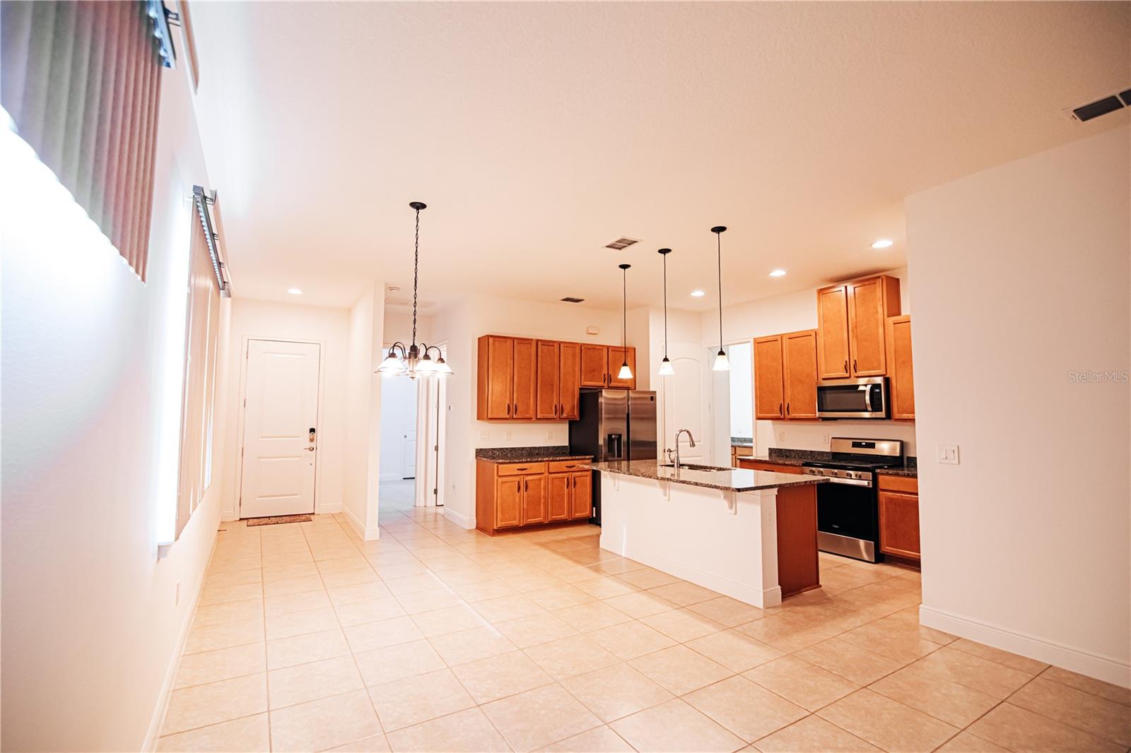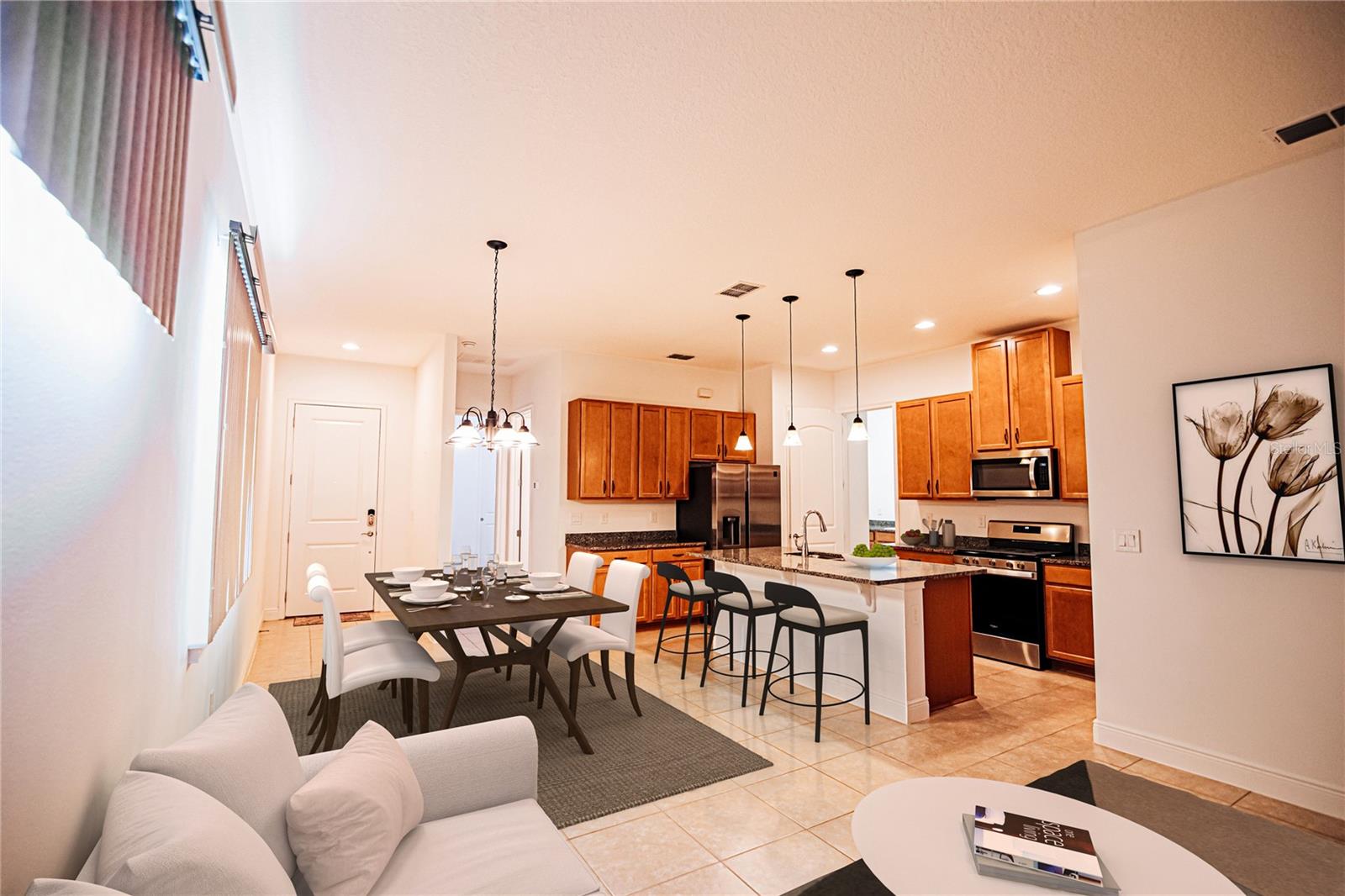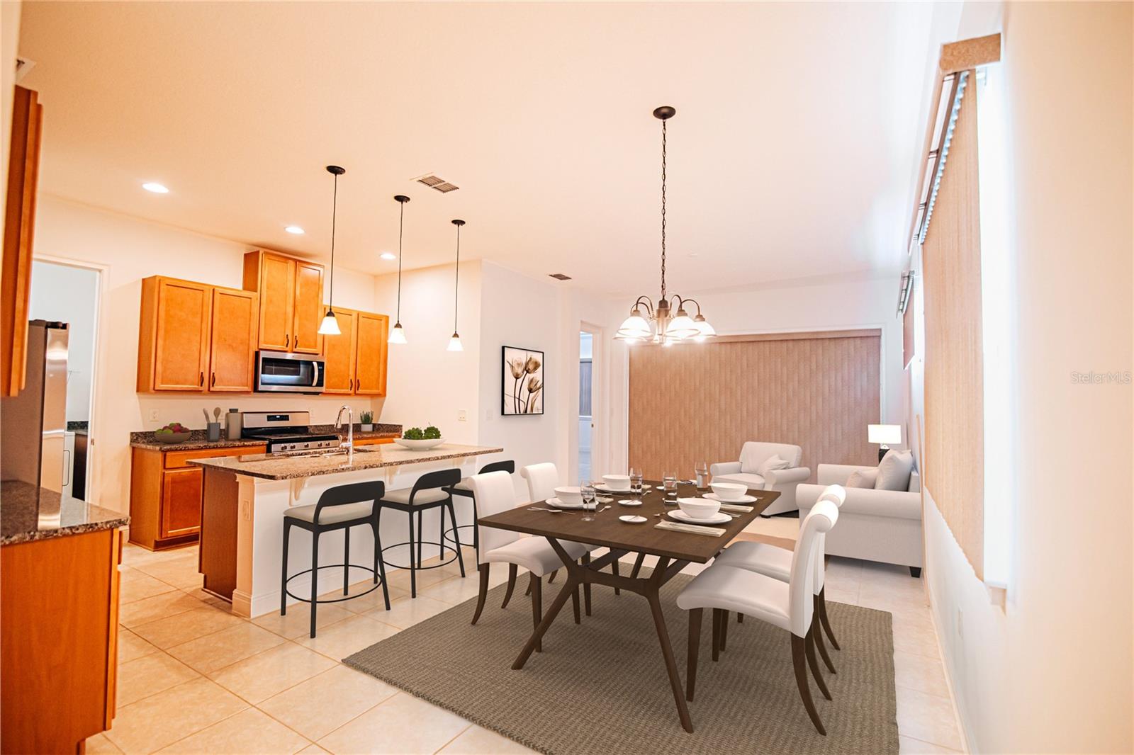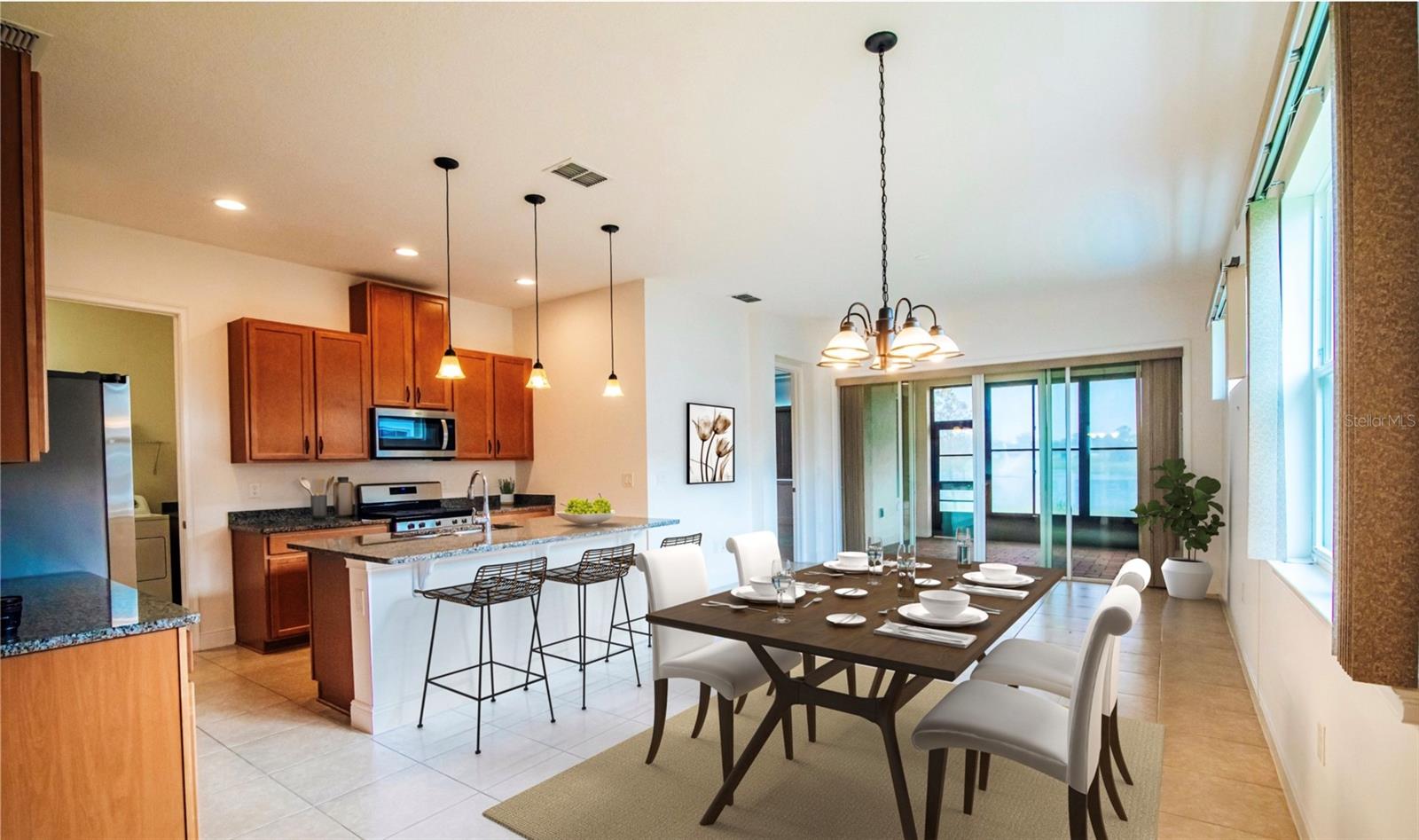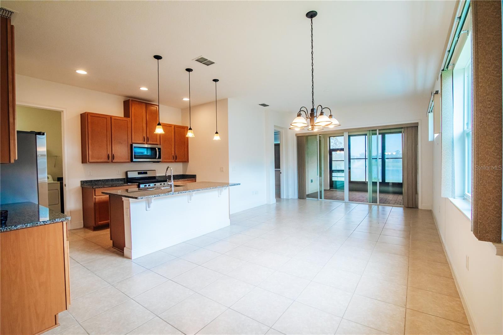 One or more photo(s) has been virtually staged. Welcome to Twin Lakes, a highly desirable gated community for active adults 55+. Boasting 2 beds, 2 baths and an open floor plan, this waterfront home is situated on a premium lot, offering a serene setting with views of the tranquil water, wildlife and fountain. Enjoy the open, gourmet kitchen, featuring an island, porcelain tile flooring, granite countertops, upgraded cabinets, large pantry and stainless steel gas stove and appliances. The master bedroom includes trey ceiling, a huge walk-in closet, providing ample storage space. The home also offers a large inside laundry room with plenty of storage space. Enjoy your morning coffee or sip wine watching the sunset from the enclosed lanai. The lanai extends your living outside year round as it is insulated and has vinyl windows. Amenities include Resort style pools, Lap Pool and 3rd pool on the carriage house side, 20,000 square foot Gorgeous Clubhouse, State of the art Fitness Center, Flex room, Tennis Courts, Putting Green, Walking Trails, Pickle Ball Court, Fishing, and Pontoon Boats and Jon boat to use on Live Oak Lake! The community has many active and socializing activities. East Lake Toho MARINA is just minutes away. Make this your forever home or a wonderful winter retreat that is conveniently located 30 minutes from Orlando Airport, 45 minutes to the beaches, 20 minutes to Lake Nona, the VA hospital, Medical City, and great restaurants! This move-in-ready home on a premium waterfront lot truly offers a remarkable lifestyle, it's just waiting for you! Schedule a viewing today for your future home! Buyer to verify HOA and community info, square footage, measurements, lot size and taxes.