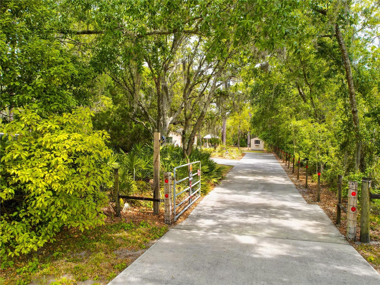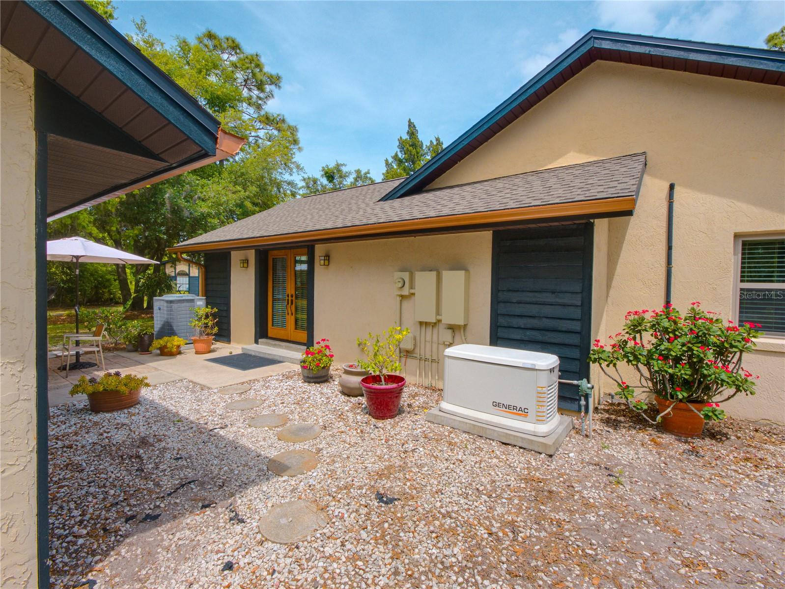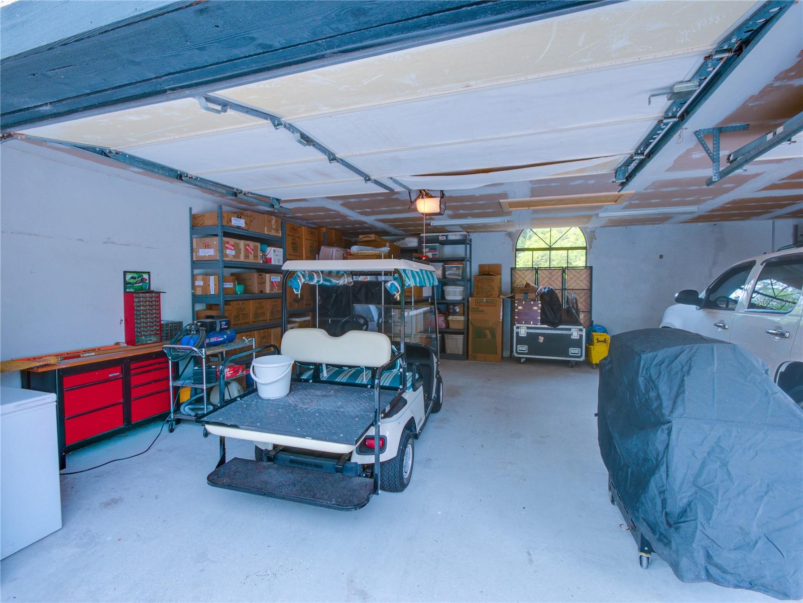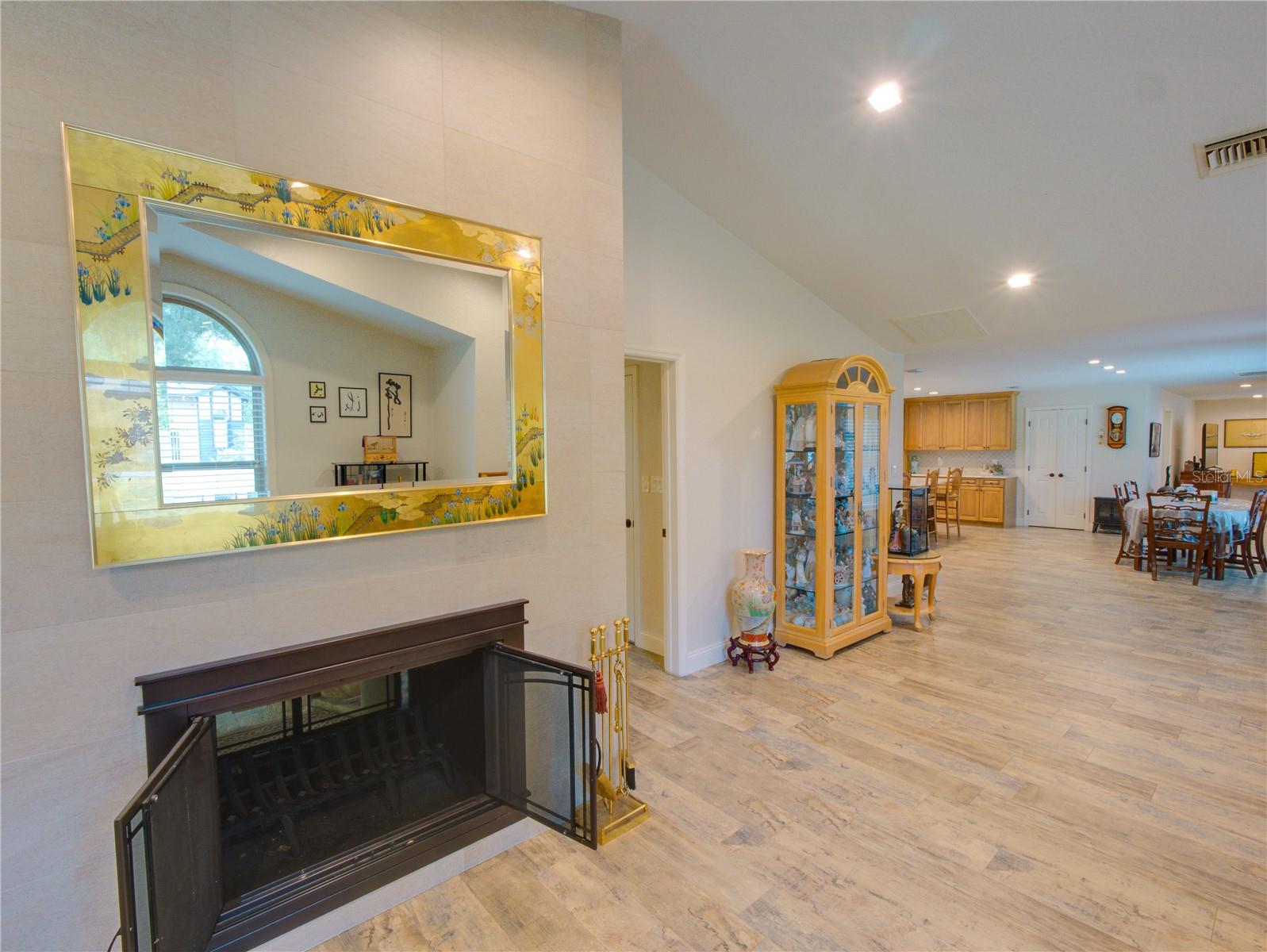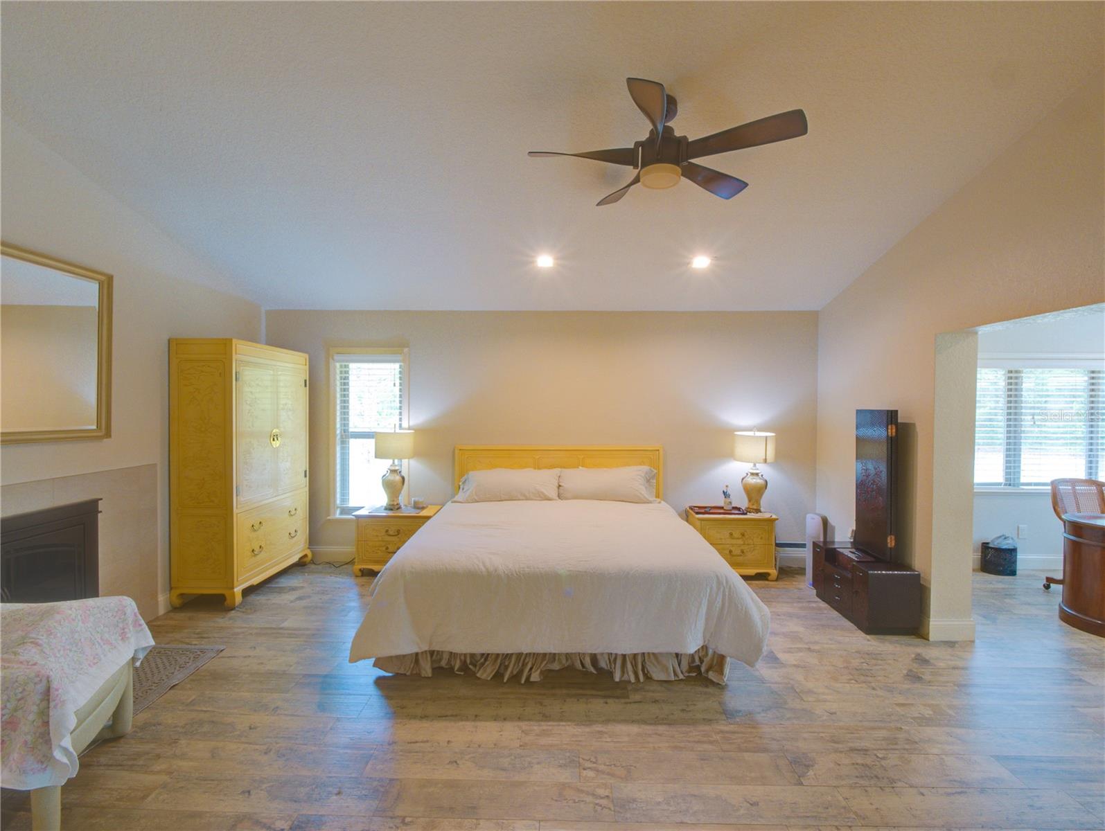 New Price and newly constructed wall and French doors for large 3rd bedroom/bonus room (7/2024). Rare find has room for all the space you need on private 2.42-acre mature wooded lot only 6 miles to Lake Nona area. Home has been renovated and updated top to bottom since 2017. Huge chefs' kitchen is centered in home with very open floor plan has access from all living areas with an abundance of solid surface quartz countertops, high-quality built-in appliances with pull out vented exhaust fan over cooktop, double ovens, 2 drawer dishwasher, custom built 42" cabinetry. Flooring was redone in all wood look porcelain tile with ceramic tile in bathrooms. All energy star double pane windows. Large primary bedroom featuring wood burning fireplace and adjacent office area, walk-in closet and ensuite bathroom. Need space for your business, RV, shop, or multicar garage? You found it here with separate 2380 sf is 50'x45'+12x10 attached office, solid block-built warehouse like space with 3-12-foot-high roll up doors, 2 end doors 14 feet wide and middle is 12 feet wide. Also has upgraded 200-amp service, separate from residence. Need more space? There is another 750 sf (30'x25') free-standing garage next to house off of the long circular driveway. Another 12x8 shed was built as grandkids playhouse. Exterior of residence was painted in 2022. All 3 roofs replaced 2021. Whole house re-plumbed and Generac generator with underground propane tank 2018. New 16 seer HVAC 4/2021. New well was done 1 year before current owner (2016).All of the 2.42 acres is wire fenced with 2 metal driveway gates.