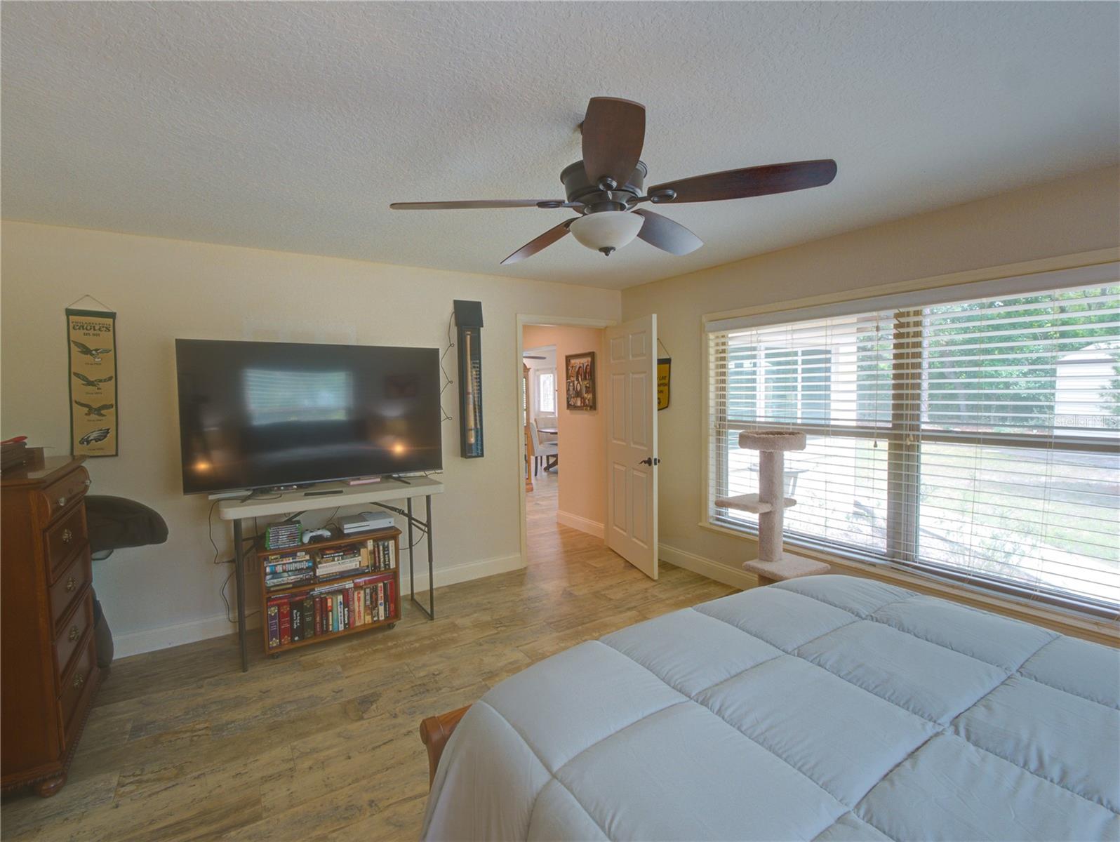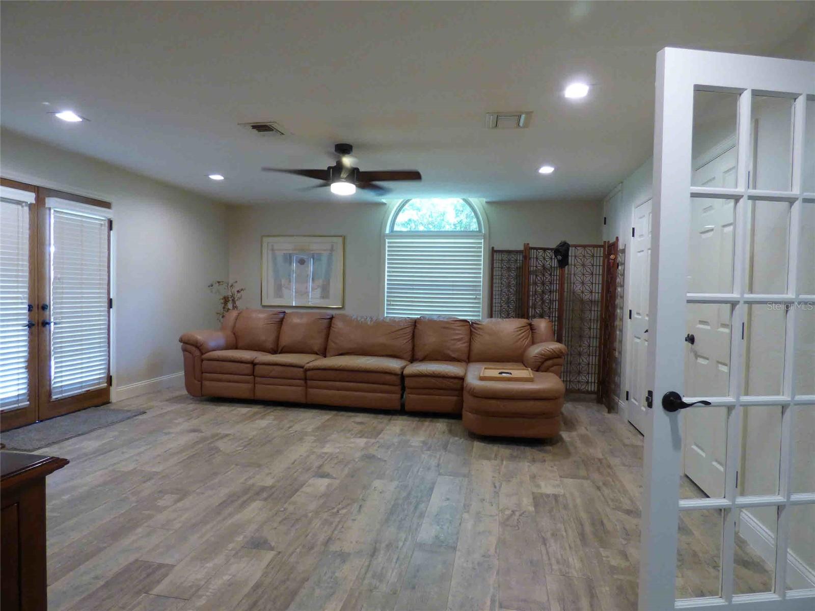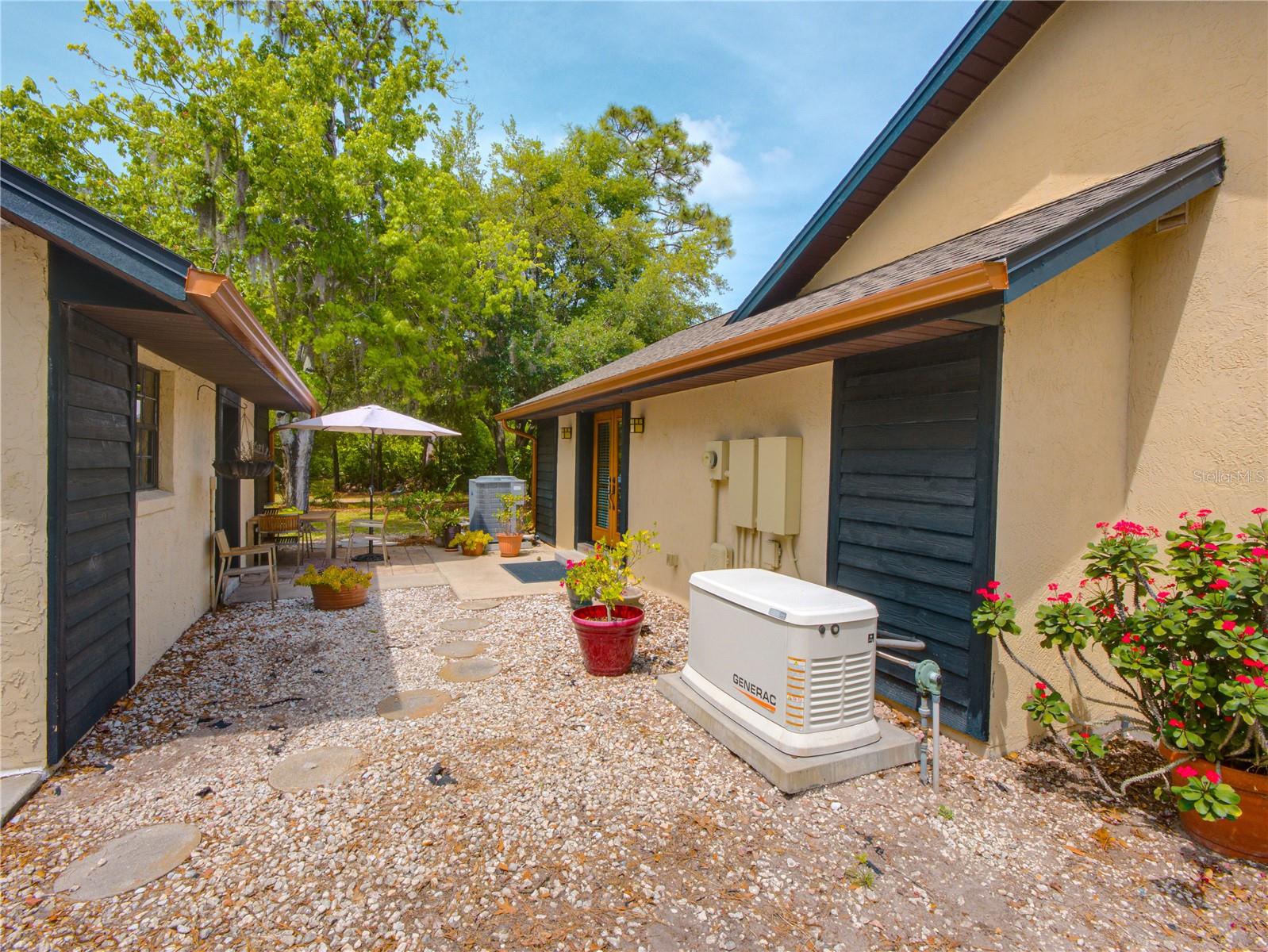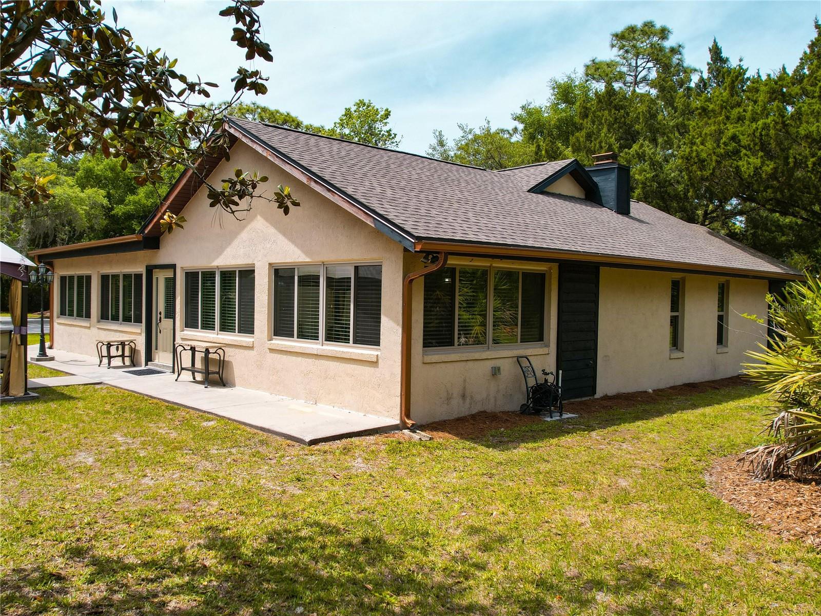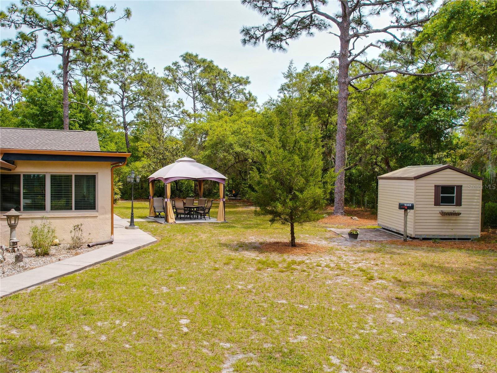 New Price and newly constructed wall and French doors for large 3rd bedroom/bonus room (7/2024). Rare find has room for all the space you need on private 2.42-acre mature wooded lot only 6 miles to Lake Nona area. Home has been renovated and updated top to bottom since 2017. Huge chefs' kitchen is centered in home with very open floor plan has access from all living areas with an abundance of solid surface quartz countertops, high-quality built-in appliances with pull out vented exhaust fan over cooktop, double ovens, 2 drawer dishwasher, custom built 42" cabinetry. Flooring was redone in all wood look porcelain tile with ceramic tile in bathrooms. All energy star double pane windows. Large primary bedroom featuring wood burning fireplace and adjacent office area, walk-in closet and ensuite bathroom. Need space for your business, RV, shop, or multicar garage? You found it here with separate 2380 sf is 50'x45'+12x10 attached office, solid block-built warehouse like space with 3-12-foot-high roll up doors, 2 end doors 14 feet wide and middle is 12 feet wide. Also has upgraded 200-amp service, separate from residence. Need more space? There is another 750 sf (30'x25') free-standing garage next to house off of the long circular driveway. Another 12x8 shed was built as grandkids playhouse. Exterior of residence was painted in 2022. All 3 roofs replaced 2021. Whole house re-plumbed and Generac generator with underground propane tank 2018. New 16 seer HVAC 4/2021. New well was done 1 year before current owner (2016).All of the 2.42 acres is wire fenced with 2 metal driveway gates.
