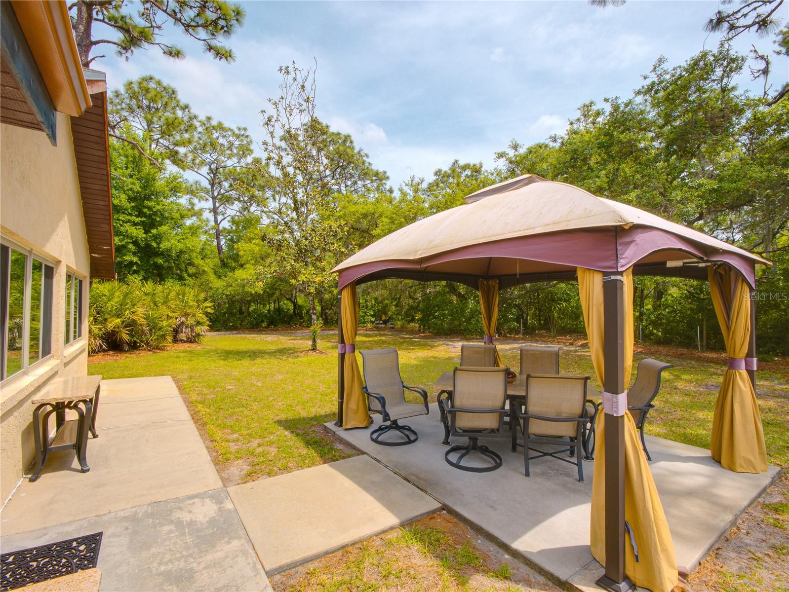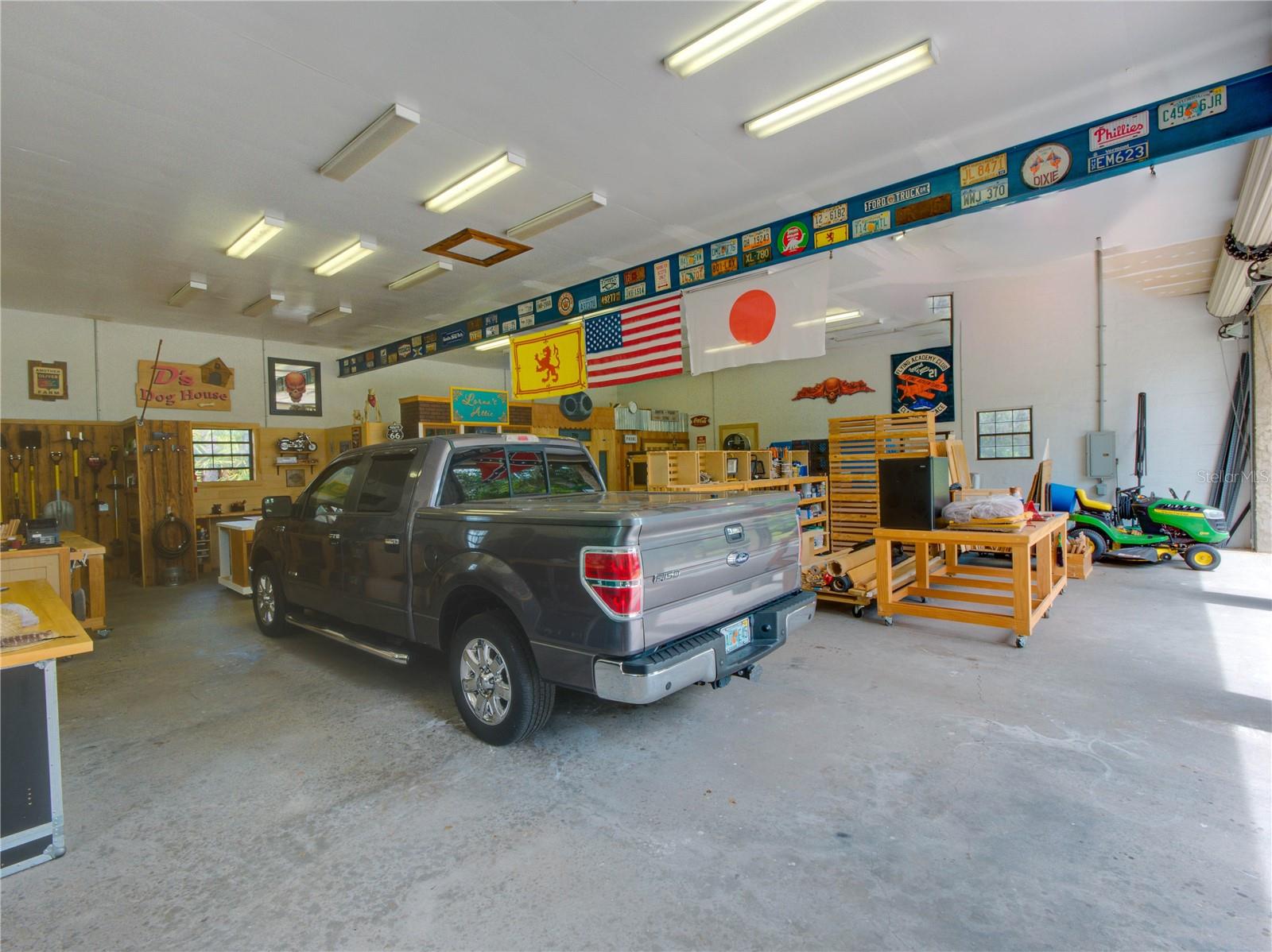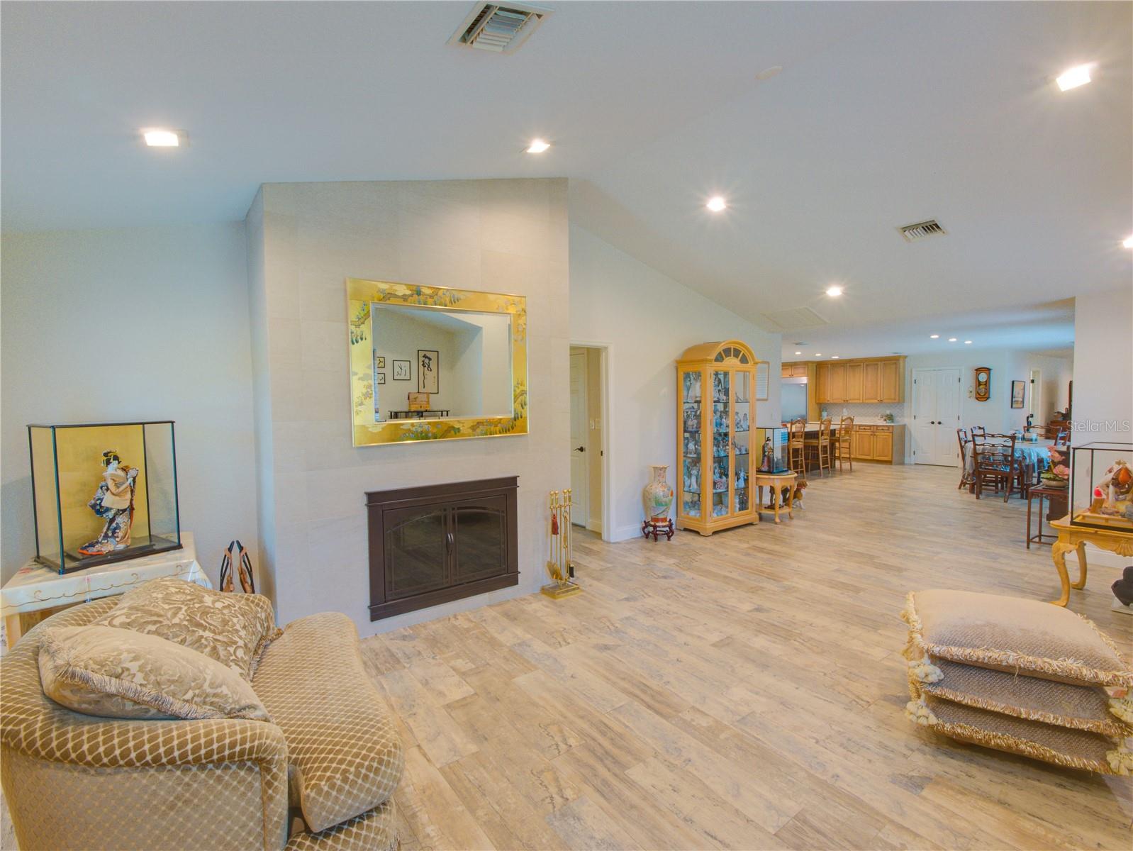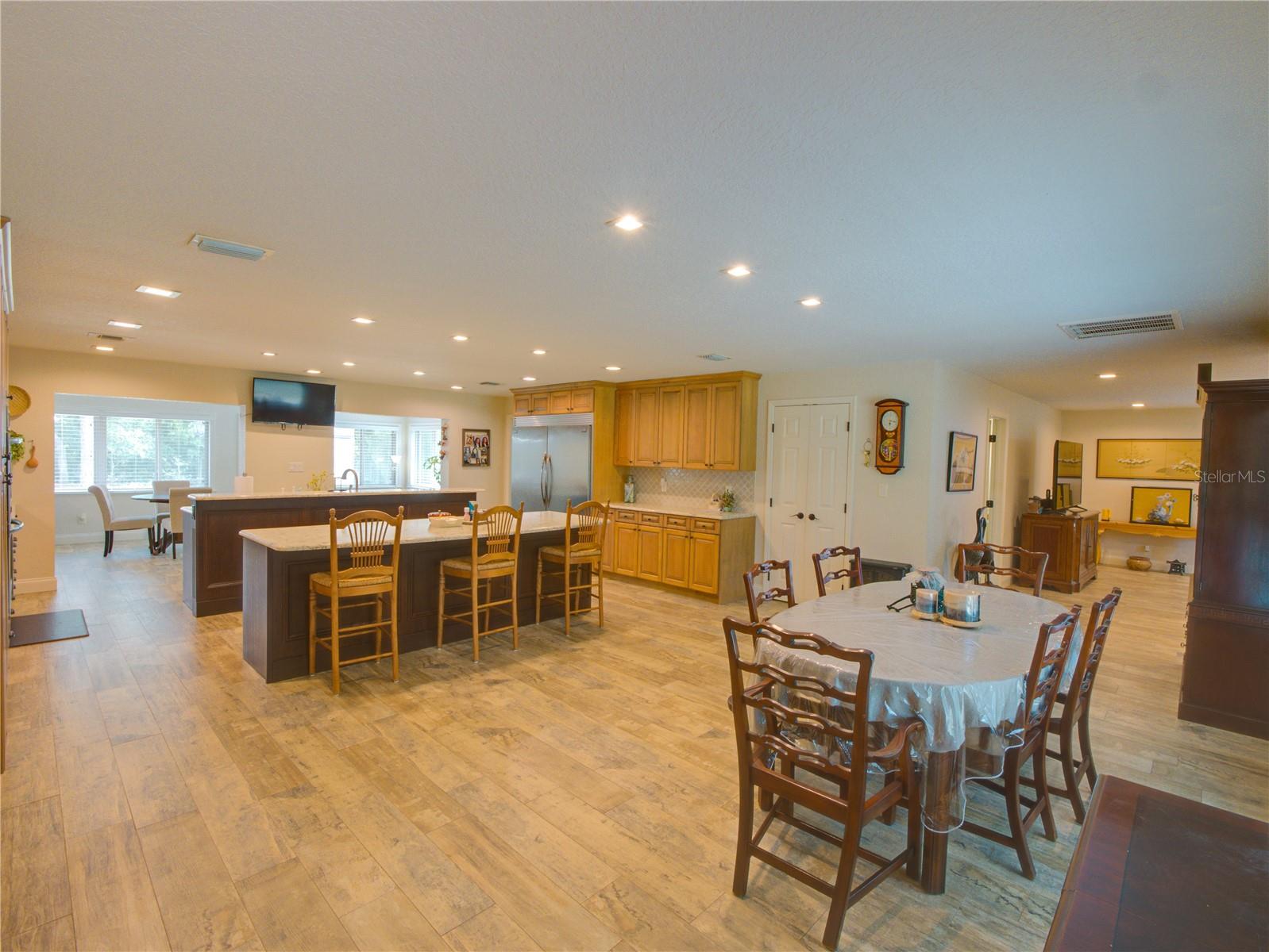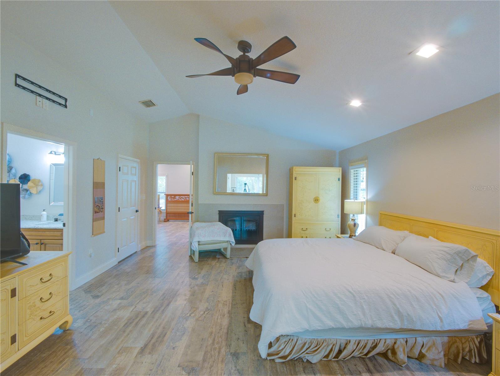 New Price and newly constructed wall and French doors for large 3rd bedroom/bonus room (7/2024). Rare find has room for all the space you need on private 2.42-acre mature wooded lot only 6 miles to Lake Nona area. Home has been renovated and updated top to bottom since 2017. Huge chefs' kitchen is centered in home with very open floor plan has access from all living areas with an abundance of solid surface quartz countertops, high-quality built-in appliances with pull out vented exhaust fan over cooktop, double ovens, 2 drawer dishwasher, custom built 42" cabinetry. Flooring was redone in all wood look porcelain tile with ceramic tile in bathrooms. All energy star double pane windows. Large primary bedroom featuring wood burning fireplace and adjacent office area, walk-in closet and ensuite bathroom. Need space for your business, RV, shop, or multicar garage? You found it here with separate 2380 sf is 50'x45'+12x10 attached office, solid block-built warehouse like space with 3-12-foot-high roll up doors, 2 end doors 14 feet wide and middle is 12 feet wide. Also has upgraded 200-amp service, separate from residence. Need more space? There is another 750 sf (30'x25') free-standing garage next to house off of the long circular driveway. Another 12x8 shed was built as grandkids playhouse. Exterior of residence was painted in 2022. All 3 roofs replaced 2021. Whole house re-plumbed and Generac generator with underground propane tank 2018. New 16 seer HVAC 4/2021. New well was done 1 year before current owner (2016).All of the 2.42 acres is wire fenced with 2 metal driveway gates.