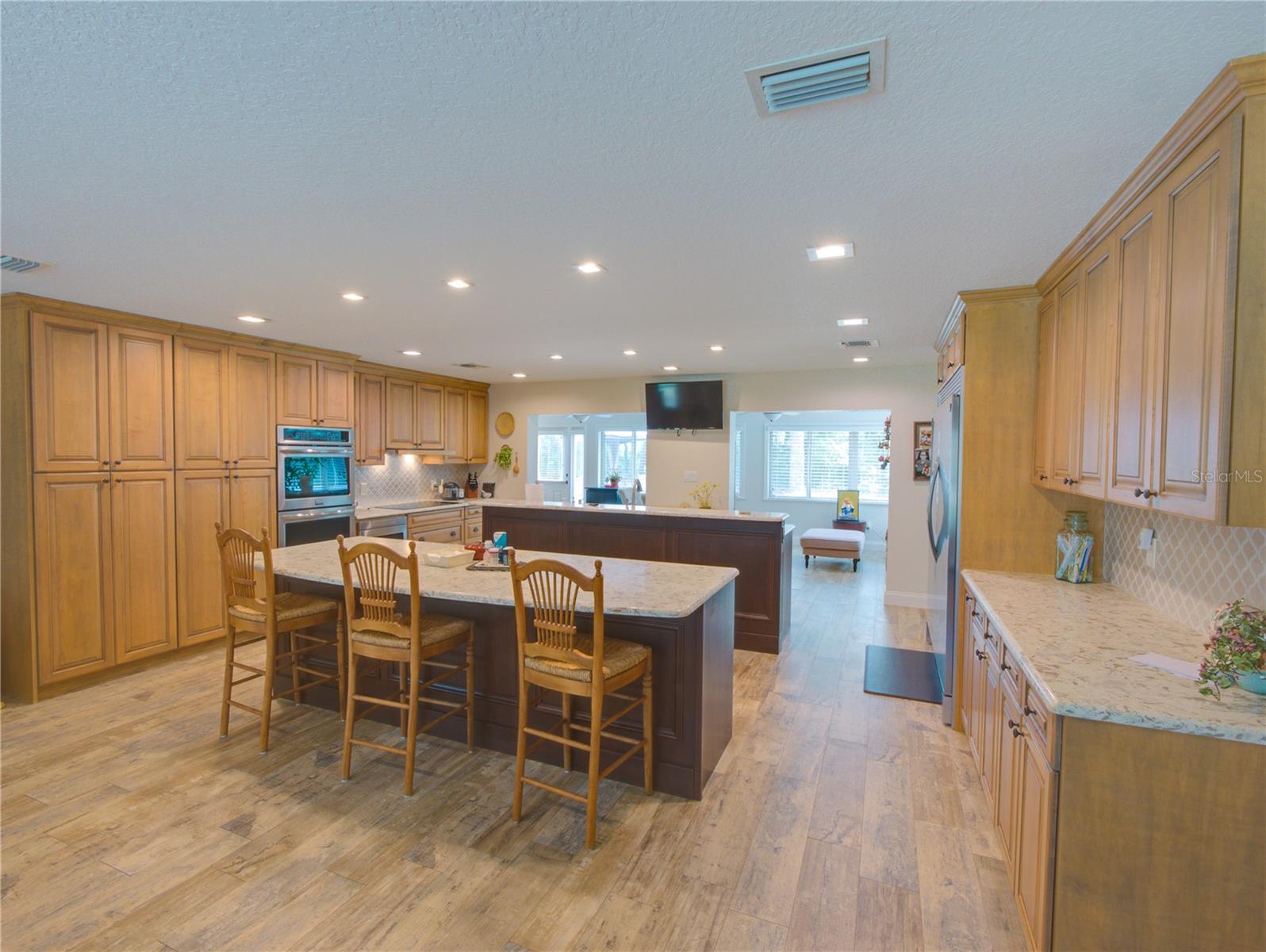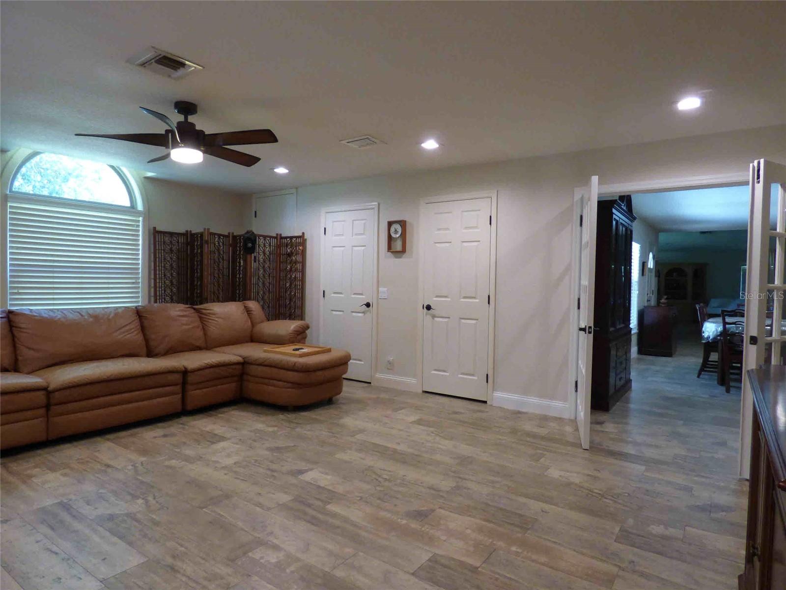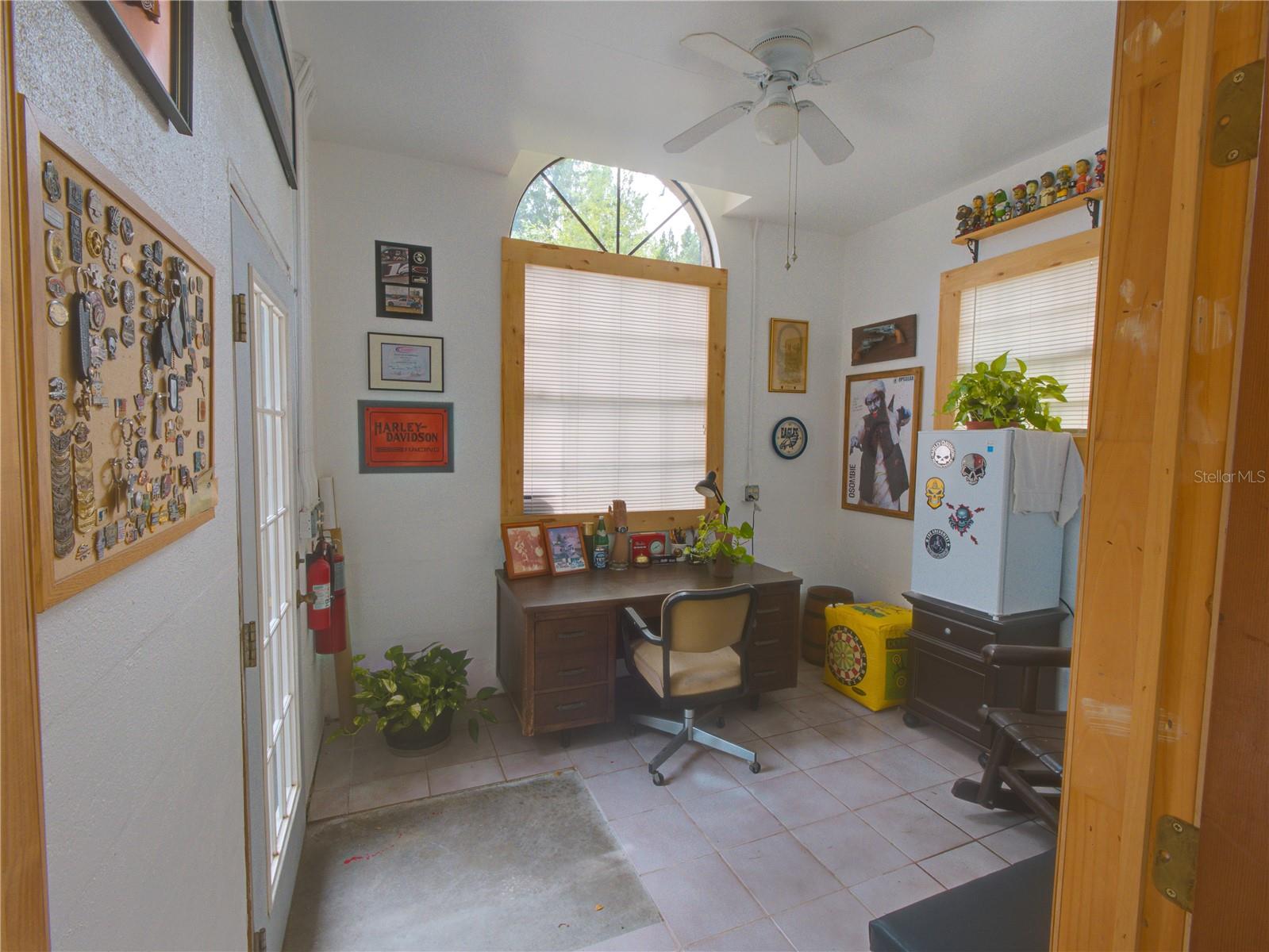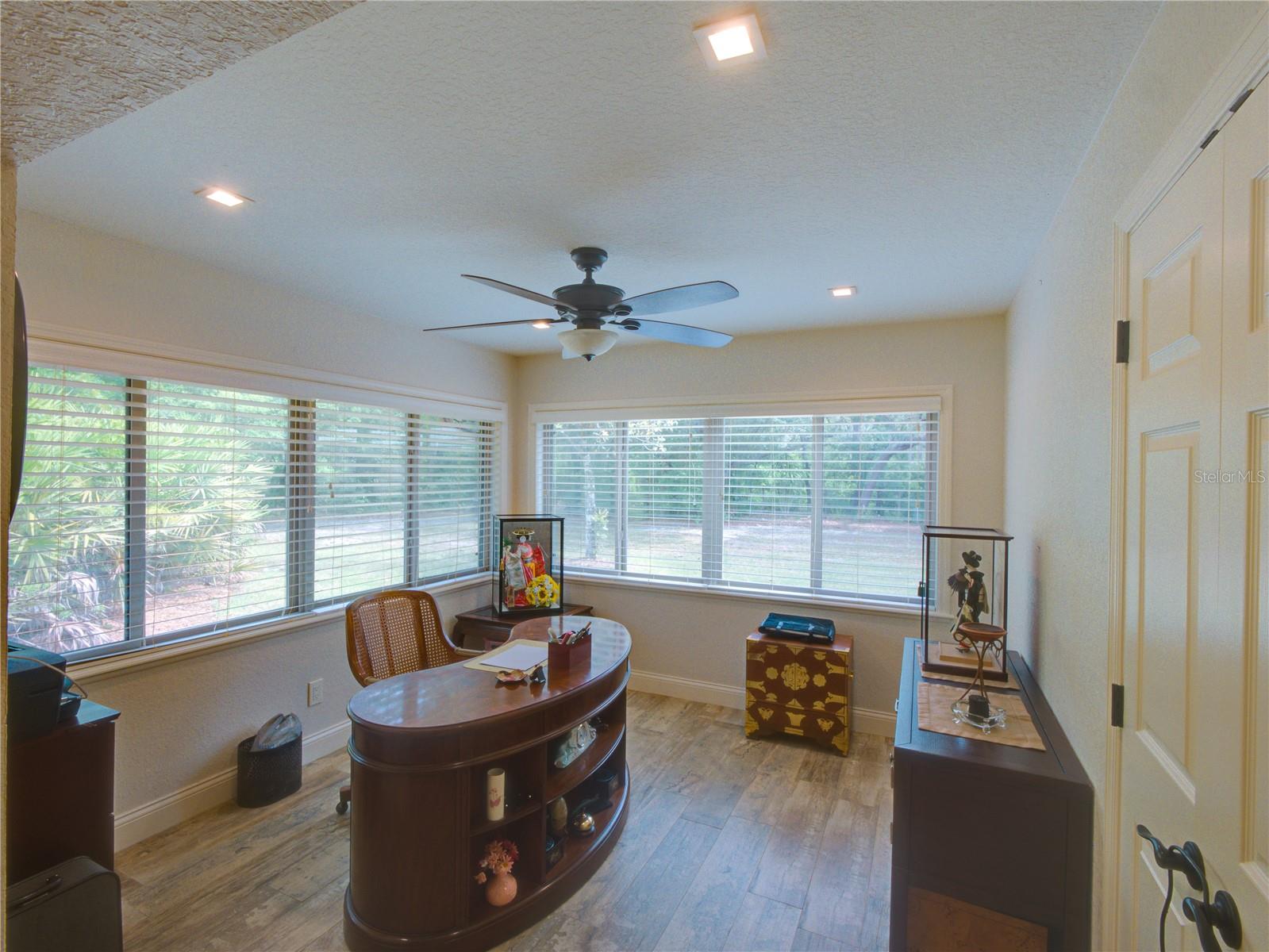 New Price and newly constructed wall and French doors for large 3rd bedroom/bonus room (7/2024). Rare find has room for all the space you need on private 2.42-acre mature wooded lot only 6 miles to Lake Nona area. Home has been renovated and updated top to bottom since 2017. Huge chefs' kitchen is centered in home with very open floor plan has access from all living areas with an abundance of solid surface quartz countertops, high-quality built-in appliances with pull out vented exhaust fan over cooktop, double ovens, 2 drawer dishwasher, custom built 42" cabinetry. Flooring was redone in all wood look porcelain tile with ceramic tile in bathrooms. All energy star double pane windows. Large primary bedroom featuring wood burning fireplace and adjacent office area, walk-in closet and ensuite bathroom. Need space for your business, RV, shop, or multicar garage? You found it here with separate 2380 sf is 50'x45'+12x10 attached office, solid block-built warehouse like space with 3-12-foot-high roll up doors, 2 end doors 14 feet wide and middle is 12 feet wide. Also has upgraded 200-amp service, separate from residence. Need more space? There is another 750 sf (30'x25') free-standing garage next to house off of the long circular driveway. Another 12x8 shed was built as grandkids playhouse. Exterior of residence was painted in 2022. All 3 roofs replaced 2021. Whole house re-plumbed and Generac generator with underground propane tank 2018. New 16 seer HVAC 4/2021. New well was done 1 year before current owner (2016).All of the 2.42 acres is wire fenced with 2 metal driveway gates.