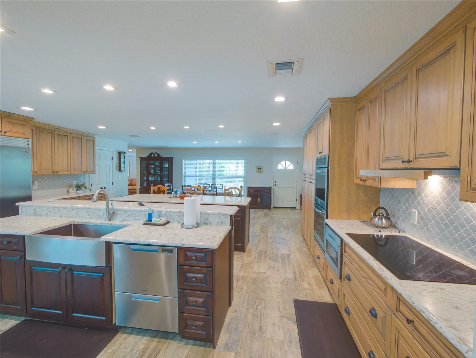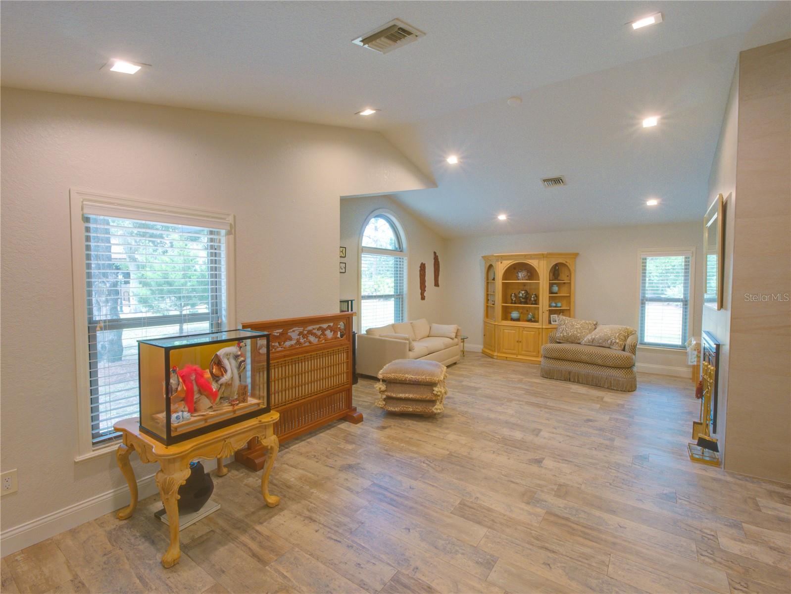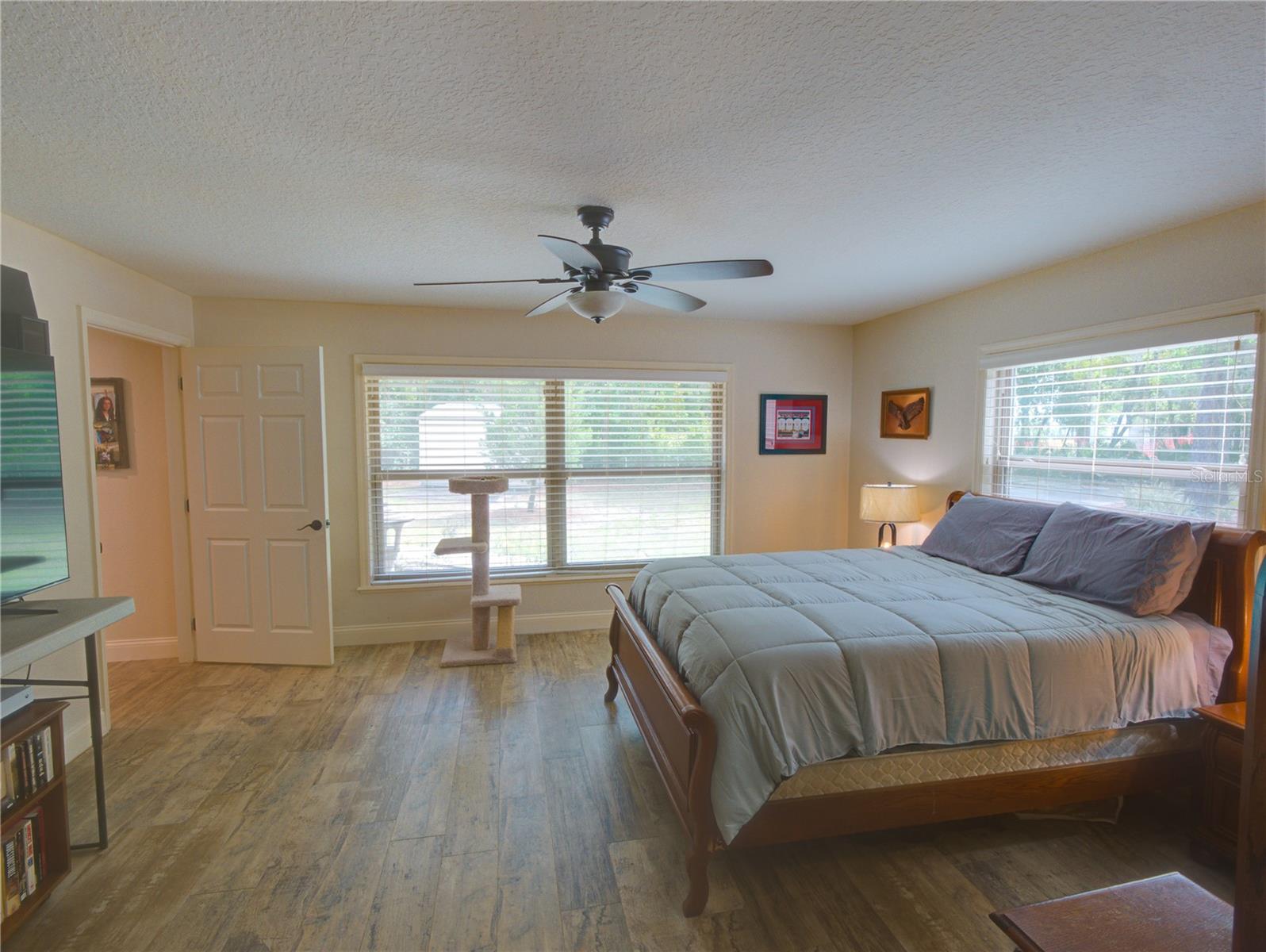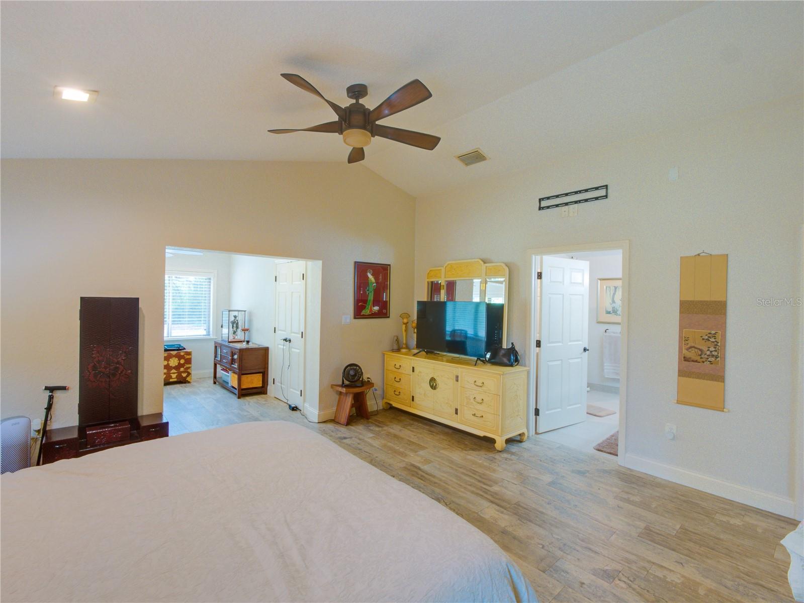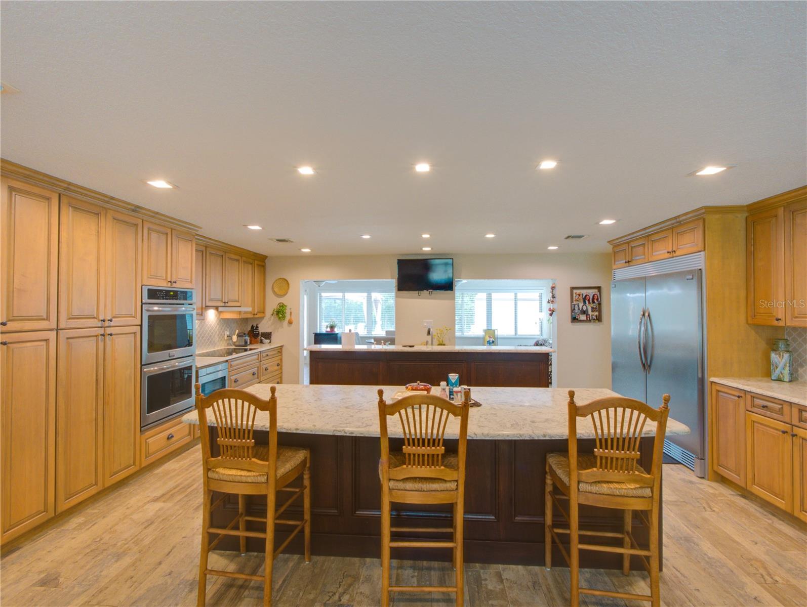 New Price and newly constructed wall and French doors for large 3rd bedroom/bonus room (7/2024). Rare find has room for all the space you need on private 2.42-acre mature wooded lot only 6 miles to Lake Nona area. Home has been renovated and updated top to bottom since 2017. Huge chefs' kitchen is centered in home with very open floor plan has access from all living areas with an abundance of solid surface quartz countertops, high-quality built-in appliances with pull out vented exhaust fan over cooktop, double ovens, 2 drawer dishwasher, custom built 42" cabinetry. Flooring was redone in all wood look porcelain tile with ceramic tile in bathrooms. All energy star double pane windows. Large primary bedroom featuring wood burning fireplace and adjacent office area, walk-in closet and ensuite bathroom. Need space for your business, RV, shop, or multicar garage? You found it here with separate 2380 sf is 50'x45'+12x10 attached office, solid block-built warehouse like space with 3-12-foot-high roll up doors, 2 end doors 14 feet wide and middle is 12 feet wide. Also has upgraded 200-amp service, separate from residence. Need more space? There is another 750 sf (30'x25') free-standing garage next to house off of the long circular driveway. Another 12x8 shed was built as grandkids playhouse. Exterior of residence was painted in 2022. All 3 roofs replaced 2021. Whole house re-plumbed and Generac generator with underground propane tank 2018. New 16 seer HVAC 4/2021. New well was done 1 year before current owner (2016).All of the 2.42 acres is wire fenced with 2 metal driveway gates.