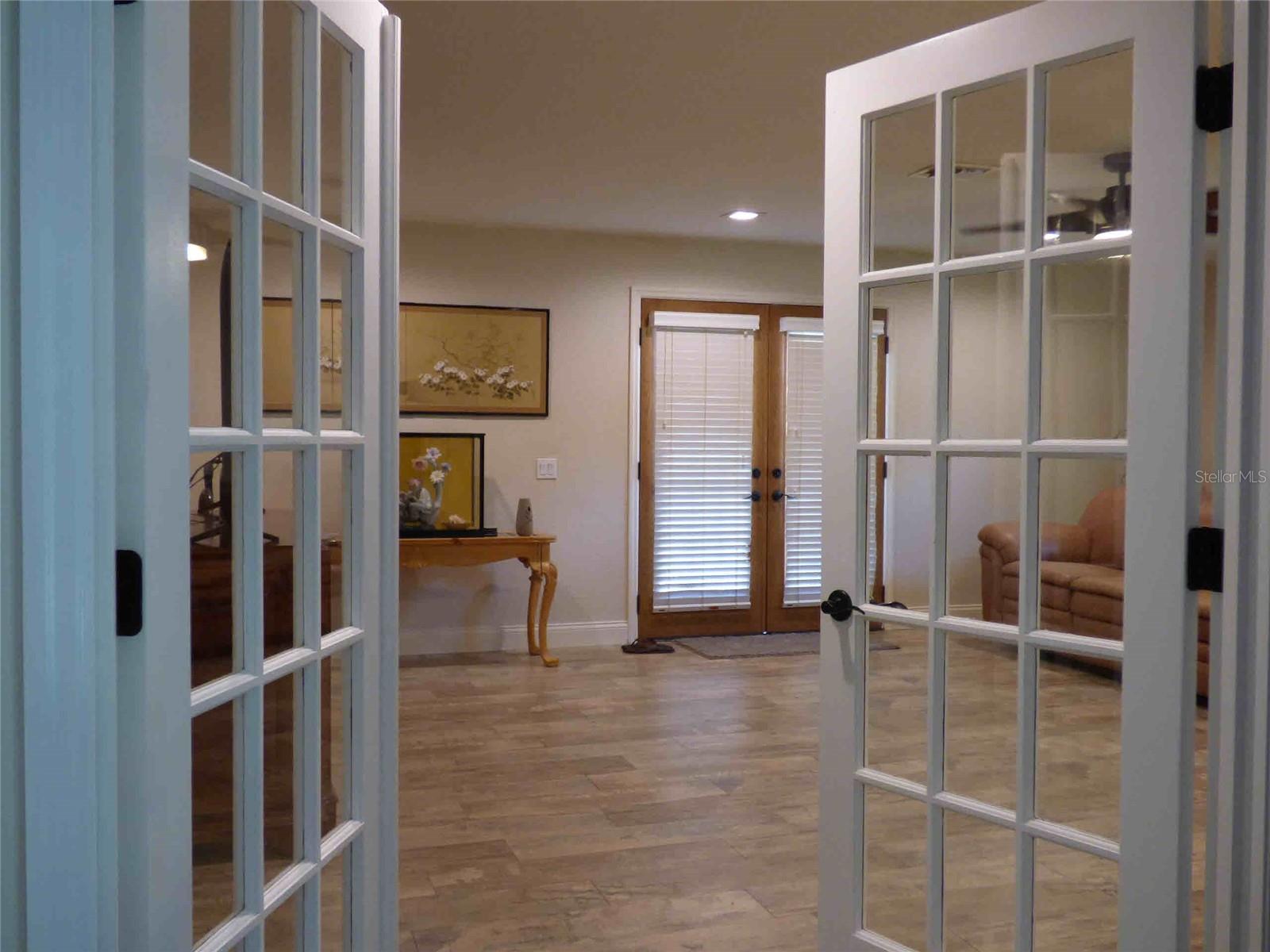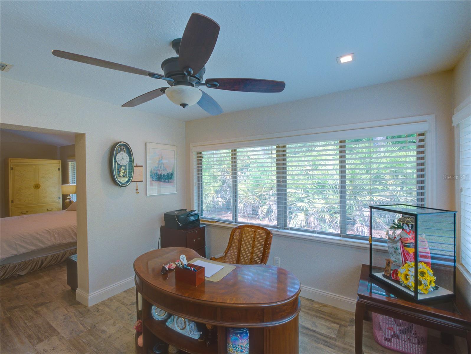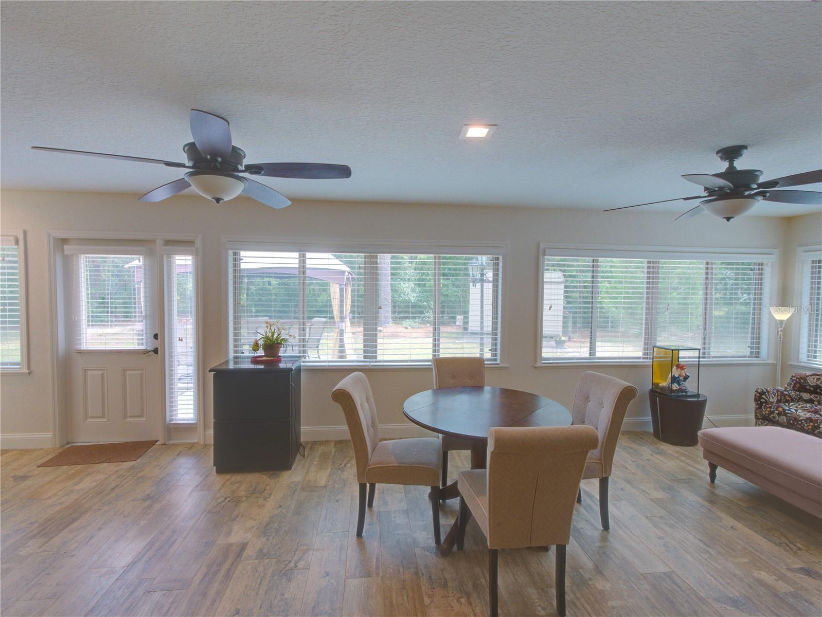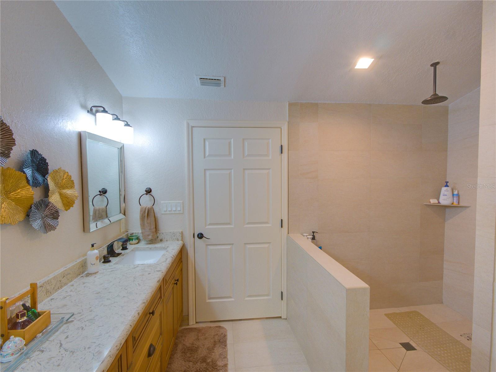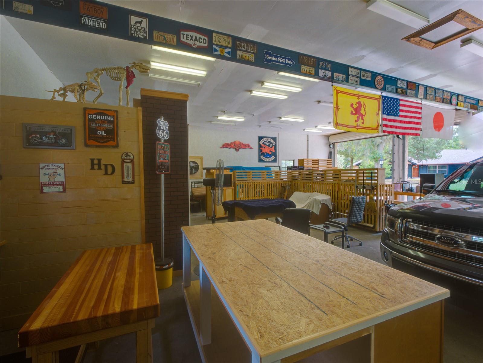 New Price and newly constructed wall and French doors for large 3rd bedroom/bonus room (7/2024). Rare find has room for all the space you need on private 2.42-acre mature wooded lot only 6 miles to Lake Nona area. Home has been renovated and updated top to bottom since 2017. Huge chefs' kitchen is centered in home with very open floor plan has access from all living areas with an abundance of solid surface quartz countertops, high-quality built-in appliances with pull out vented exhaust fan over cooktop, double ovens, 2 drawer dishwasher, custom built 42" cabinetry. Flooring was redone in all wood look porcelain tile with ceramic tile in bathrooms. All energy star double pane windows. Large primary bedroom featuring wood burning fireplace and adjacent office area, walk-in closet and ensuite bathroom. Need space for your business, RV, shop, or multicar garage? You found it here with separate 2380 sf is 50'x45'+12x10 attached office, solid block-built warehouse like space with 3-12-foot-high roll up doors, 2 end doors 14 feet wide and middle is 12 feet wide. Also has upgraded 200-amp service, separate from residence. Need more space? There is another 750 sf (30'x25') free-standing garage next to house off of the long circular driveway. Another 12x8 shed was built as grandkids playhouse. Exterior of residence was painted in 2022. All 3 roofs replaced 2021. Whole house re-plumbed and Generac generator with underground propane tank 2018. New 16 seer HVAC 4/2021. New well was done 1 year before current owner (2016).All of the 2.42 acres is wire fenced with 2 metal driveway gates.