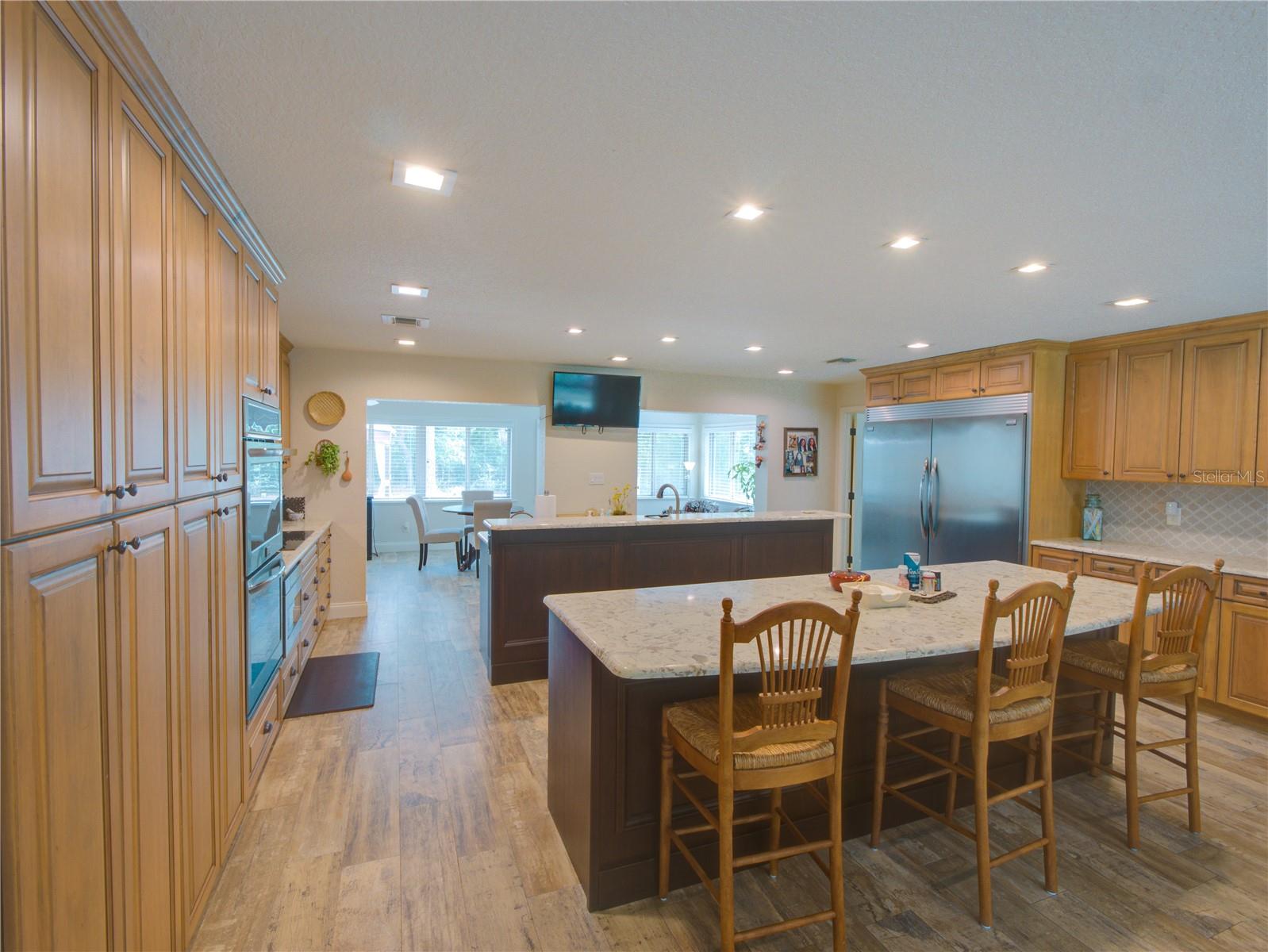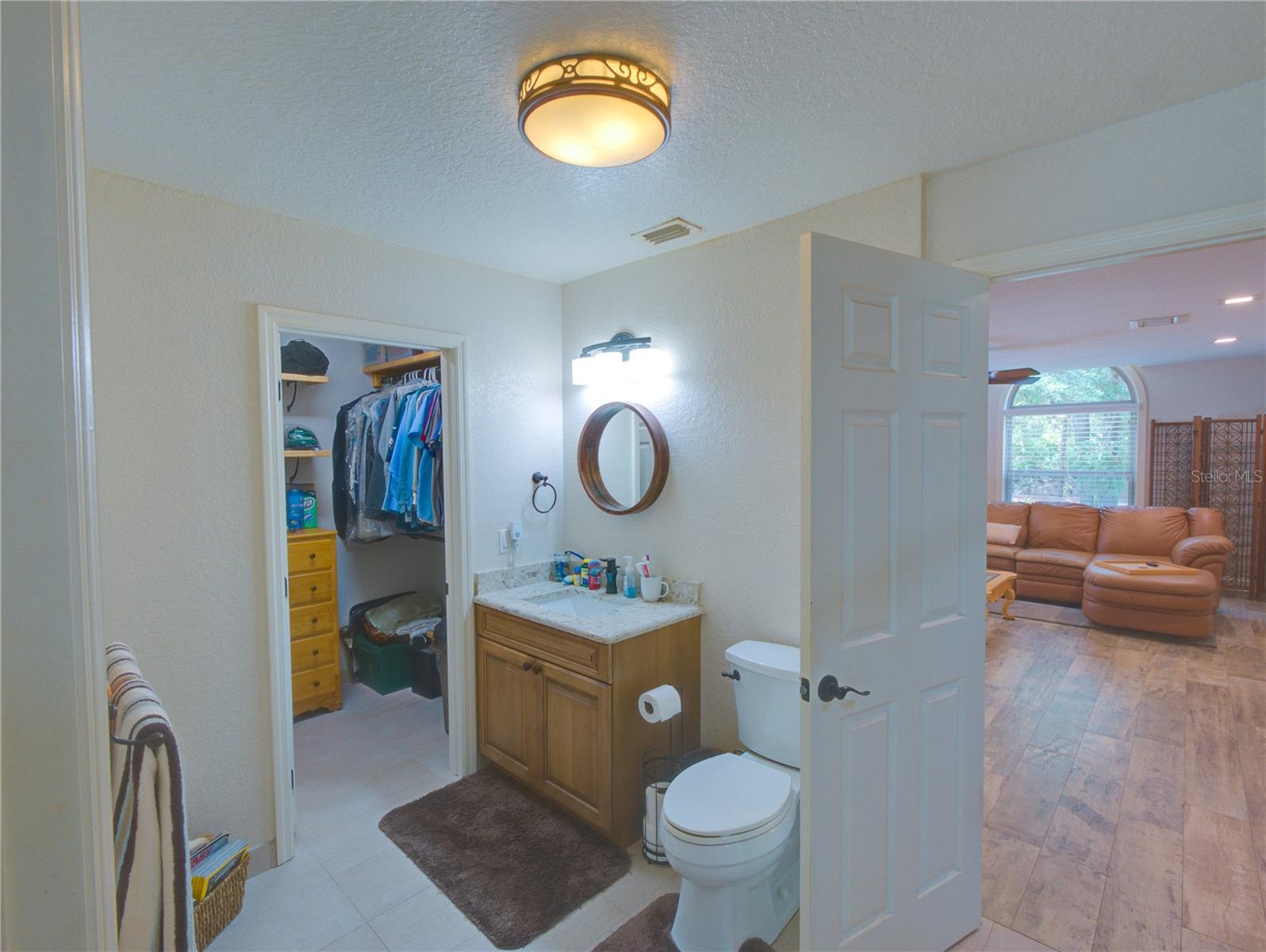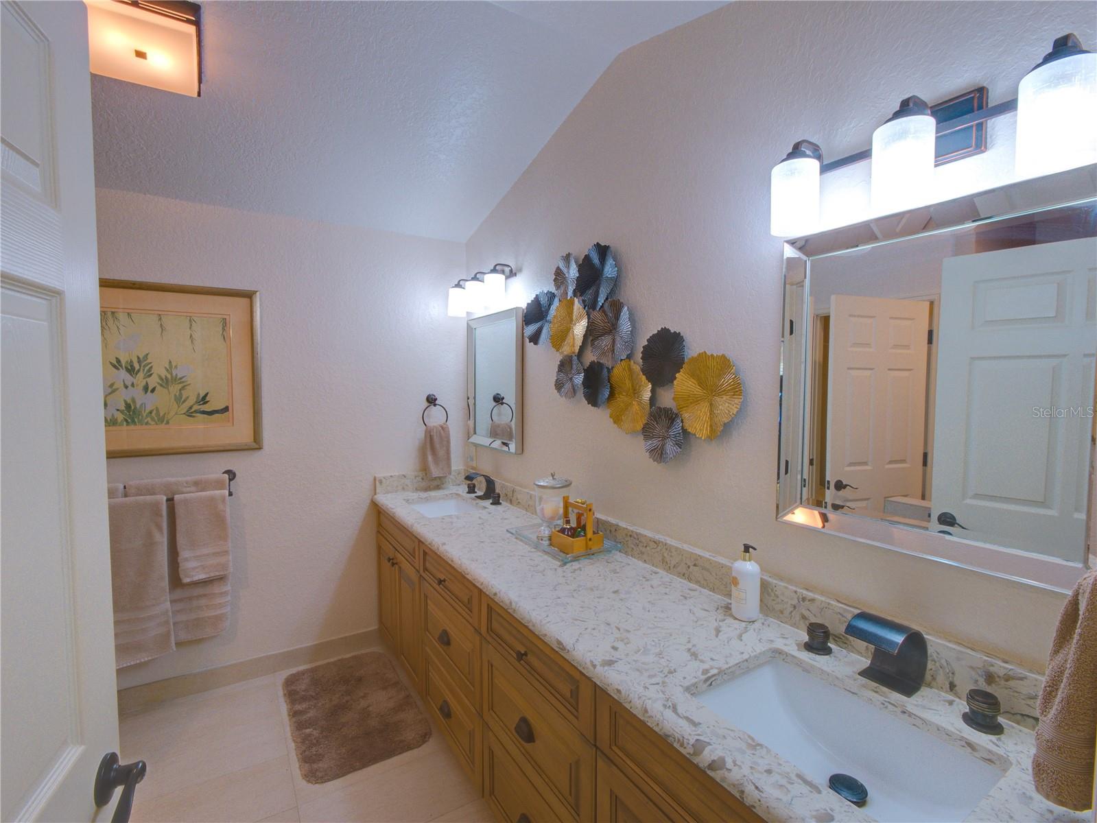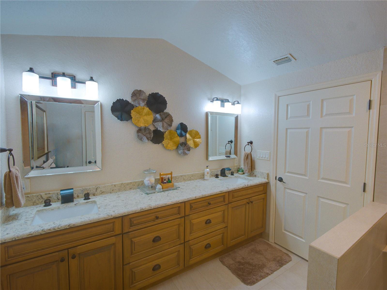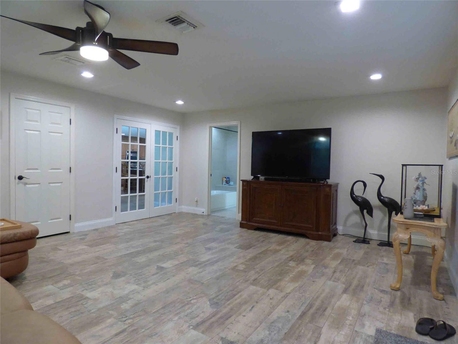 New Price and newly constructed wall and French doors for large 3rd bedroom/bonus room (7/2024). Rare find has room for all the space you need on private 2.42-acre mature wooded lot only 6 miles to Lake Nona area. Home has been renovated and updated top to bottom since 2017. Huge chefs' kitchen is centered in home with very open floor plan has access from all living areas with an abundance of solid surface quartz countertops, high-quality built-in appliances with pull out vented exhaust fan over cooktop, double ovens, 2 drawer dishwasher, custom built 42" cabinetry. Flooring was redone in all wood look porcelain tile with ceramic tile in bathrooms. All energy star double pane windows. Large primary bedroom featuring wood burning fireplace and adjacent office area, walk-in closet and ensuite bathroom. Need space for your business, RV, shop, or multicar garage? You found it here with separate 2380 sf is 50'x45'+12x10 attached office, solid block-built warehouse like space with 3-12-foot-high roll up doors, 2 end doors 14 feet wide and middle is 12 feet wide. Also has upgraded 200-amp service, separate from residence. Need more space? There is another 750 sf (30'x25') free-standing garage next to house off of the long circular driveway. Another 12x8 shed was built as grandkids playhouse. Exterior of residence was painted in 2022. All 3 roofs replaced 2021. Whole house re-plumbed and Generac generator with underground propane tank 2018. New 16 seer HVAC 4/2021. New well was done 1 year before current owner (2016).All of the 2.42 acres is wire fenced with 2 metal driveway gates.