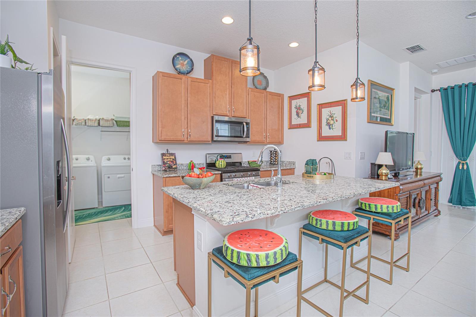 Welcome home to Twin Lakes, the premier 55+ gated community for active adults. This beautifully appointed 2 bedroom, 2 bath villa offers a combination of charm and luxury with no exterior worries. The Amelia floor plan features a brick driveway, a warm, cheerful exterior, and a brick-paved covered lanai that enhances the open floor plan including a great room with kitchen, dining, and living areas. The kitchen boasts a large island with seating, sink, and pendant lighting, granite countertops, 42” cabinets, and stainless steel appliances. Enjoy a spacious master suite with a decorative tray ceiling, oversized walk-in shower with seating, dual sinks with stone countertop, and a large walk-in closet. The living area extends to a fully screened back porch, perfect for entertaining, and the home includes a 1.5 car garage with additional golf cart parking. The community offers extensive amenities such as two resort-style pools, a lap pool, a fitness center with sauna, game room, tennis and pickleball courts, putting green, and a 20,000 sq ft lakefront clubhouse with a community pavilion, outdoor kitchen, and boating access including kayaks. HOA takes care of exterior maintenance including roof and painting, along with lawn maintenance, allowing you more time to enjoy the planned activities and nearby attractions such as Lake Nona Medical City, Orlando International Airport, theme parks, local restaurants, and shopping. Security is ensured with a night patrol, making this an ideal setting for a relaxed and active lifestyle in Florida.
