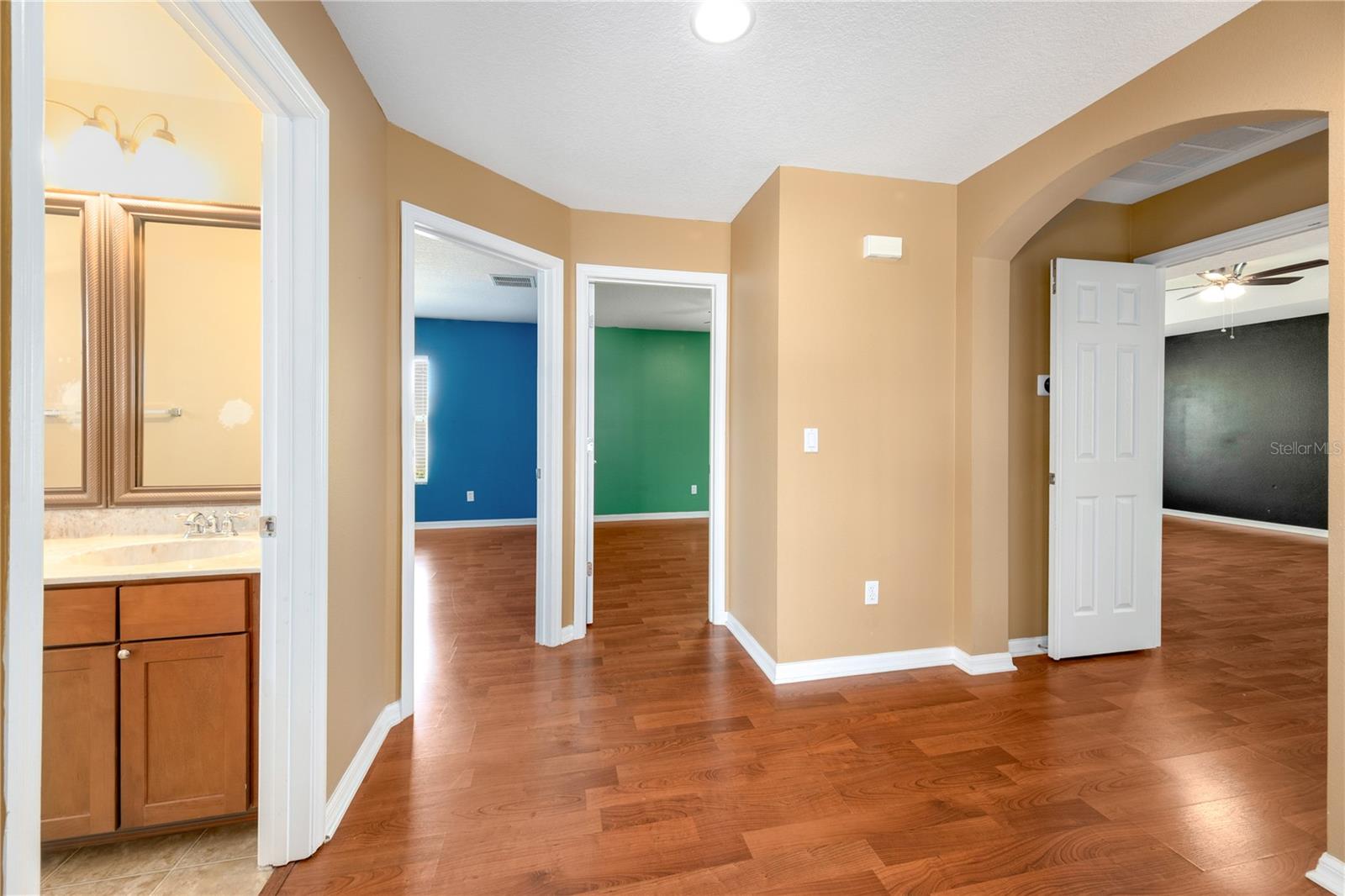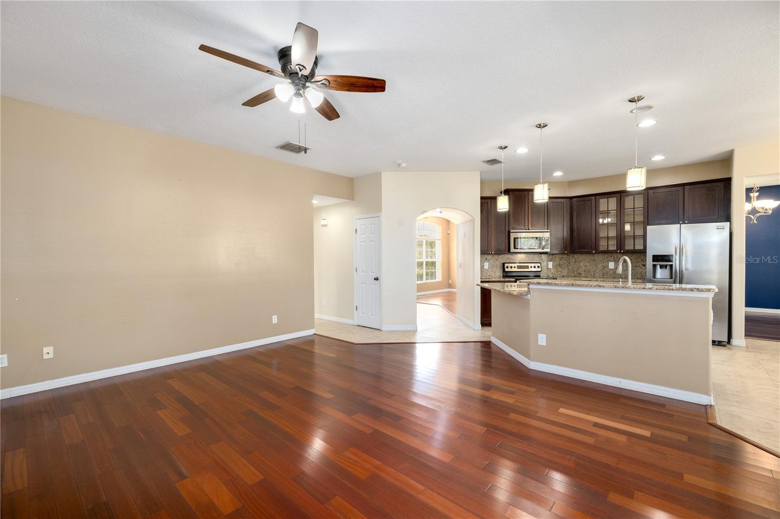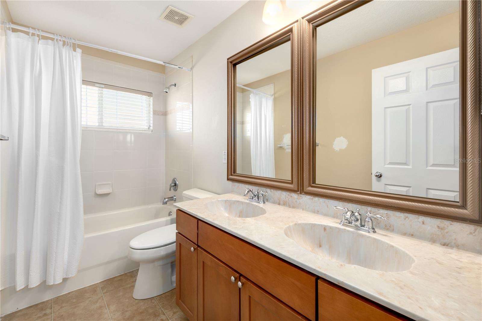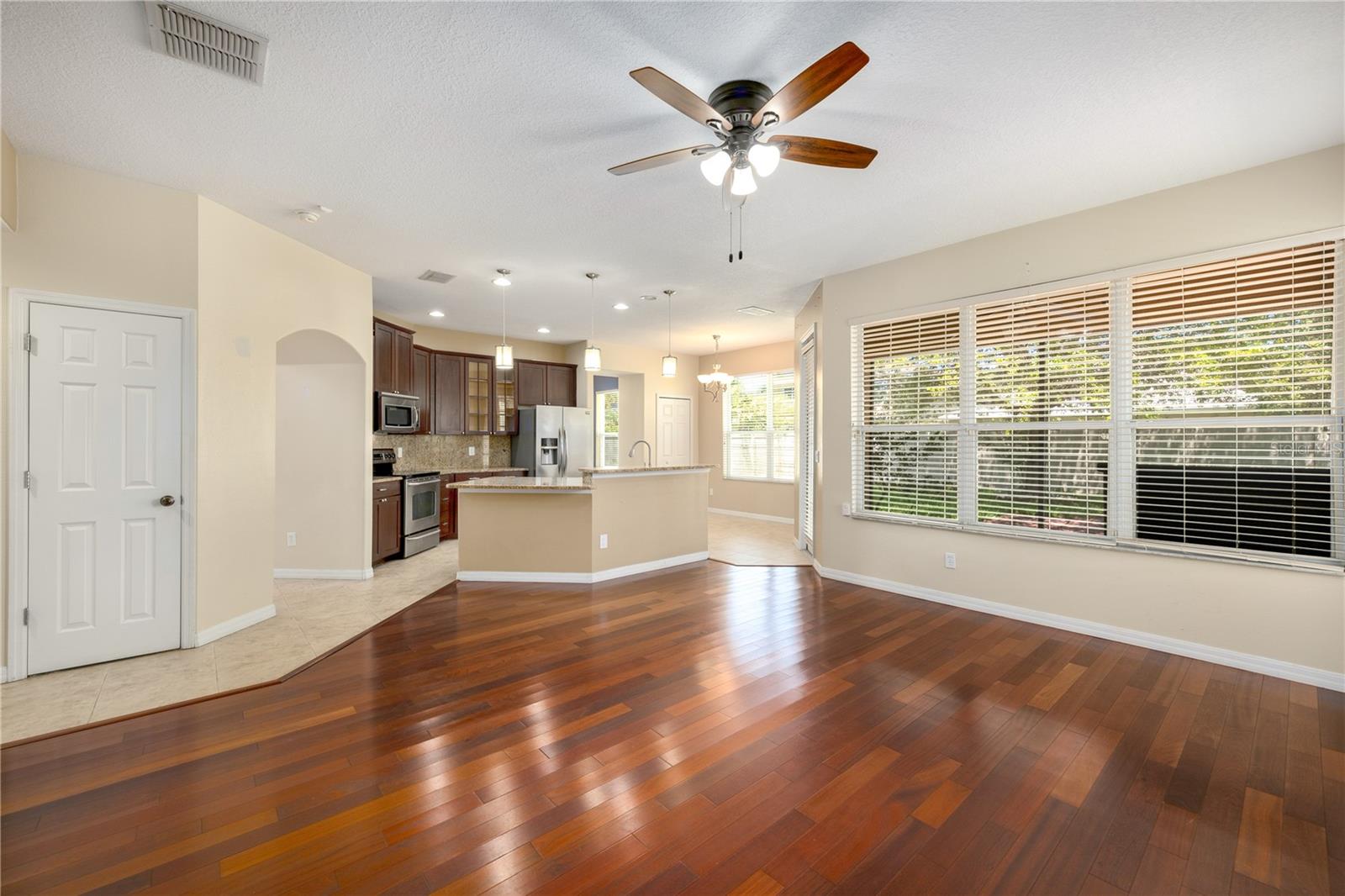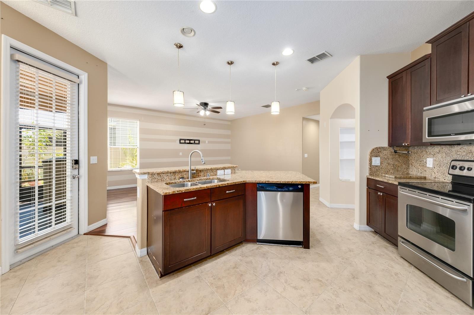 We invite you to come on in and be the first to see this St. Cloud Gem! This 4/2.5 house has everything you need to feel right at home. When you enter the home the first thing you will notice are the gorgeous hard wood floors and beautifully laid tiles throughout the formal and informal living and dining. As you walk into the kitchen you will notice the lovely cabinetry and granite countertops. There is a bar area as well as an eat in dinette area and both are open to the family room. If you step outside the back door you will feel relaxed on the back porch that overlooks the beautiful mature landscaping. There is a hallway to the right of the kitchen with a half bath and a large laundry area with a sink. This is where you will find the garage that houses 3 cars and is equipped to charge your Tesla Car. As you make your way upstairs you will find all 4 bedrooms, and 2 full bathrooms. All rooms have laminate flooring that matches well with the downstairs flooring for a uniform look. Each room has plenty of closet space; but just wait until you see the Primary bedroom!!! This large room has a walk in closet that dreams are made of. The En-suite bathroom has two sinks, a large shower separate from the garden tub where you can soak away the day. This home has a new roof and outside AC Unit that were replaced in 2023. Keyless entry. Security System. Sprinkler System. This home is one you will cherish for years to come. Stop Day Dreaming and make this home your reality!