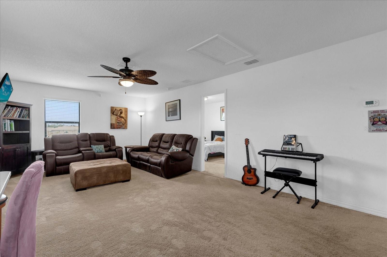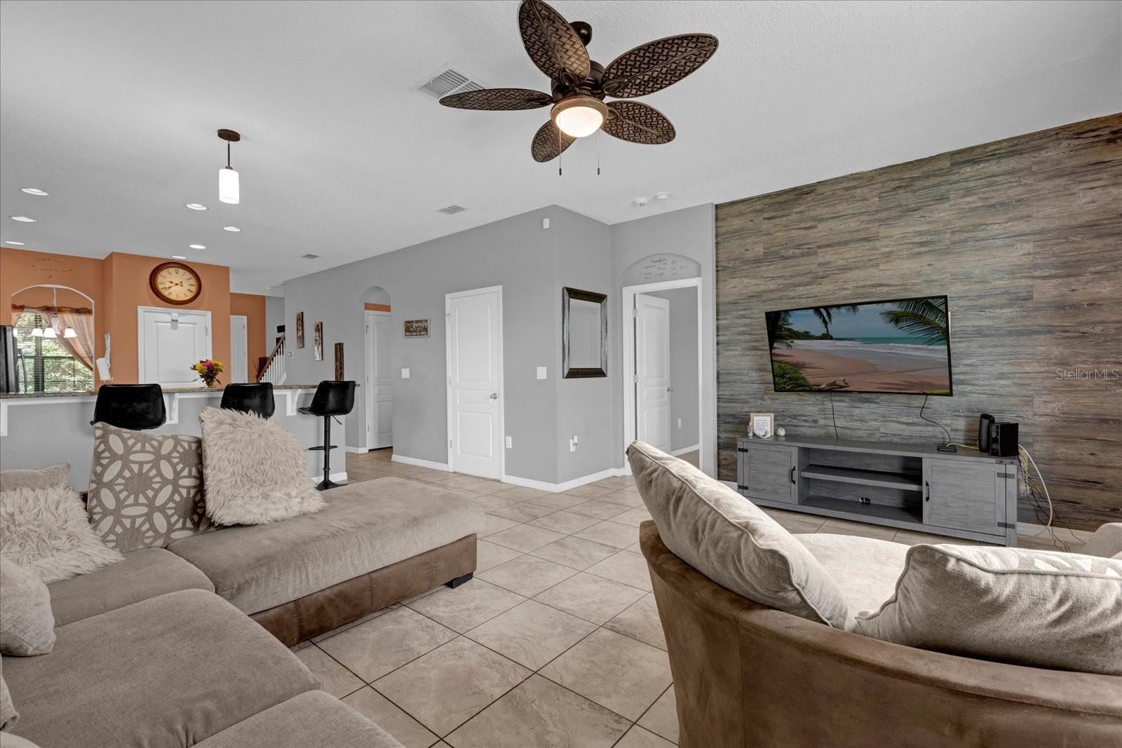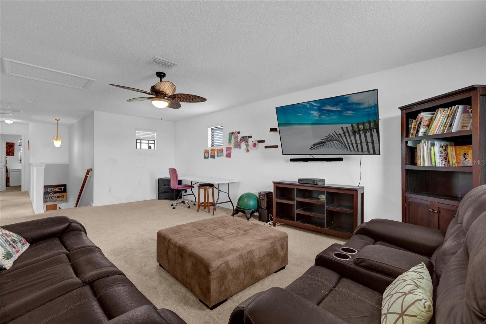 This stunning four-bedroom, 2.5-bathroom home in the heart of St. Cloud, Florida, boasts a bonus room perfect for an office or kids' playroom. With beautiful curb appeal, a long driveway, and no rear neighbors, privacy and tranquility are guaranteed. The spacious kitchen features granite countertops, stainless steel appliances, and an open floor plan ideal for entertaining. Each floor boasts a large living room, offering ample space for relaxation and gatherings. The primary bedroom and bathroom are generously sized for comfort and luxury. Outside, the expansive backyard with a paver patio presents endless opportunities for creating your dream outdoor oasis, including the potential for a pool. This magnificent home also features solar panels, harnessing the power of Florida sunshine to provide energy efficiency and reduce utility costs. Conveniently located near Orlando International Airport, Lake Nona, and various lake activities such as boating and fishing, this home offers both convenience and recreation options for its residents.