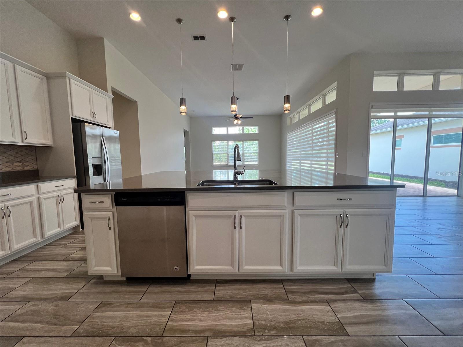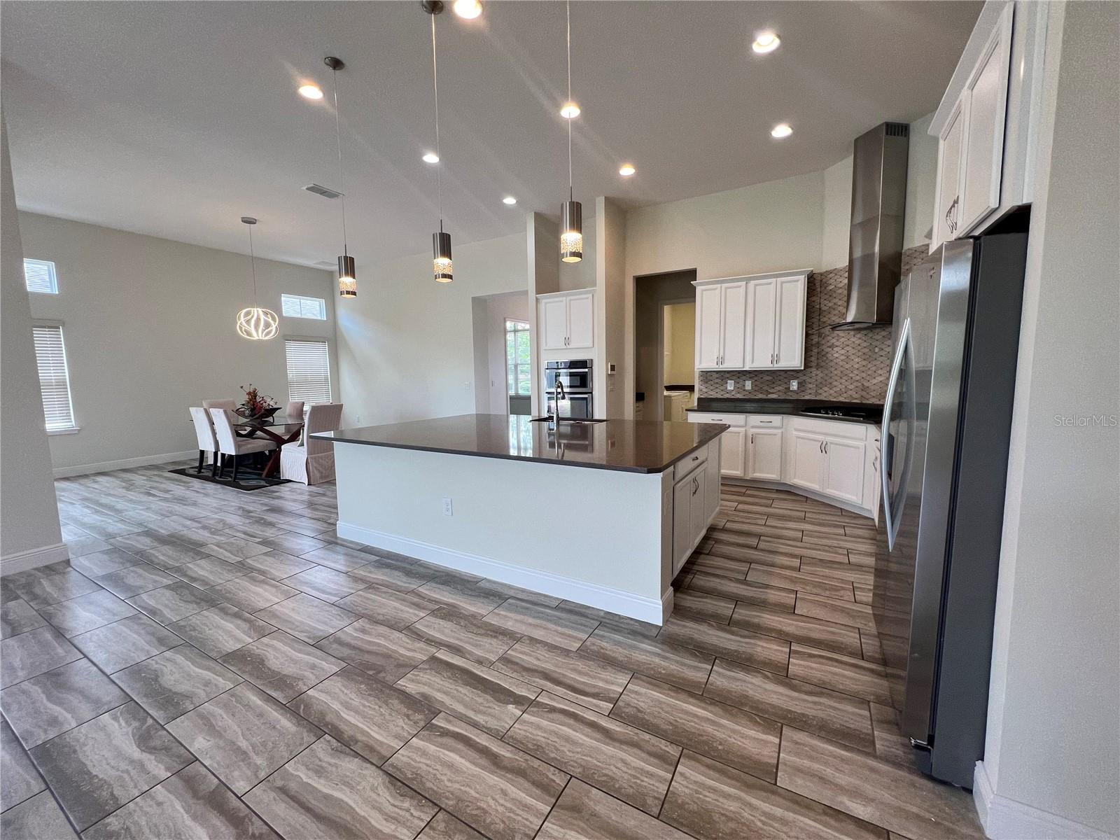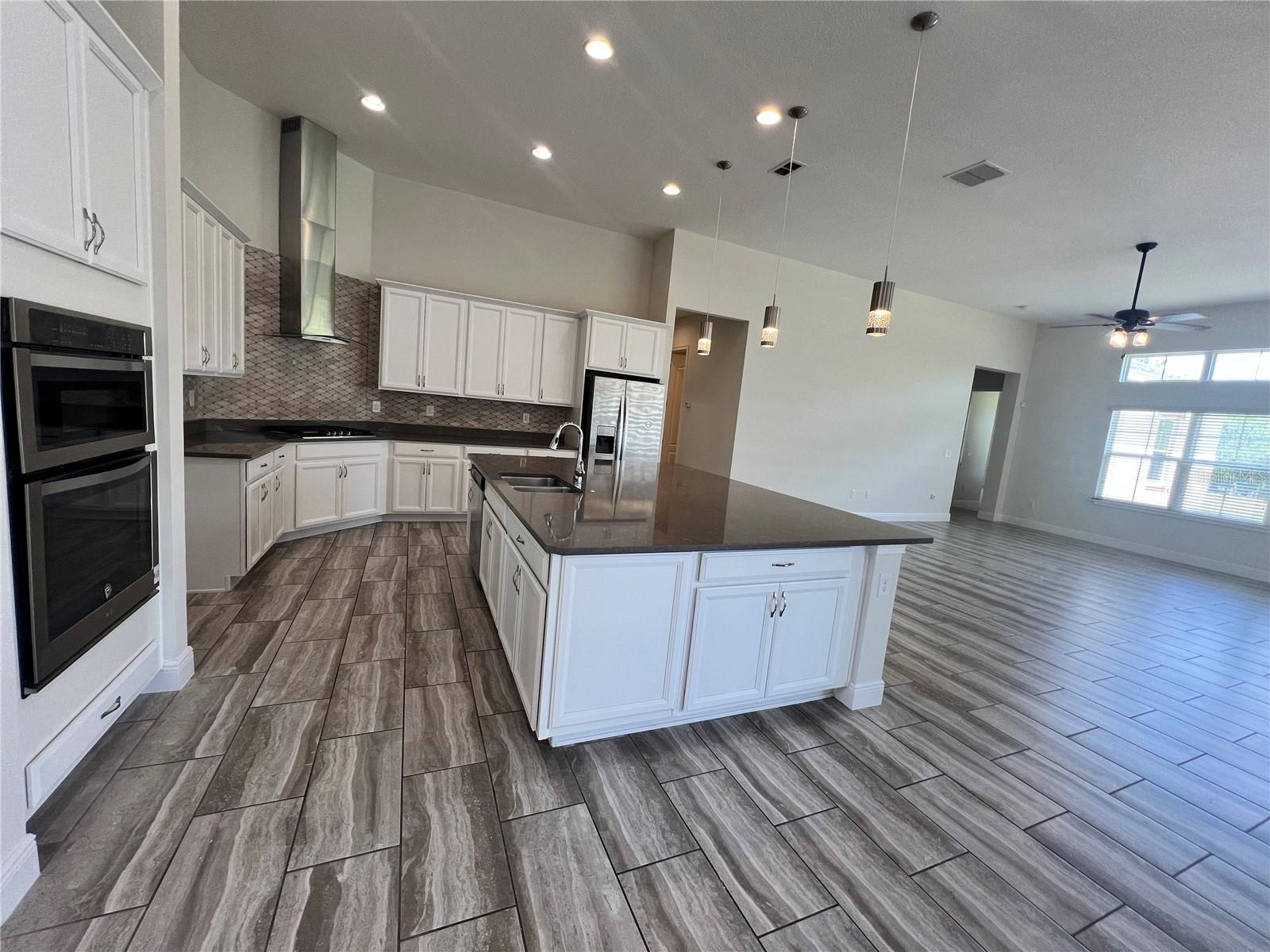 Located in the 55+ gated community of Twin Lakes in St. Cloud. This Sanibel model home welcomes you to a spacious open floor, 3-car garage and ample storage space. As you enter the home, the foyer leads to the high ceiling, live/work space adjacent to the foyer. A flexible private space perfect for an office, library or study. Continuing through foyer to the heart of this open floor plan is the kitchen with an extended kitchen island with granite countertops, 5 burner gas stove top, beautiful tile backsplash, large pantry, custom cabinetry, stainless steel appliances, stainless steel/glass hood exhaust fan and pendant lights. The open floor plan continues from indoor to outdoor with direct access to the Patio from both the family room and dining room. The patio leads to a large back yard. The spacious Primary Bedroom Suite features tray ceilings, large walk-in closet and an ensuite suite bathroom. The ensuite bathroom features an oversized semi-frameless walk-in shower with dual shower heads and a bench seat; double sink vanity, granite countertops and a separate water closet. A 20,000 square foot clubhouse is the center piece of community amenities that feature a resort style pool, lap pool, fitness center, tennis courts, putting green, walking trails and pickle-ball court. Outdoor activities such as on Twin Lakes residents have access to fishing, canoeing, kayaking and boating on Live Oak Lake. The Twin Lakes community has a full cadre of social and recreational activities to keep residents active and engaged.