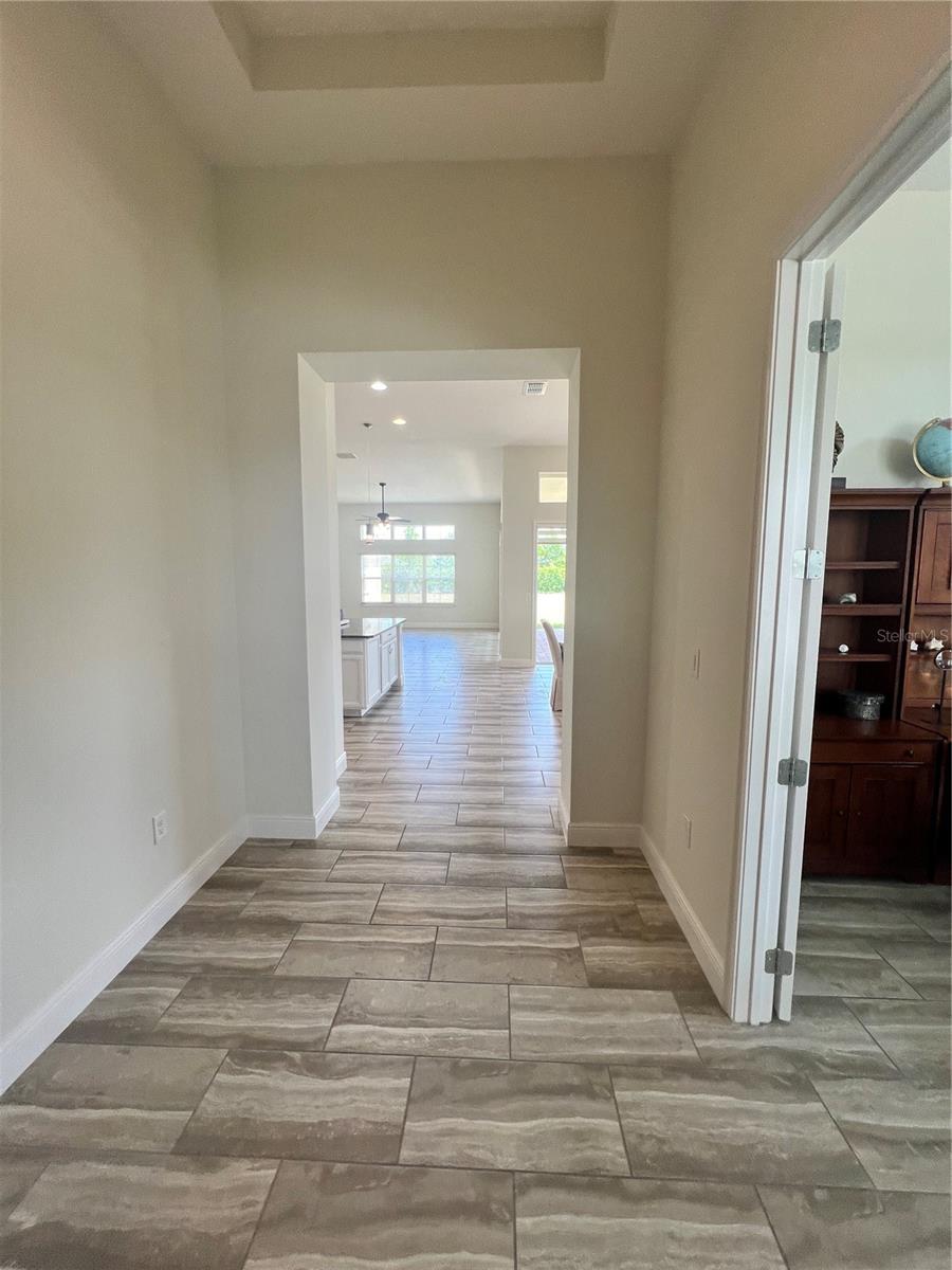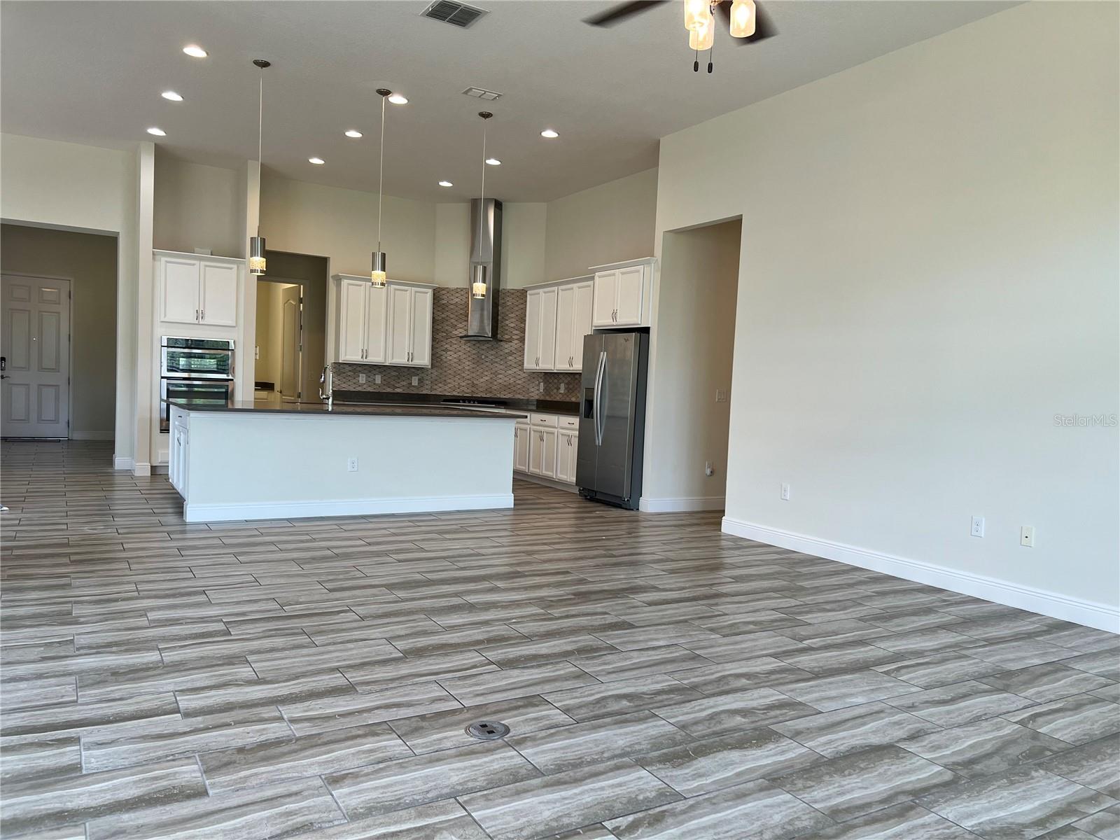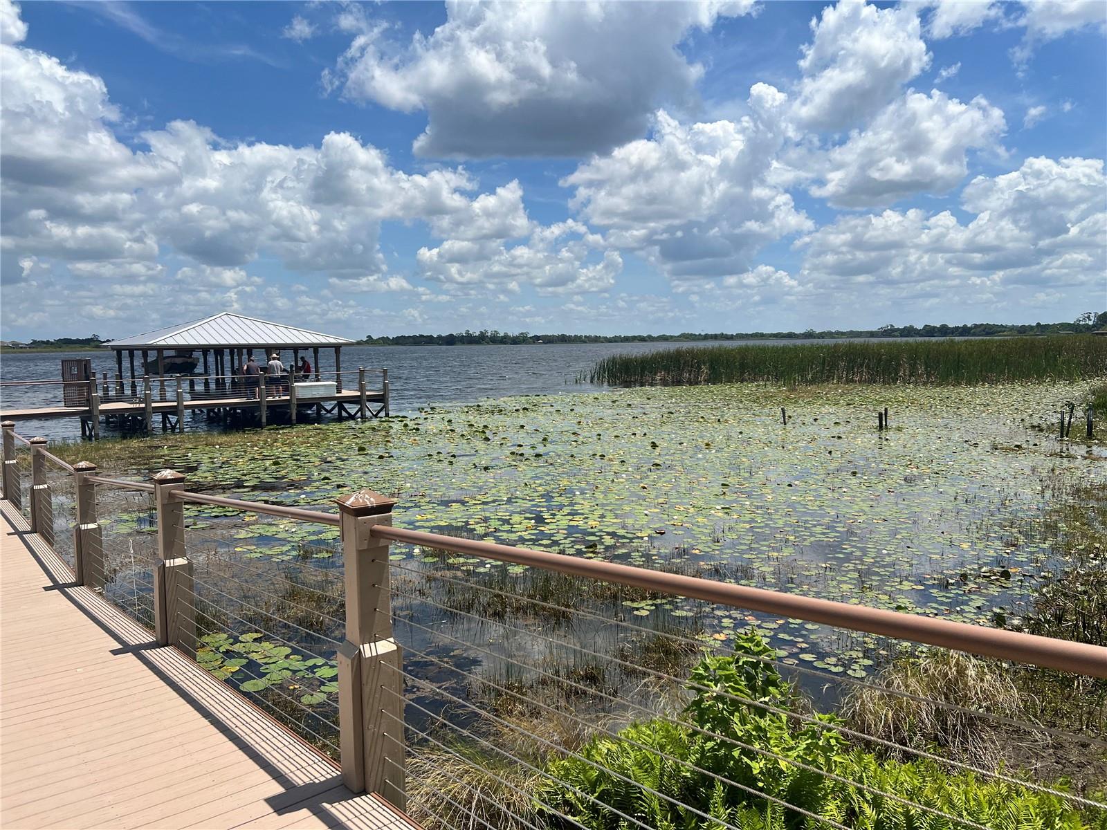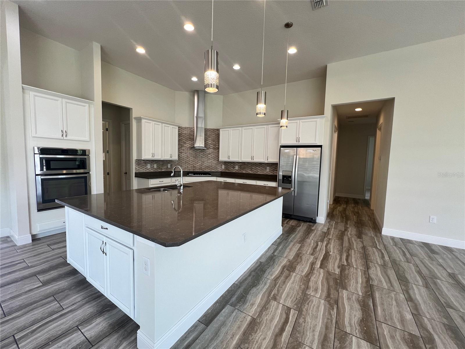 Located in the 55+ gated community of Twin Lakes in St. Cloud. This Sanibel model home welcomes you to a spacious open floor, 3-car garage and ample storage space. As you enter the home, the foyer leads to the high ceiling, live/work space adjacent to the foyer. A flexible private space perfect for an office, library or study. Continuing through foyer to the heart of this open floor plan is the kitchen with an extended kitchen island with granite countertops, 5 burner gas stove top, beautiful tile backsplash, large pantry, custom cabinetry, stainless steel appliances, stainless steel/glass hood exhaust fan and pendant lights. The open floor plan continues from indoor to outdoor with direct access to the Patio from both the family room and dining room. The patio leads to a large back yard. The spacious Primary Bedroom Suite features tray ceilings, large walk-in closet and an ensuite suite bathroom. The ensuite bathroom features an oversized semi-frameless walk-in shower with dual shower heads and a bench seat; double sink vanity, granite countertops and a separate water closet. A 20,000 square foot clubhouse is the center piece of community amenities that feature a resort style pool, lap pool, fitness center, tennis courts, putting green, walking trails and pickle-ball court. Outdoor activities such as on Twin Lakes residents have access to fishing, canoeing, kayaking and boating on Live Oak Lake. The Twin Lakes community has a full cadre of social and recreational activities to keep residents active and engaged.
