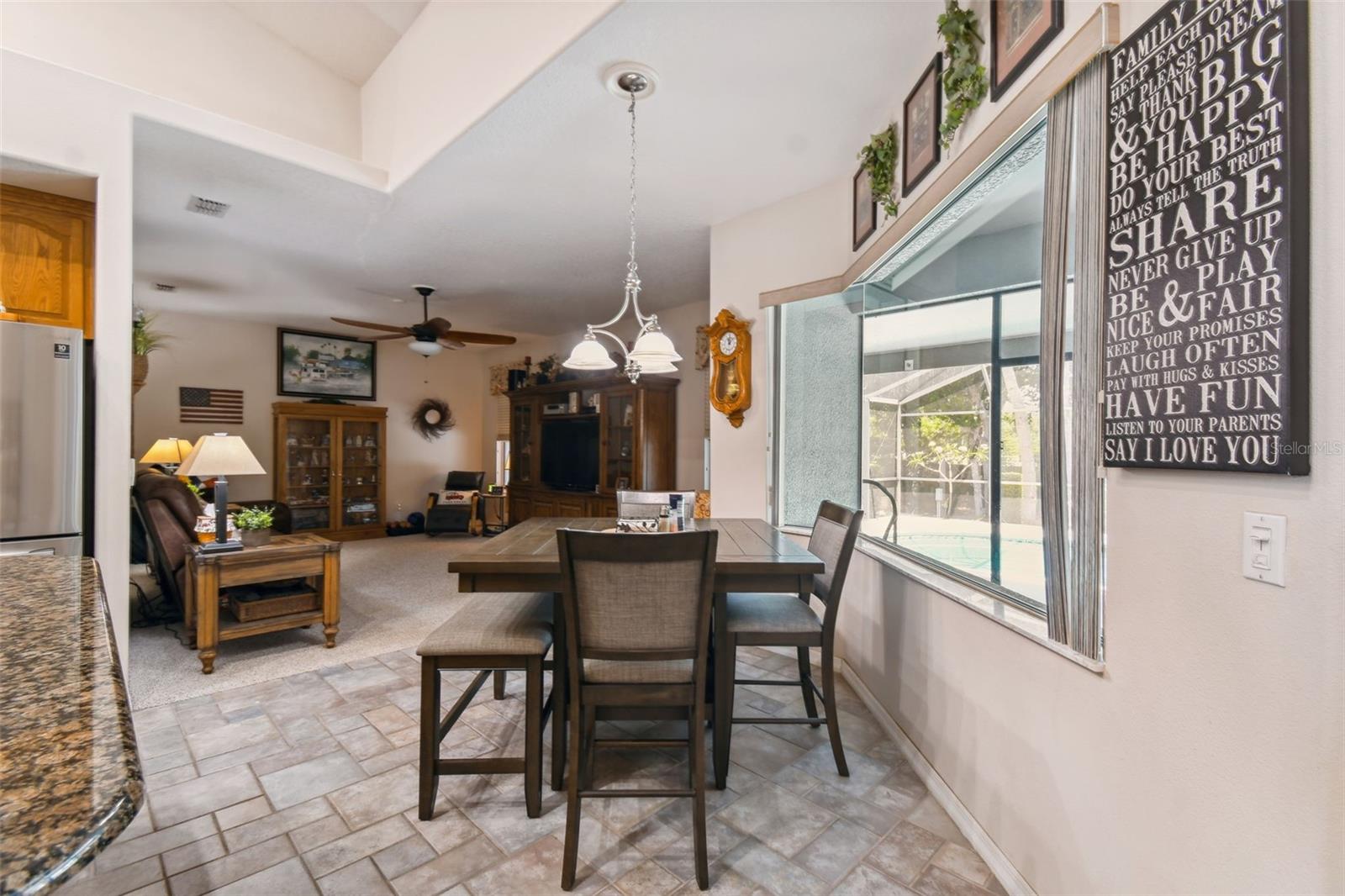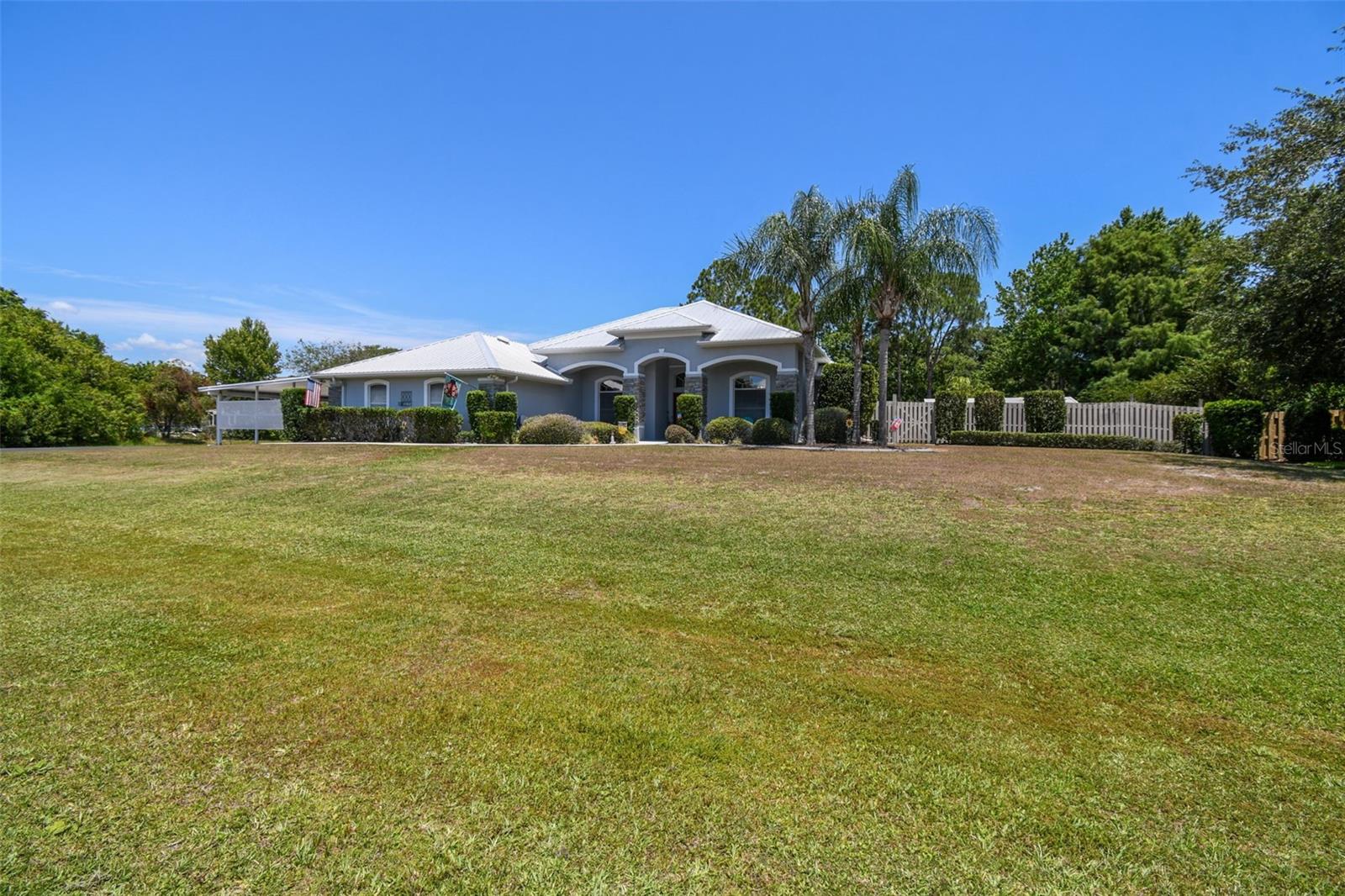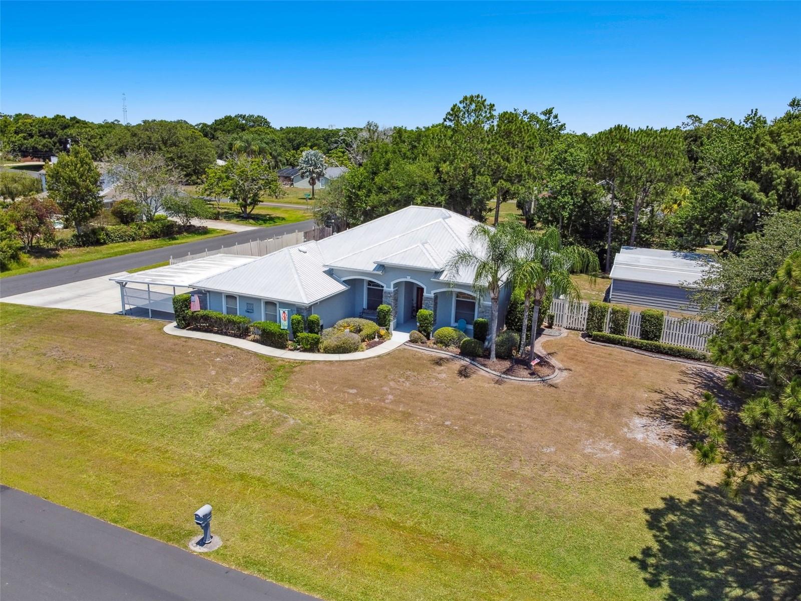 Discover this captivating 3-bedroom, 2-bathroom Pool home, boasting nearly 2,400 square feet of spacious living. This charming home features a versatile home office with elegant French doors, easily convertible into a fourth bedroom. Nestled on a serene half-acre corner lot in a friendly community, enjoy a generous yard perfect for playtime and a privacy-fenced area for your pets. With ample space for a playground or fire pit, this property is ideal for outdoor gatherings. You’ll also find covered sheds and an outbuilding garage, providing plenty of room for your toys, tools, or a workshop. Step inside to find a thoughtfully designed split bedroom layout for enhanced privacy. The main living areas showcase soaring vaulted ceilings, while the kitchen impresses with granite countertops, stainless steel appliances, a breakfast bar, and a delightful dinette area with a solid glass bay window overlooking the sparkling pool. Additional spaces include a formal dining room, formal living room, and a cozy family room with pool views. Retreat to the luxurious Owner’s Suite, featuring dual vanities, a glass shower, a relaxing garden tub, a water closet, and two walk-in closets. The indoor laundry room comes equipped with a washer and dryer for added convenience. Venture outside to your personal paradise: a private pool, a covered screened patio, and a spacious screened lanai with a cozy sitting area. The side-entry 2-car garage includes a motorized retractable screen door, and there’s an oversized heavy-duty 3-car carport for all your vehicles. A second paved driveway leads to the backyard, complete with an RV/boat pad equipped with electric. Enjoy peace of mind with a zoned HVAC system and numerous updates, including a new metal roof (2018), fresh exterior paint (2024), septic tank pump (2023), and new well pump head (2020). This home is brimming with upgrades—check out the Feature Sheet for all the details! Conveniently located just off Narcoossee Rd, you can enjoy the tranquility of country living while being close to shopping, dining, and more. Plus, there are no HOA or CDD fees! If you’re searching for a serene pool home with ample storage in a welcoming community, your dream home awaits. Call today to schedule your private tour and experience luxury living!