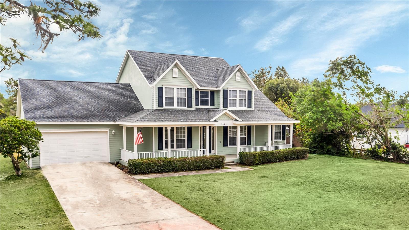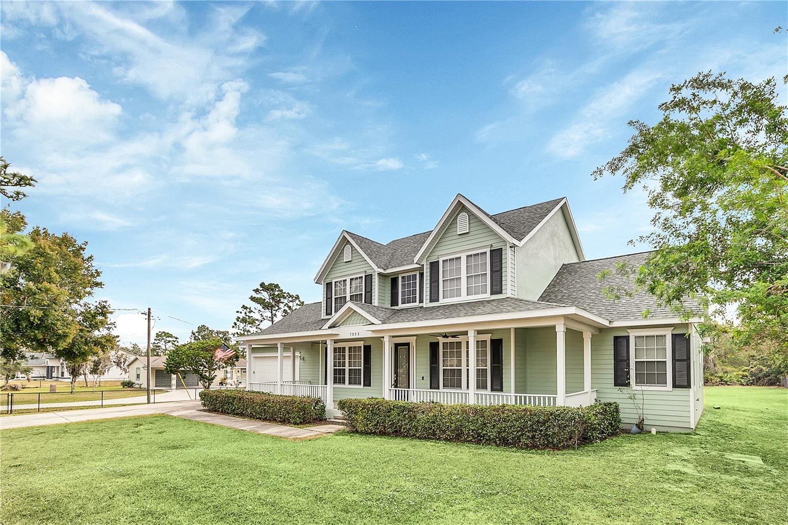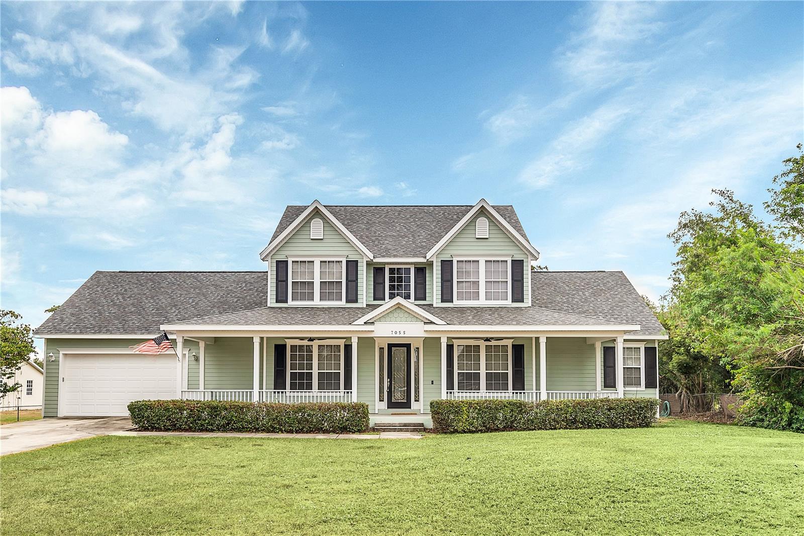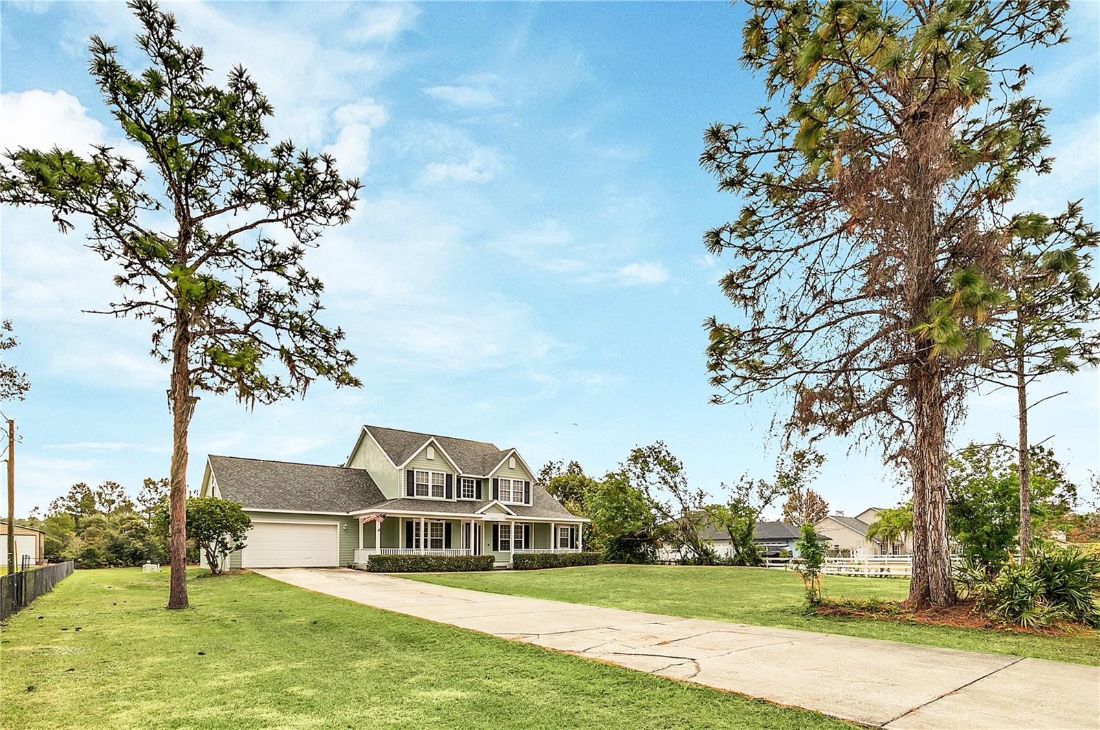 Welcome to your dream home nestled on a sprawling one-acre lot. This beautifully designed property offers the perfect blend of luxury, comfort and convenience with three bedrooms and two and a half baths. Ground floor primary suite features dual walk-in closets, bath with garden tub and shower dual vanities. Den/office offers a quiet and private space. Custom kitchen features cherry kitchen cabinets, walk-in pantry and brand-new refrigerator and range. Enjoy the open and airy family room with 20-foot ceilings and a cozy electric fireplace. The dining room adorned with elegant wainscoting is perfect for formal meals and gatherings. Upstairs/family area versatile space can be used as a playroom or additional family room, a large bonus room, and laundry room that is conveniently located to make chores a breeze. Oversized garage offers plenty of room for vehicles and storage. Both a large front and back porches are perfect for relaxing and enjoying the beautiful surroundings. Find crown molding throughout the home. Freshly painted. You'll enjoy the tranquility of country living while just a short drive away from local amenities. No HOA.