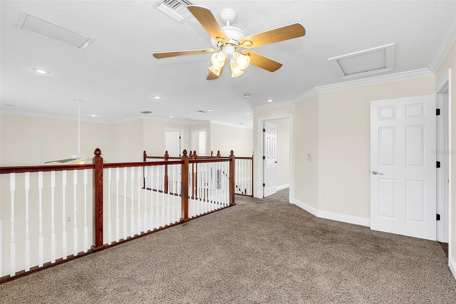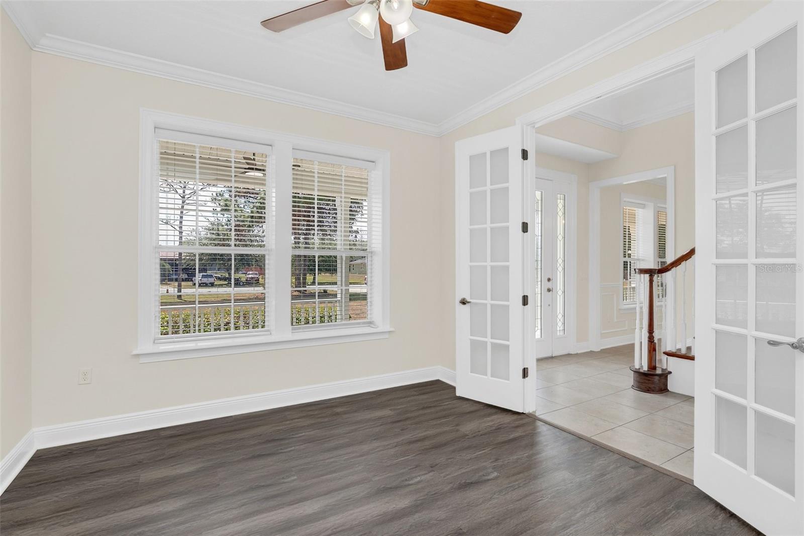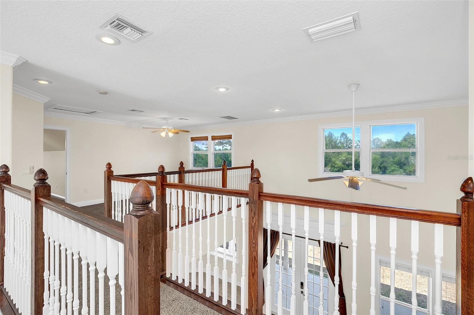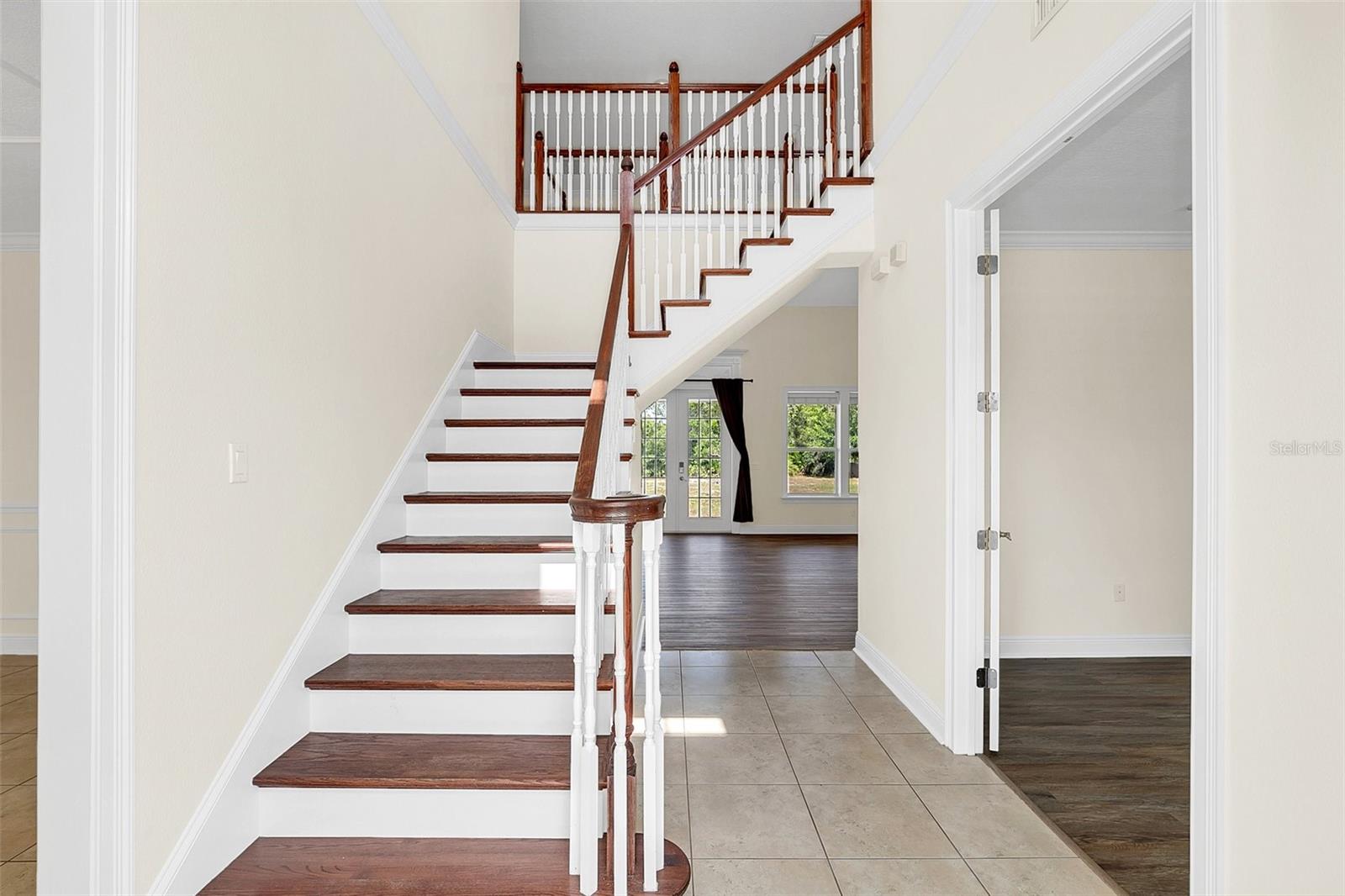 Welcome to your dream home nestled on a sprawling one-acre lot. This beautifully designed property offers the perfect blend of luxury, comfort and convenience with three bedrooms and two and a half baths. Ground floor primary suite features dual walk-in closets, bath with garden tub and shower dual vanities. Den/office offers a quiet and private space. Custom kitchen features cherry kitchen cabinets, walk-in pantry and brand-new refrigerator and range. Enjoy the open and airy family room with 20-foot ceilings and a cozy electric fireplace. The dining room adorned with elegant wainscoting is perfect for formal meals and gatherings. Upstairs/family area versatile space can be used as a playroom or additional family room, a large bonus room, and laundry room that is conveniently located to make chores a breeze. Oversized garage offers plenty of room for vehicles and storage. Both a large front and back porches are perfect for relaxing and enjoying the beautiful surroundings. Find crown molding throughout the home. Freshly painted. You'll enjoy the tranquility of country living while just a short drive away from local amenities. No HOA.