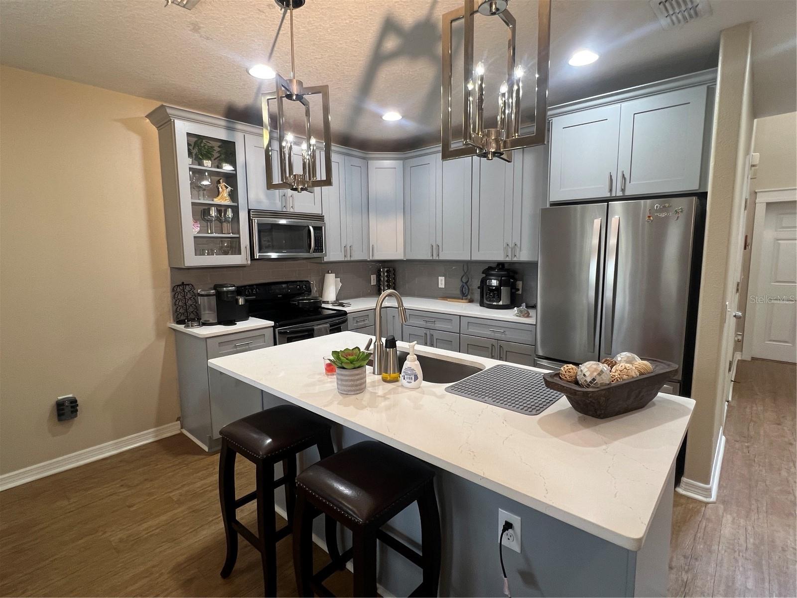 PRICE REDUCED!! Come and Step into a world of refined luxury in this stunningly renovated townhome in St. Cloud's dynamic and sustainable city. The first floor features an open floor plan with tasteful tile flooring and a picturesque view of the surroundings. The kitchen exudes sophistication with its gleaming appliances and elegant quartz countertops. On the second floor, discover a grand master bedroom with a spacious walk-in closet and two additional bedrooms, each with generous closet space. This property has undergone significant enhancements in 2021, including the installation of a new roof and exterior repainting. Its prime location allows for walking access to retail and dining options, while also being situated near schools and major highways like the turnpike. Additionally, the property benefits from being part of a low HOA community, providing a convenient commute to the Lake Nona area.