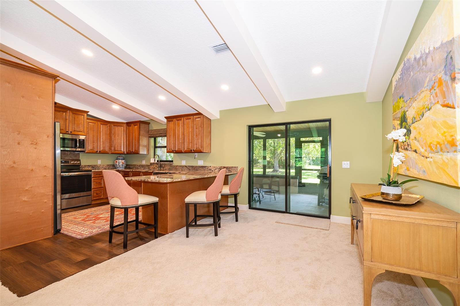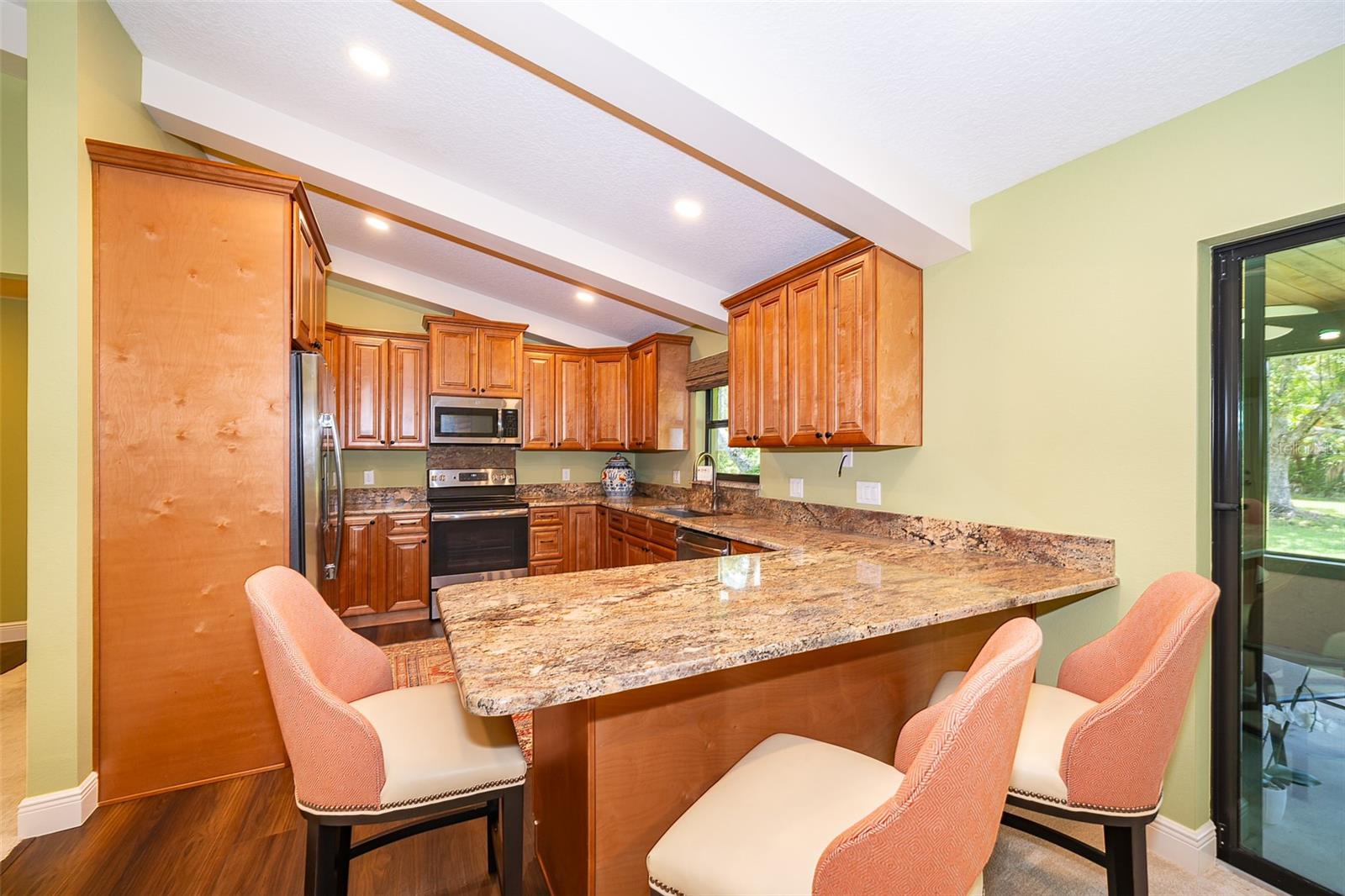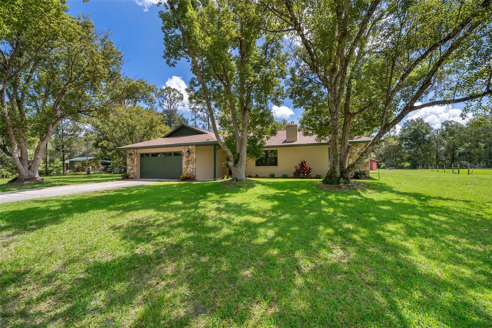 Welcome to your serene retreat! This charming, move-in-ready home sits on 5 picturesque acres, offering both privacy and space. The property features a ranch style 2018 rebuilt home, tractor garage, a mix of cleared land as well as mature trees that provide privacy, and a east facing screened porch provides a perfect setting for enjoying afternoons and evenings. This home combines comfort, functionality, and natural beauty, making it the perfect place to create lasting memories. Step inside to find an inviting open floor plan, perfect for both relaxation and entertaining. The living area boasts ample natural light, creating a warm and welcoming atmosphere. The kitchen is a chef’s delight, with stainless steel appliances, lots of cabinets with storage including 3 lazy Susan’s, plenty of counter space, and a functional layout that makes meal prep a breeze. Adjacent to the kitchen is a cozy dining area with views of the sprawling landscape. The master suite is a peaceful sanctuary, featuring a trey ceiling outlined by lights, a walk-in closet with built-in shelves and an en-suite bathroom with heated floors. With a split floor plan, the two additional bedrooms are well-sized, each with ample closet space equipped with cable and electrical in the closets. Outside, the property truly shines. The expansive 5 acres gives endless possibilities for outdoor activities, gardening, enjoying the tranquility of nature, adding onto the home, or building another structure. The oversized 2-car garage provides convenient storage and space for your vehicles. Accessible to Florida turnpike and Narcoossee Rd. A quick 30 minutes to the Orlando International Airport and an hour to Melbourne Beach via 192.