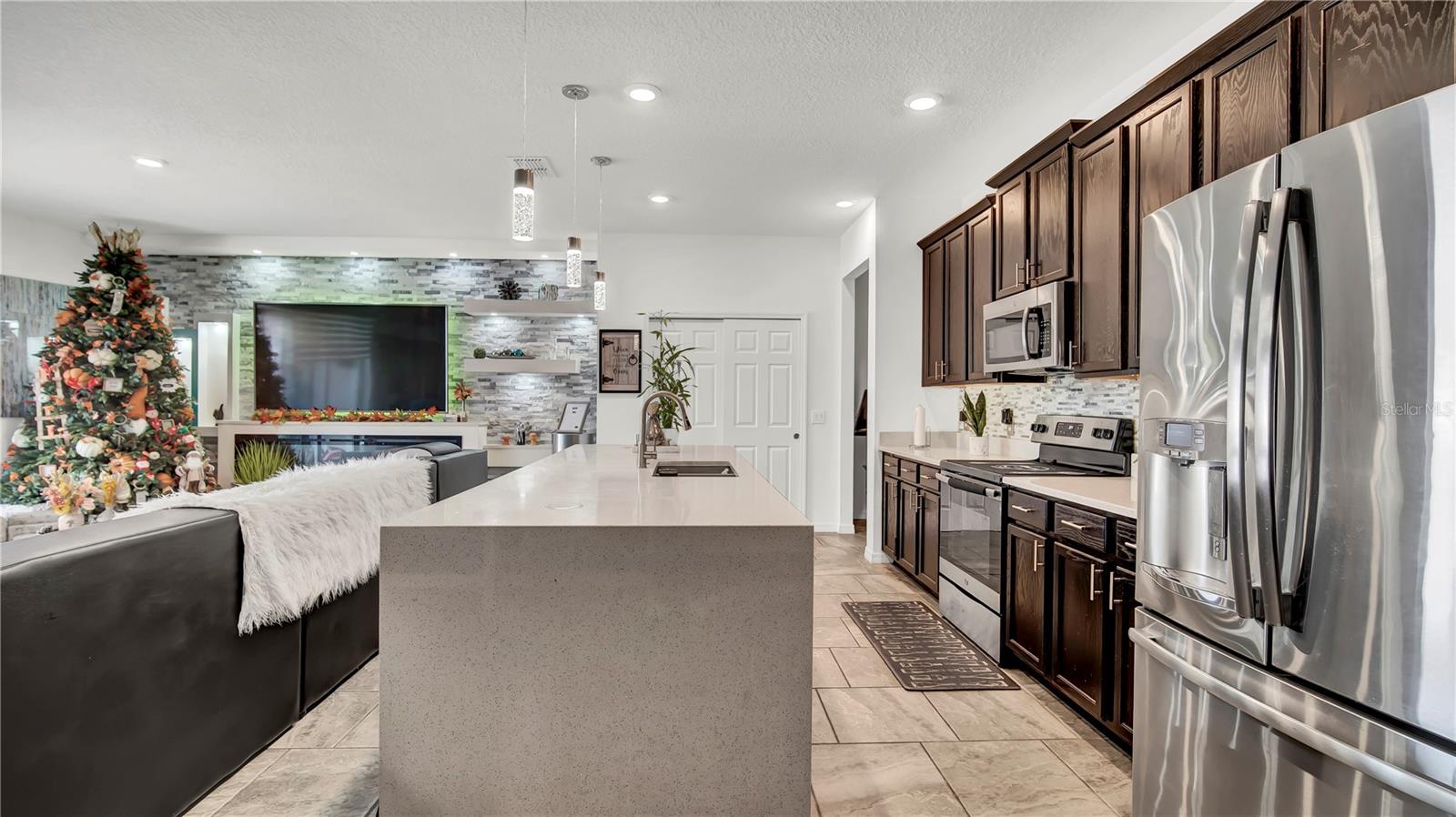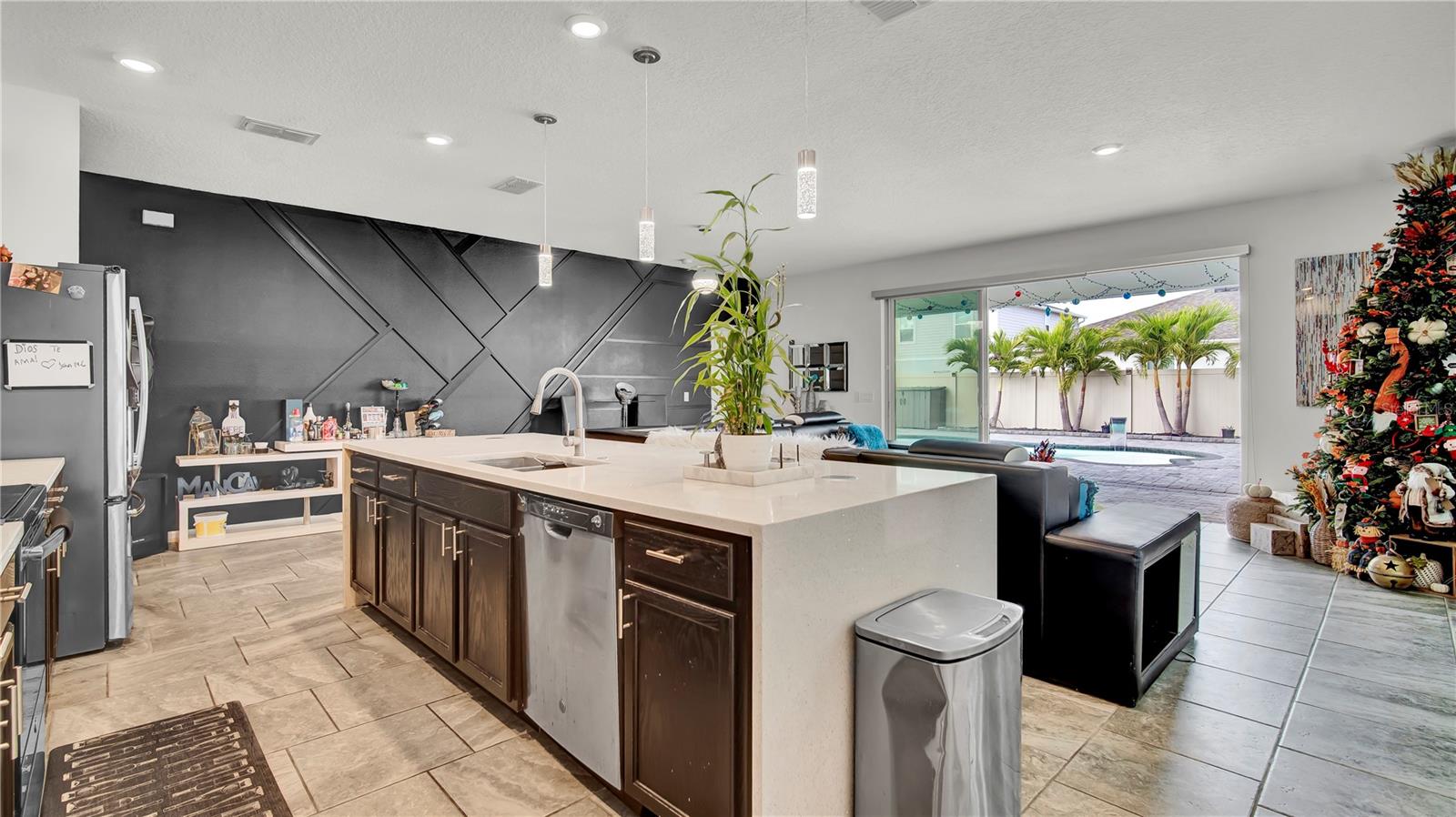 Step into this beautifully upgraded home. The kitchen features quartz countertops, Smart lighting is thoughtfully installed throughout the home, Upgraded floors and lawn. Outdoors, you'll find your own private pool with a fully paved patio providing a seamless transition from indoor to outdoor living, offering a great space for entertaining or relaxing. Located just minutes away from the Turnpike exit and major points of interest, this property ensures easy access to shopping and dining. With its prime location and stunning upgrades, this home is designed to impress and is move-in ready. Don’t miss this one-of-a-kind opportunity to make it your own!