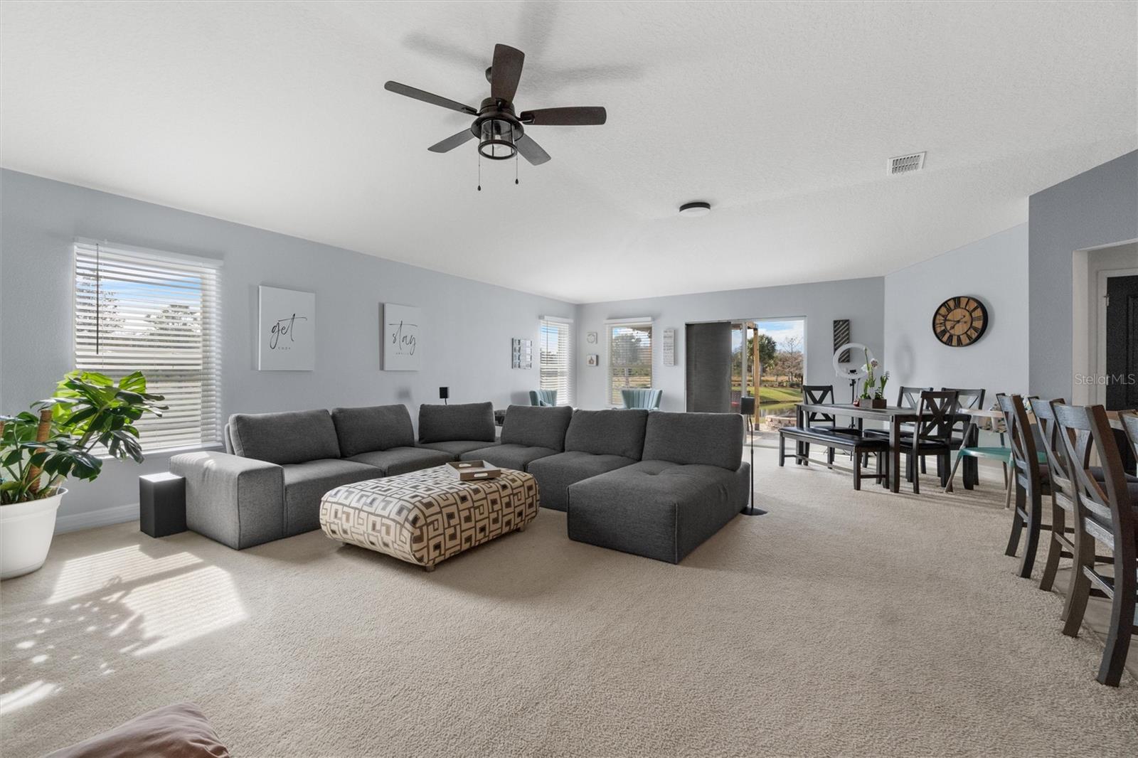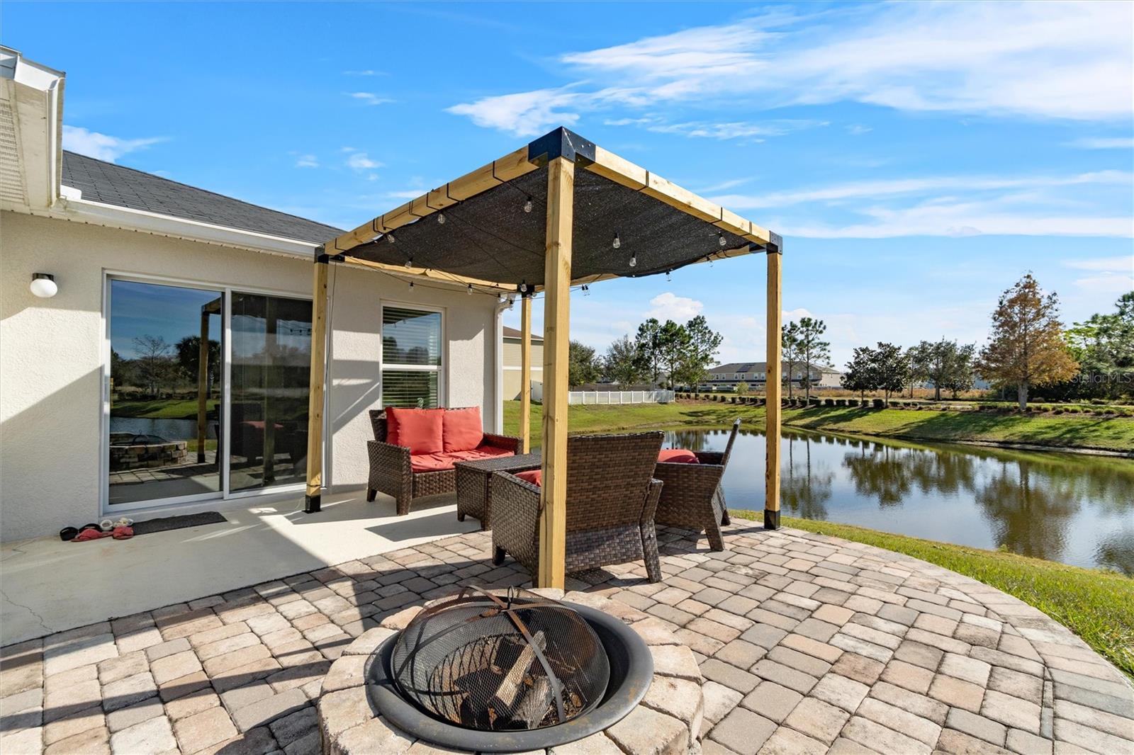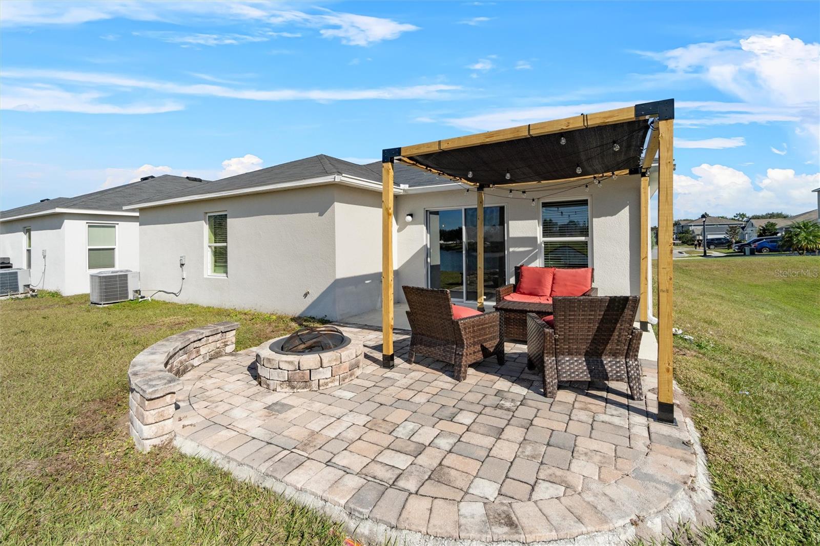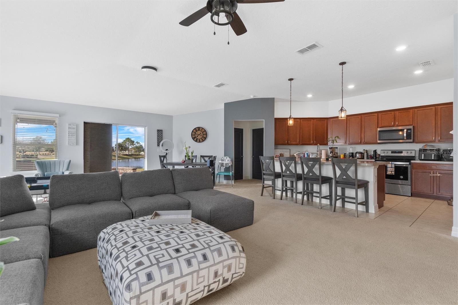 PRICED TO SELL! Stunning CORNER LOT! Beautiful WATER VIEWS! SELLER CREDIT towards closing! Welcome to your dream home in the sought-after Gramercy Farms Subdivision of St. Cloud! Built in 2019, this move-in-ready 4-bedroom, 2-bathroom home with a 2-car garage sits on a prime corner lot with breathtaking water views. Inside, you'll find an inviting open floor plan designed for both comfort and entertaining. The spacious kitchen features sleek stainless steel appliances and plenty of counter space for meal prep and gatherings. The split-bedroom layout offers privacy, with three bedrooms at the front of the home and a luxurious master suite tucked away at the back. The master boasts a large walk-in closet and an ensuite bathroom complete with a double vanity and walk-in shower. Step outside to your extended paved patio, the perfect spot to unwind with your morning coffee or cozy up by the matching fire pit in the evenings. The tranquil water view enhances the peaceful ambiance, making it an ideal setting for relaxing or entertaining. Located just minutes from US 192, this home offers the perfect balance of comfort, convenience, and scenic beauty. Don’t miss out—schedule your private showing today!