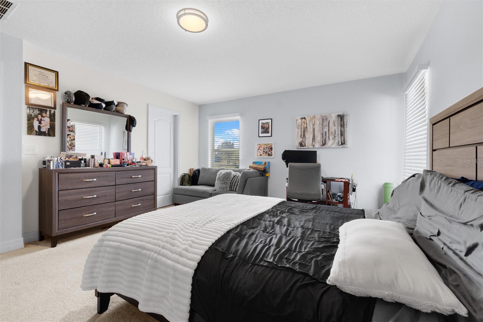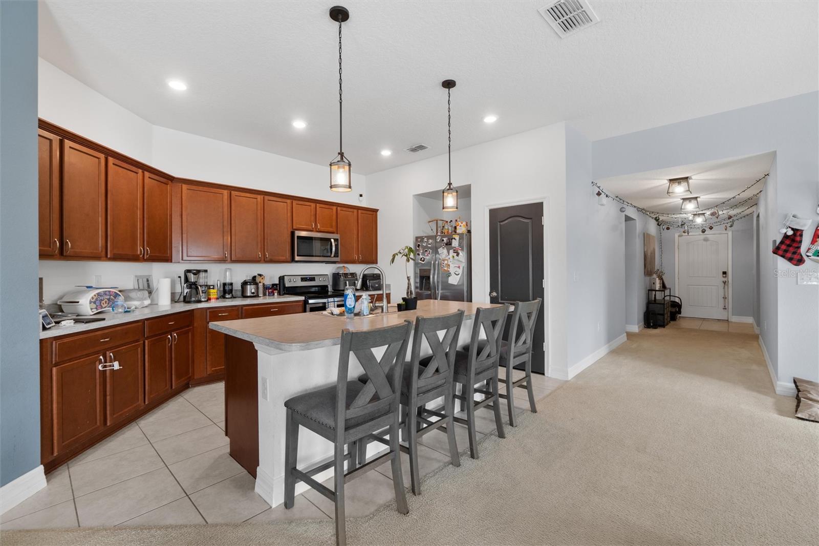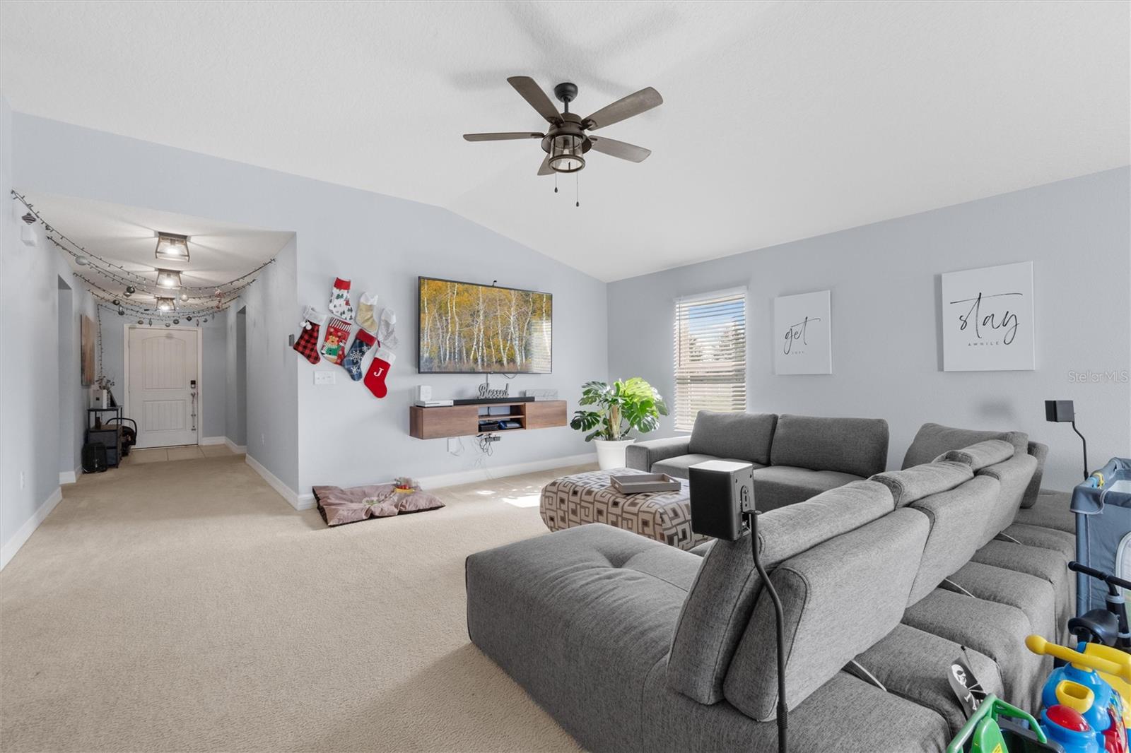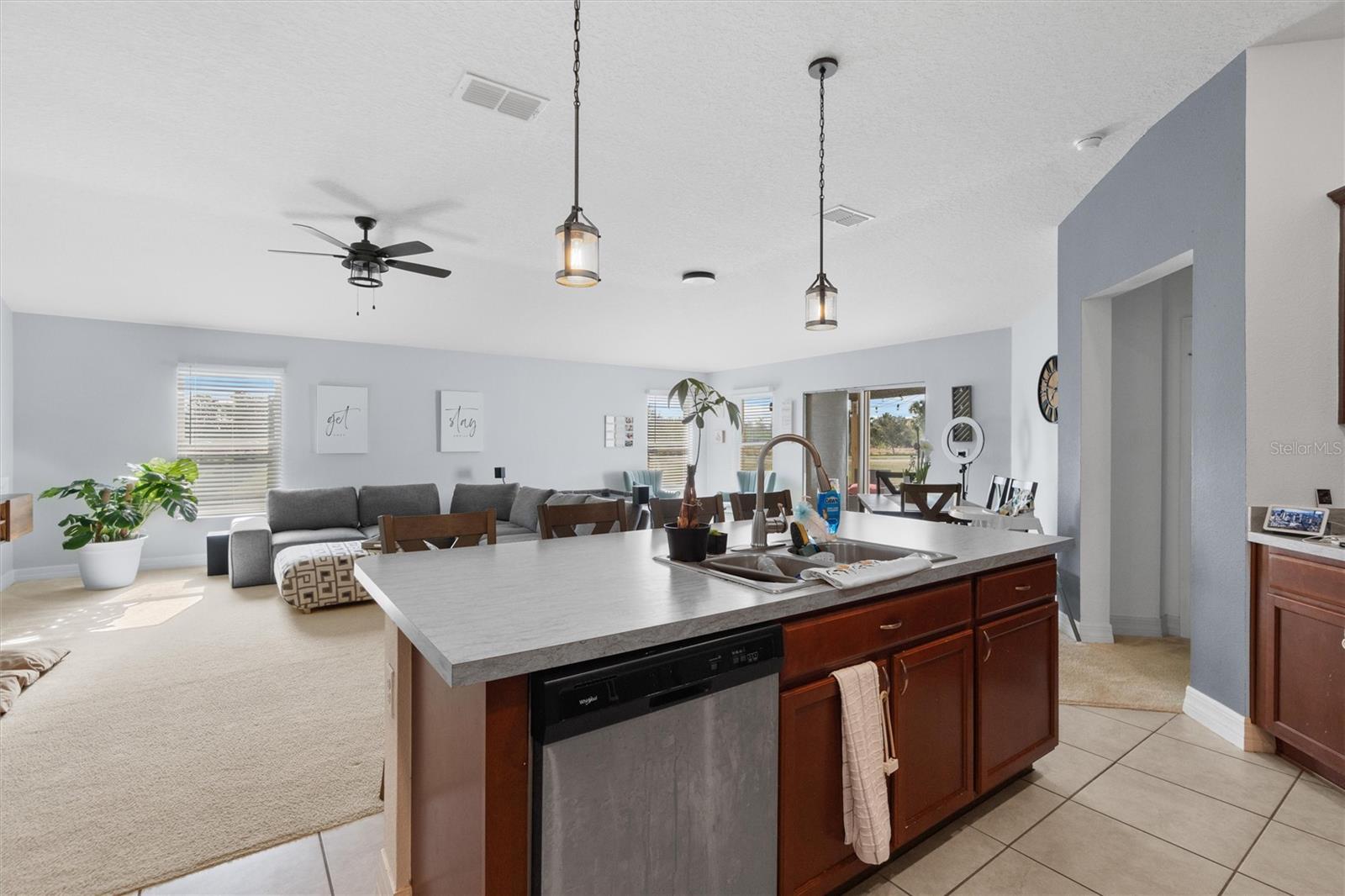 PRICED TO SELL! Stunning CORNER LOT! Beautiful WATER VIEWS! SELLER CREDIT towards closing! Welcome to your dream home in the sought-after Gramercy Farms Subdivision of St. Cloud! Built in 2019, this move-in-ready 4-bedroom, 2-bathroom home with a 2-car garage sits on a prime corner lot with breathtaking water views. Inside, you'll find an inviting open floor plan designed for both comfort and entertaining. The spacious kitchen features sleek stainless steel appliances and plenty of counter space for meal prep and gatherings. The split-bedroom layout offers privacy, with three bedrooms at the front of the home and a luxurious master suite tucked away at the back. The master boasts a large walk-in closet and an ensuite bathroom complete with a double vanity and walk-in shower. Step outside to your extended paved patio, the perfect spot to unwind with your morning coffee or cozy up by the matching fire pit in the evenings. The tranquil water view enhances the peaceful ambiance, making it an ideal setting for relaxing or entertaining. Located just minutes from US 192, this home offers the perfect balance of comfort, convenience, and scenic beauty. Don’t miss out—schedule your private showing today!