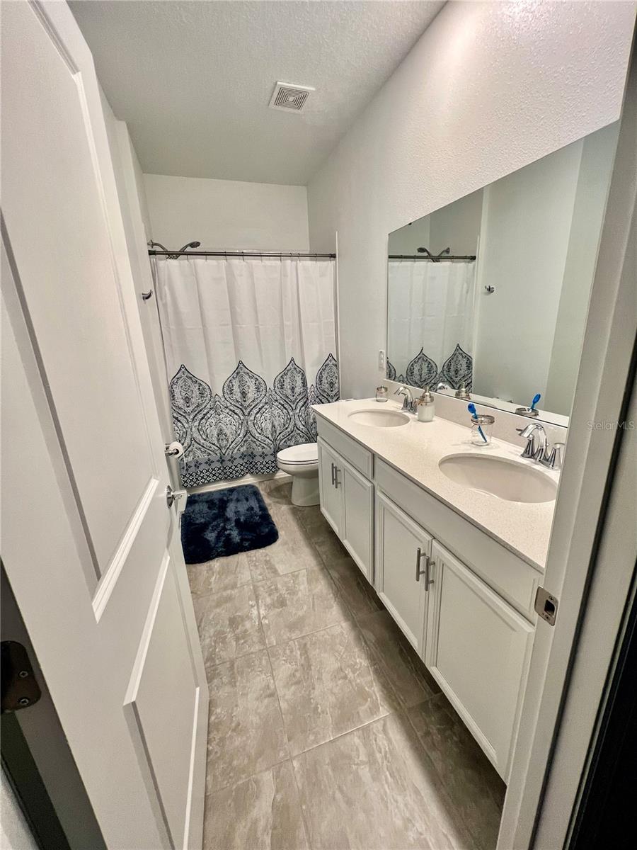 Welcome home to this new Lennar home at desired Pine Glen in Saint Cloud. This 2 story 3 bedroom, 2.5 bathroom home offers an open concept downstairs with a bonus room just off the kitchen. Tiled floors throughout the downstairs living area. Carpet throughout the upstairs. All appliances are stainless steel with upgraded countertops and 42" cabinets in the kitchen and bathrooms. Between the detached 2 car garage sits a cozy courtyard for outdoor gathering. Community has plenty of parks and recreation space and even a large dog walk park. Easy access to all majors roads and highways. Come view this beautiful home.