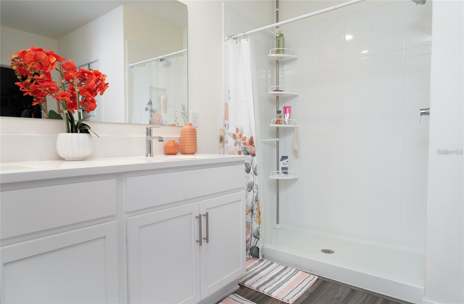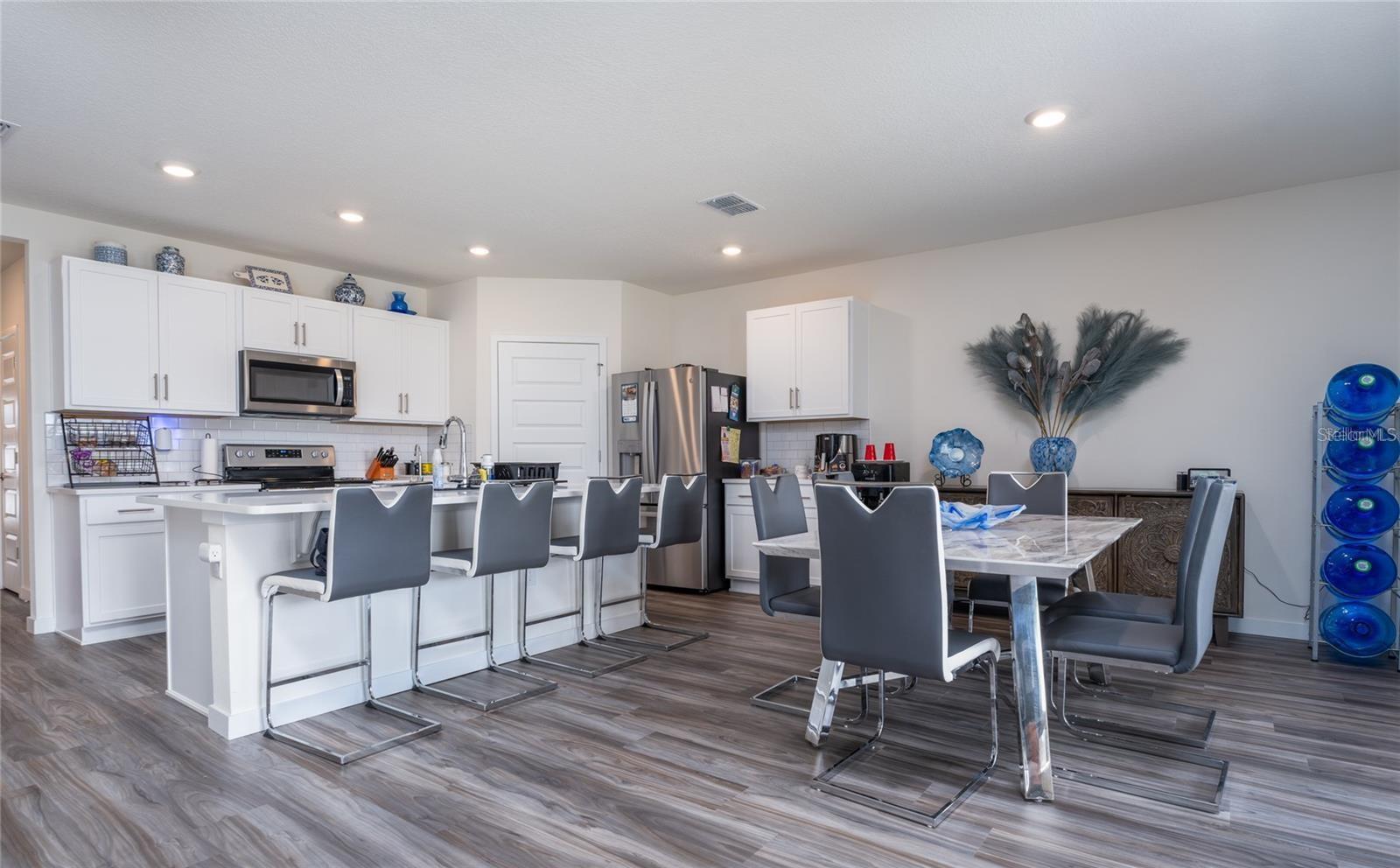 Welcome to this charming and spacious 4-bedroom home boasting a welcoming ambiance. Nestled in a corner lot the allure of the home is evident with its well-maintained exterior and a 2-car garage. Upon entering, the first bedroom is strategically placed, and it could serve as a guest room, office or a cozy den. The heart of the home lies in the well-appointed open floor plan with a kitchen featuring an island, stainless steel appliances, pantry and plenty of storage space. Enjoy the comfort of a great room that connects to the dining area and kitchen. The master bedroom exudes tranquility and functionality, complete with a spacious walk-in closet for storage convenience; a master bath designed for comfort showcasing double sinks, walk-in shower, and a private commode room, adding a touch of luxury to everyday living. As a new owner, you will enjoy a delightful living experience once you move into this smart, energy efficient home. All upgrades are already in place; there is an Ecoverse water system for the entire house, custom verticals, Ring security system, attic pull down ladder, and gutters! You can relax and sip a cup of coffee in the comfort of the fully screened back patio and enjoy the privacy of a fully fenced backyard; your 4-legged friends will have plenty of space to play safely. Just bring your personal belongings and make this home yours today! Room Feature: Linen Closet In Bath (Primary Bedroom).