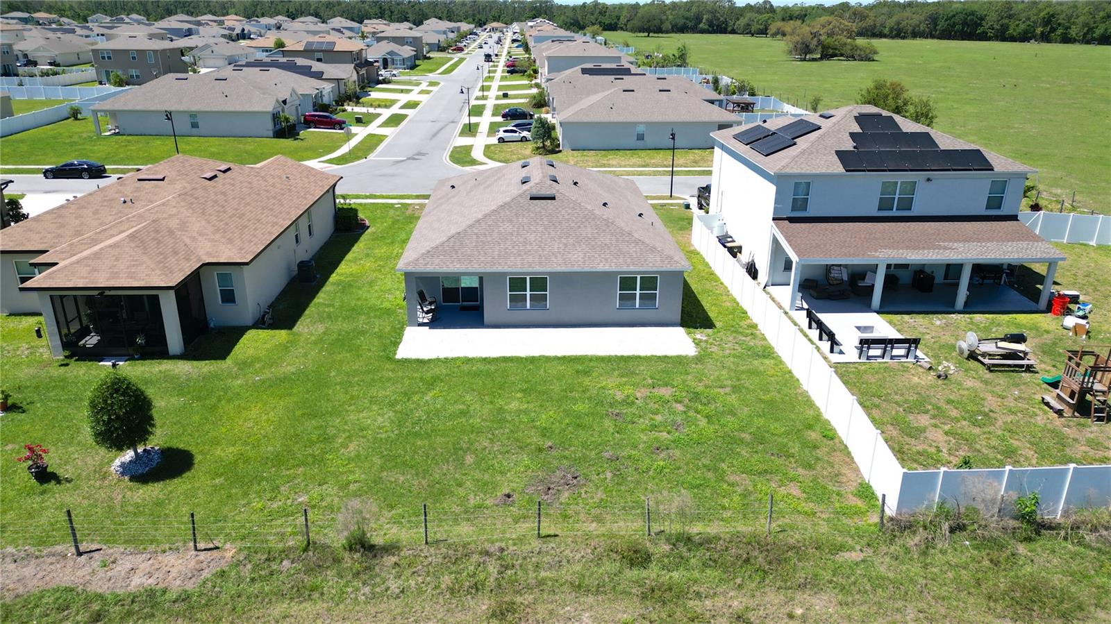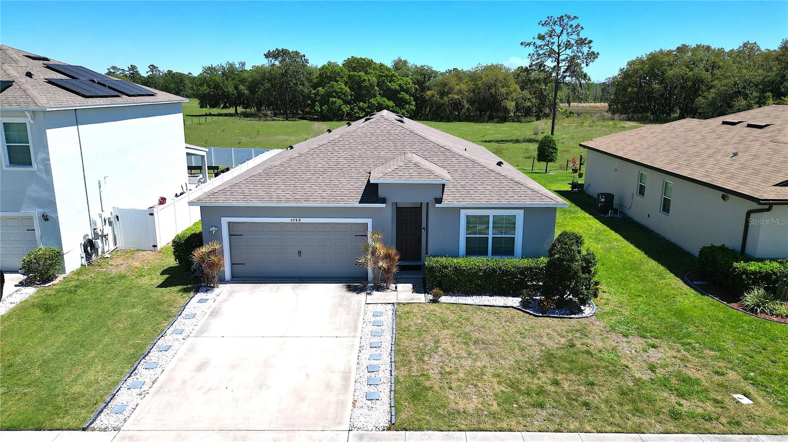 "FOR SALE! Unique Opportunity: Assume Seller's Loan at 2.99% Interest Rate! Welcome to your dream home! Nestled in a tranquil Cul De Sac street, this charming one-story residence embodies the perfect blend of modern elegance and serene natural beauty. Crafted with the sought-after Cali Floor Plan from DR Horton, this home boasts a myriad of contemporary features, promising a lifestyle of comfort and luxury. Step inside to discover a spacious, open-concept layout adorned with 9’ ceilings, gleaming tile flooring in main areas, and Water Proof Vinyl floors in the bedrooms. The heart of the home, the kitchen, is a culinary haven with a large island, ideal for casual dining or entertaining guests. A walk-in pantry, ample cabinets, and generous counter space ensure both functionality and style. Adjacent to the kitchen, the dining room and living area seamlessly flow, offering a perfect setting for gatherings and relaxation. Beyond the sliding doors lies a covered porch, inviting you to savor outdoor dining or simply unwind amidst nature's embrace. Retreat to the expansive Bedroom One, privately nestled at the rear of the home. This luxurious sanctuary boasts a king-sized bed fit, an en suite bathroom with double vanity, a spacious walk-in closet, and a separate linen closet, ensuring utmost comfort and convenience. Three additional bedrooms share a well-appointed second bathroom, providing ample space for family or guests. The convenience of a two-car garage, laundry room, and extra storage closet further enhances the functionality of this impeccable home. Additionally, the current seller has thoughtfully extended the backyard area with pavers, providing ample space to bask in the beauty of the surroundings and create memorable outdoor moments. Whether you envision cozy gatherings around a fire pit or leisurely evenings under the stars, this expanded outdoor oasis offers endless possibilities for enjoyment and relaxation. Furthermore, with its spacious layout, the backyard presents an ideal canvas for those aspiring to create their private retreat. There is plenty of room to accommodate a luxurious private pool, transforming your backyard into a personal paradise where you can indulge in the ultimate relaxation and entertainment. What truly sets this property apart are its three distinctive features: 1. Secluded Cul De Sac Location: Enjoy peace and privacy with minimal traffic, creating a serene ambiance for your daily living. 2. Backyard Oasis: Embrace the beauty of nature with no rear neighbors, offering a picturesque backdrop of lush greenery and birdsong, transforming your home into a tranquil sanctuary. 3. Assumable Loan Option: Take advantage of the seller's offer to assume the current loan at a favorable 2.99% interest rate, streamlining the home-buying process for added convenience. This exceptional property is vacant and ready for you to make it your own. Don’t miss out on this incredible opportunity! Contact your Realtor today to schedule a viewing and embark on a journey to your forever home!"