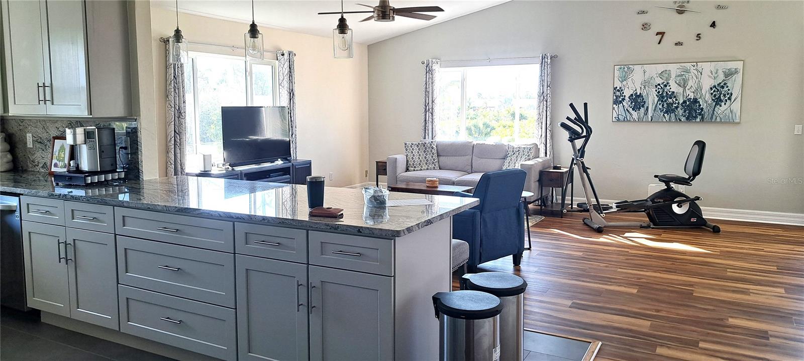 This is the ONE!!! Paradise in paradise!!! A must see!!! Upper unit has 3 bedrooms and 2 bathrooms. Lower unit, fully equipped, with one bedroom one bath. Perfect as an in-law suite or as a rental. INVESTORS DREAM!!! LOWER UNIT: Kitchen featuring all smart appliances with stainless steel finishes, gray cabinets, dark hardwood / wood-style floors throughout, and light granite counters. Living area with ceiling fan and French doors with an abundance of natural light. Bathroom has tile floors, vanity, an enclosed shower and toilet. The bedroom has ample space with French doors and built in drawers with a counter and closet. There is also an additional room for the washer and dryer and a large walk-in closet. Front of property – Double carport and screened in sunroom with concrete floors and a wealth of natural light. To access the upper unit, you may take the stairs or use the convenience of an elevator. UPPER UNIT: As you enter you will find a spacious floor plan with open dining and living area, lofted ceilings, abundant lighting and ceiling fan. The kitchen features, all LG smart appliances with stainless steel finishes, gray, soft close cabinetry, tile plank flooring and light granite counters that also serve as backsplash. The ample counter space extends to create a peninsula, and a breakfast bar area with hanging light pendants. To continue with the smart technology, this home includes a NEST dual temperature thermostat and wave tech kitchen faucet. All fans throughout the home are also remote controlled. There is a huge pantry in the kitchen and another in the hallway that serves as additional storage. The guest bathroom features a washer and dryer, vanity, toilet and a large walk-in shower. The primary bedroom is luxurious with high ceilings and crown moldings. A sliding door opens to an amazing seating area with large windows for an awesome view of the pond out back. You could also use this room as an office. The primary bathroom has dual sinks separated by cabinets and a walk-in shower that comes equipped with a fold down seat. There are 2 storage units in the pillars under carport with a much larger and lockable storage room towards the back side of the house on the lower level for all your tools and outdoor equipment. Included is a Dual fuel XP12000EH generator with cord. You will find outlets for both the generator and for an RV at the side of the house near the AC units. Overlooking the pond, you will find a pier where you can enjoy endless moments watching the fish, turtles and many varieties of birds and other wildlife that visit frequently. You will have ample space on the 1.085 lot for all your toys, RV’s, boats or to add a pool. The possibilities are endless. And there was NO flooding during the last 3 substantial hurricanes.