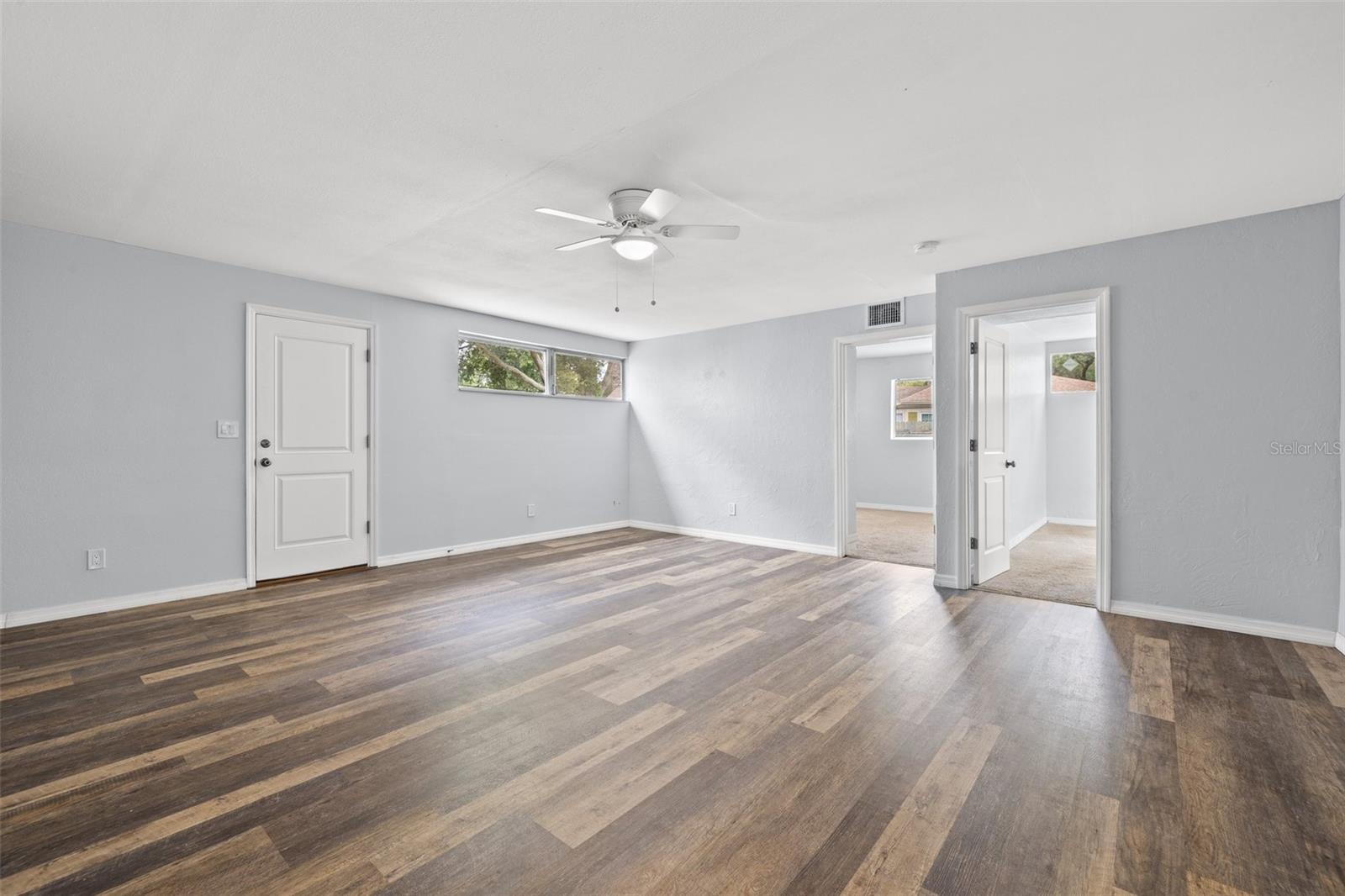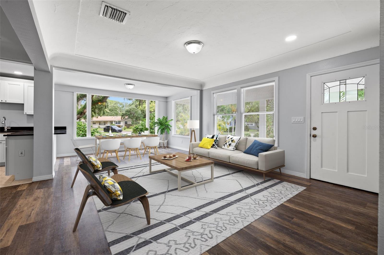 One or more photo(s) has been virtually staged. One or more photo(s) has been virtually staged. Welcome to this beautiful coastal inspired home near Lake Maggiore, Boyd Hill Nature Preserve, and five minutes from downtown St. Pete. This home has a well-appointed main house along with an additional garage apartment tucked away behind it. The main home is four bedrooms, two bathrooms, and 1,859 square feet. The 400 square foot detached ADU/garage apartment features a studio space, a full bathroom, and full kitchen. Pulling up to the front of the home you will notice the Florida coastal vibe with the brick walkway to the front entry, the large covered front patio and carport, and the mature Florida landscaping out front. Stepping into the home you are greeted with a vast open living, dining, and kitchen space. The entryway and the dining room also feature original cove ceiling adding some period charm to the home. This home has an abundant natural light throughout the main living space. The kitchen has been updated completely with white cabinets, granite countertops, stainless steel appliances, and an undermount sink. There are two bedrooms along with a hall bathroom at the front of the home. Stepping back to the rear of the home there is an additional oversized family room, two additional bedrooms, another full bathroom, and an indoor laundry closet, featuring a newer Samsung front-loading washer and dryer set. Both bathrooms have been updated and include newer flooring tile and vanities. All the main living space in the home has newer laminate flooring and the bedrooms all have carpet. Tucked away behind the home is the detached two-car garage on the first floor and the ADU/garage apartment above on the second floor. The rear ADU has its own entry and fenced off portion of the yard. Walking into the ADU you will notice the great open space with a full kitchen that includes wood cabinets, granite countertops, and stainless-steel appliances. The bathroom also features a stacked full-size washer and dryer set. The ADU is metered separately for both electric and water utilities. This is a rare bonus, providing the option to rent out the ADU completely separate, with tenants paying all their own utilities. There are two garage bays on the first floor that are sub-divided down the middle. You could provide additional storage to a potential tenant (one bay is in use by current tenant) or use both for personal use. The ADU also has its own newer mini-split A/C system that allows for optimal efficiency along with being ultra quiet. Additional updates are as follows: main house 200amp Square D electrical panel (2019), roofs on both structures (2020), and new ductwork and insulation added (2020). Out back you will find a fully fenced-in yard with a great firepit and area to unwind. The garage and garage apartment are also tucked away behind a 6ft fence on the south side of the home. Come check out this amazing home that has additional income potential to help offset your monthly payments. This home is a 5 minute drive to downtown St. Pete and all the city has to offer.