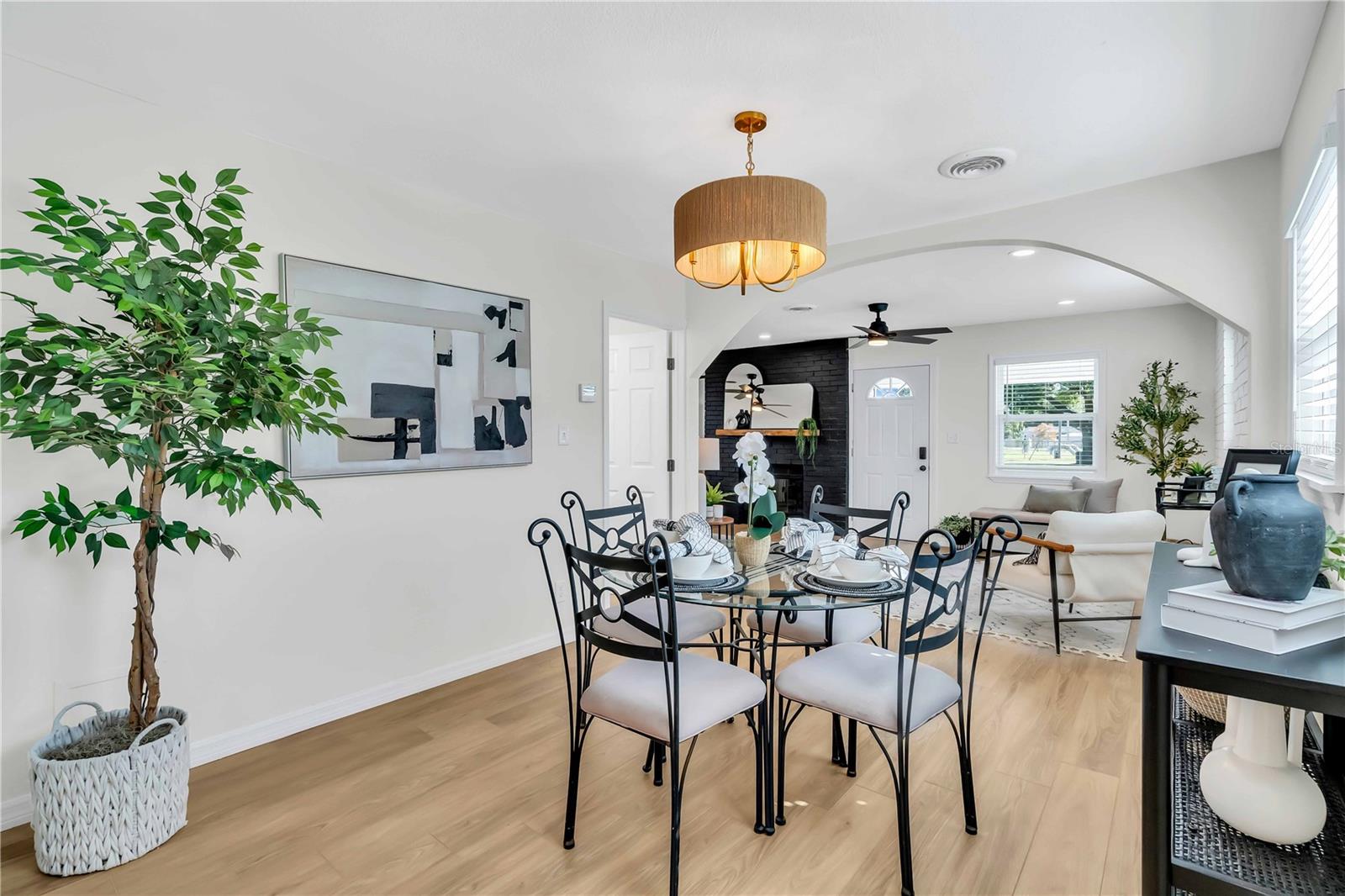**$20,000 closing cost credit** Welcome to this beautifully updated 3-bedroom, 2-bath home with an office and cozy fireplace. Enjoy the modern touches with cosmetic upgrades throughout, including a brand-new kitchen and baths. The home features vinyl flooring and ceiling fans throughout for comfort and style. The fully fenced backyard offers privacy and space for outdoor activities. Inside, you'll find a convenient laundry area and updated windows. With no HOA fees, public water and sewer, and no flood insurance required, this property is both practical and budget-friendly. Located just minutes from several parks, shopping, restaurants, and downtown St. Pete, this home combines modern amenities with a prime location. Don’t miss the opportunity to make this charming house your new home! If interested, please share this virtual tour with your Buyer: https://plotphotography.com/1234-29th-St-N/idx