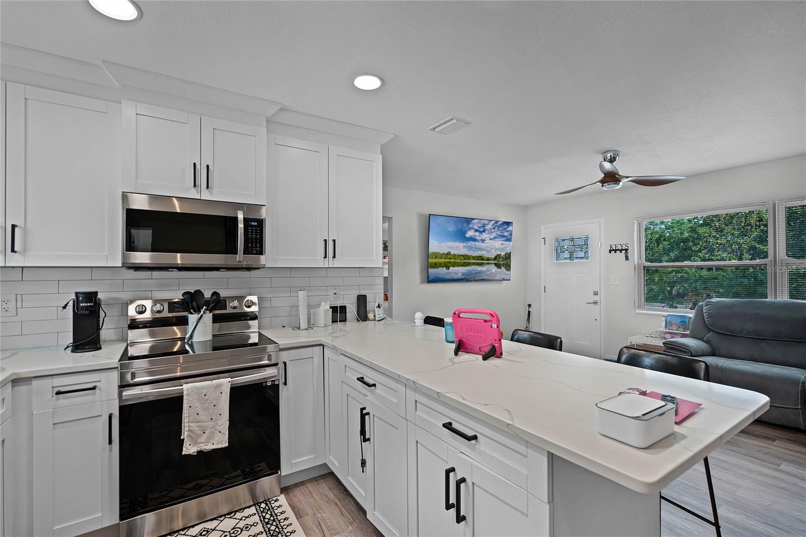 This beautifully updated 3-bedroom, 2-bath home near downtown St. Petersburg is turnkey and ready for you. Solid block home features a , Newer Roof and New flooring, fresh paint, updated kitchen and baths, recessed lighting, ceiling fans, and a spacious laundry room. Enjoy a screened-in martini pool Updated kitchen includes new cabinets, quartz countertops, and appliances. An oversized master bedroom has an en-suite bath. Minutes from parks, boat ramps, and the Shore Acres Rec Center, less than 10 minutes from downtown St. Pete, the Pier, restaurants, and more. Easy access to beaches, I-275, and Tampa International Airport. You've got to see this one yourself to believe it.