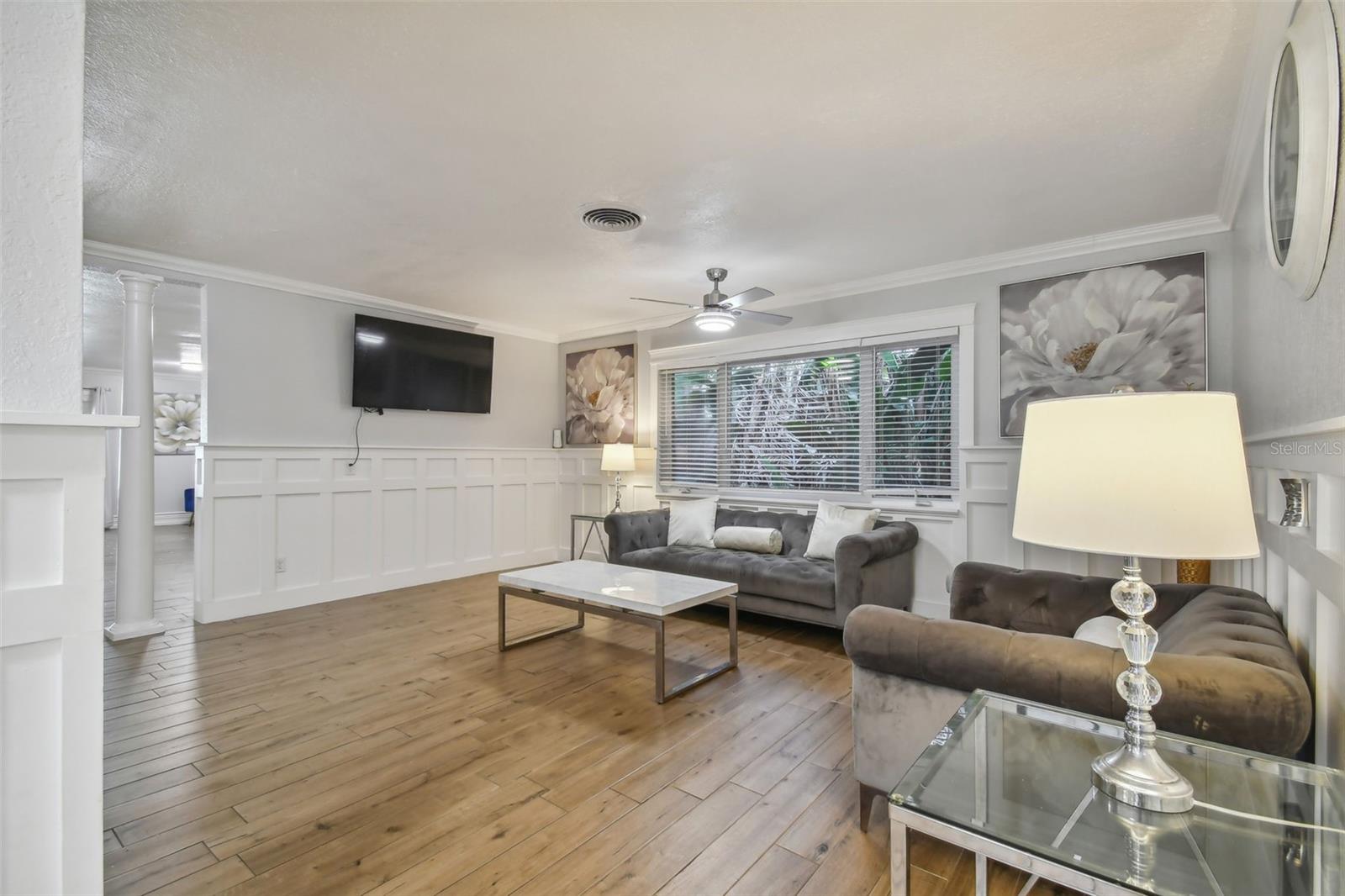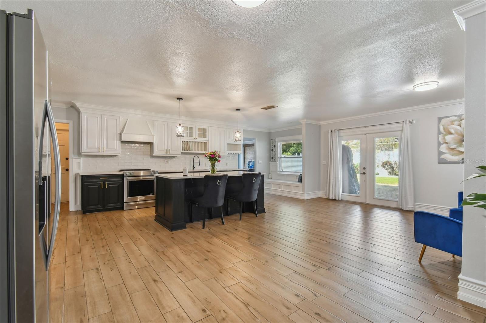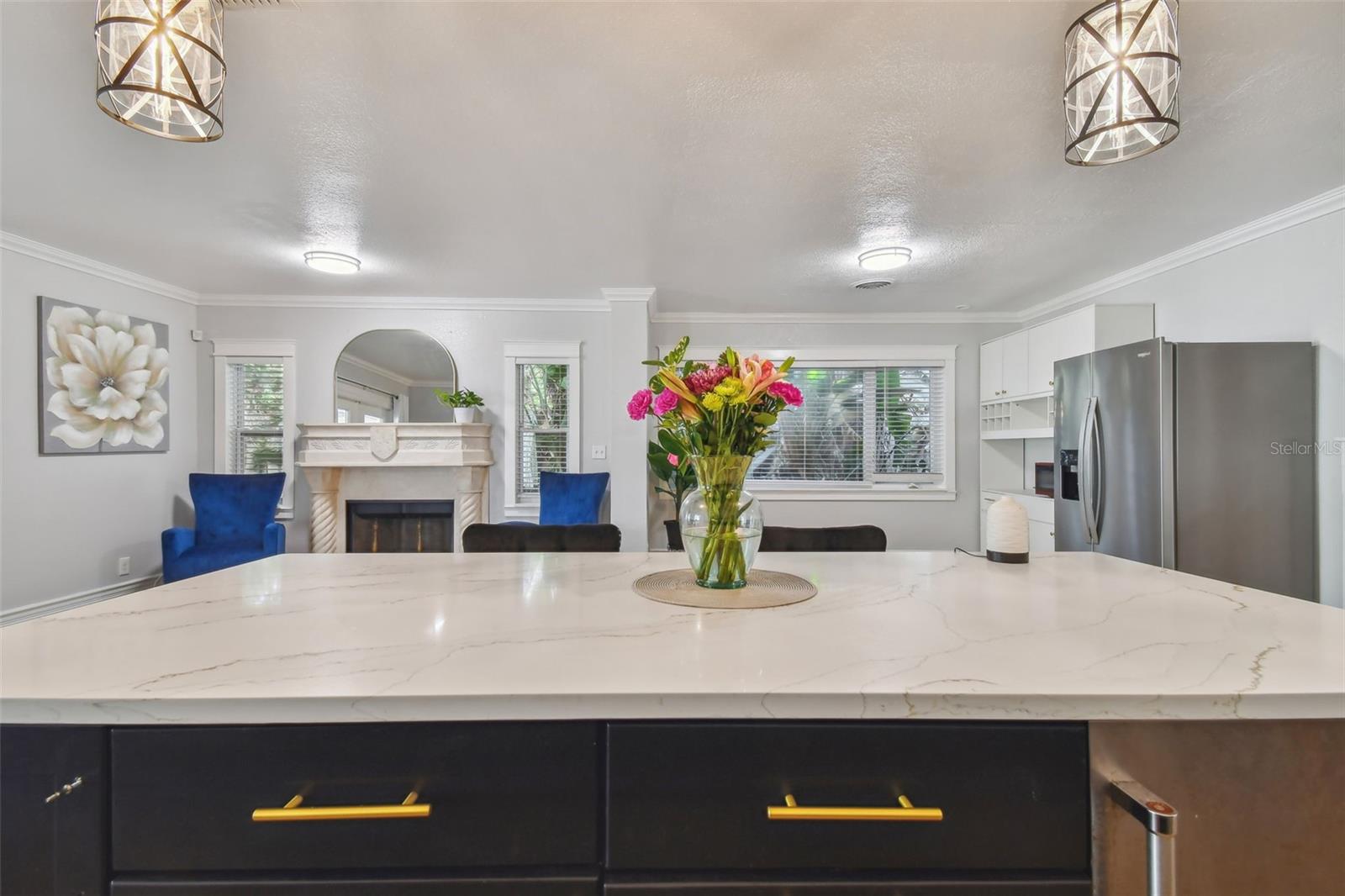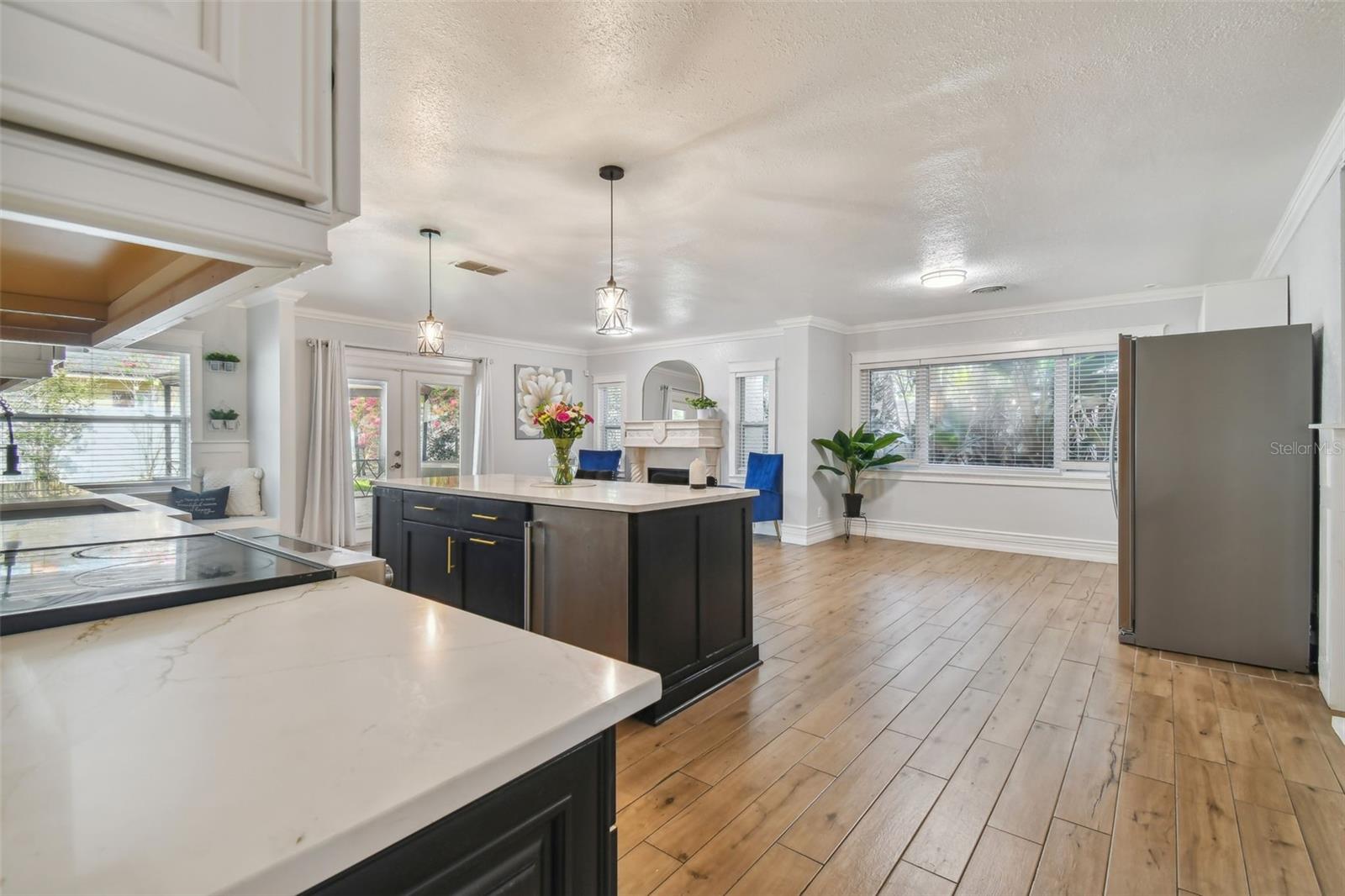 Discover this beautifully updated 3 bedroom, 3 bathroom residence nestled in the sunny locale of St. Pete, FL. Step inside to find a grand foyer adorned with a striking chandelier, leading into a spacious living room. This home seamlessly combines comfort with elegance, boasting recently installed sleek porcelain tile flooring throughout. The heart of the home features a bright and inviting family room and dining area, complete with a cozy wood-burning fireplace and charming built-in window seat. Adjacent to this space is a versatile open area with built-in shelves and a desk, perfect for a home office or study. Culinary enthusiasts will delight in the fully renovated kitchen equipped with exquisite cabinetry, a large central island, and modern built-ins. Double doors open from the kitchen to a beautifully landscaped paver patio, featuring a serene gazebo and an enticing jacuzzi—ideal for relaxation or entertaining guests. Each of the three spacious bedrooms offers ample comfort and style, with the bathrooms having undergone stunning updates. Practical features include solar panels to reduce electricity costs, a brand new HVAC system , and a roof that's been well-maintained for a decade. Enjoy the added financial benefits of no HOA or CDD fees and no flood insurance requirement. Positioned just moments from award-winning beaches, vibrant nightlife, and various attractions, and with easy access to the Skyway Bridge, this home is perfectly placed for enjoying the best of St. Pete’s lifestyle. Make this exquisite house your new home and live your Florida dream in style! PLEASE TAKE NOTE: FLOOD ZONE X (also know as "low risk flood zone")s the area determined to be outside the 500-year flood and protected by levee from 100- year flood.
