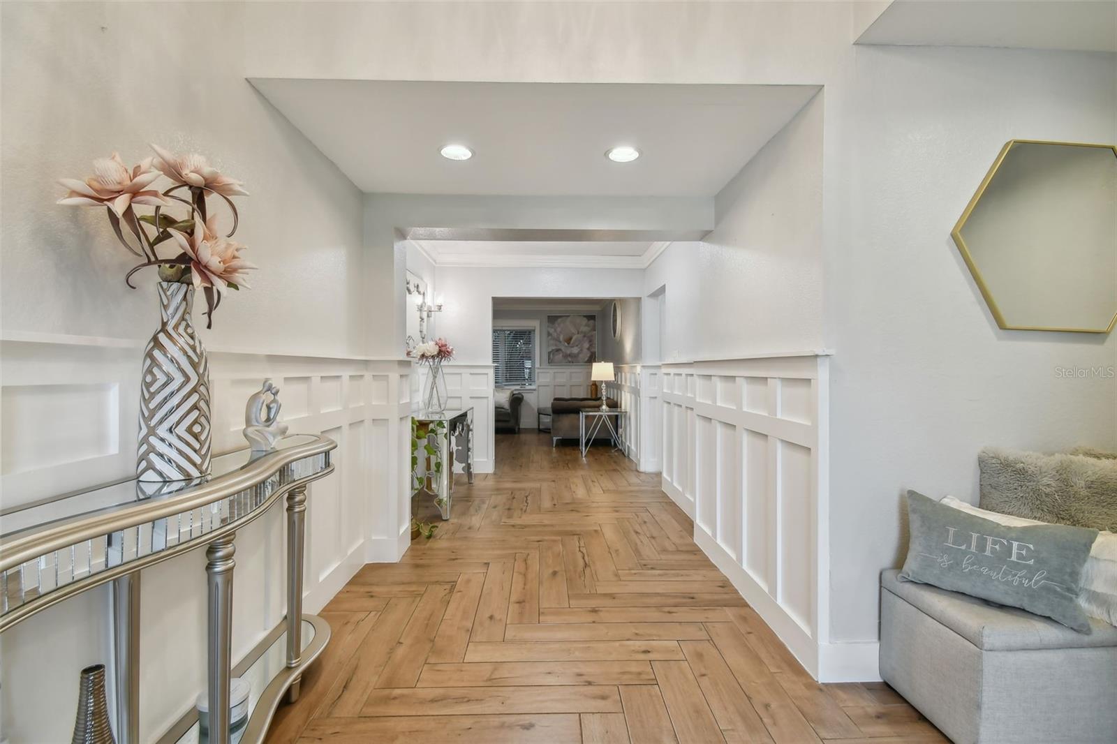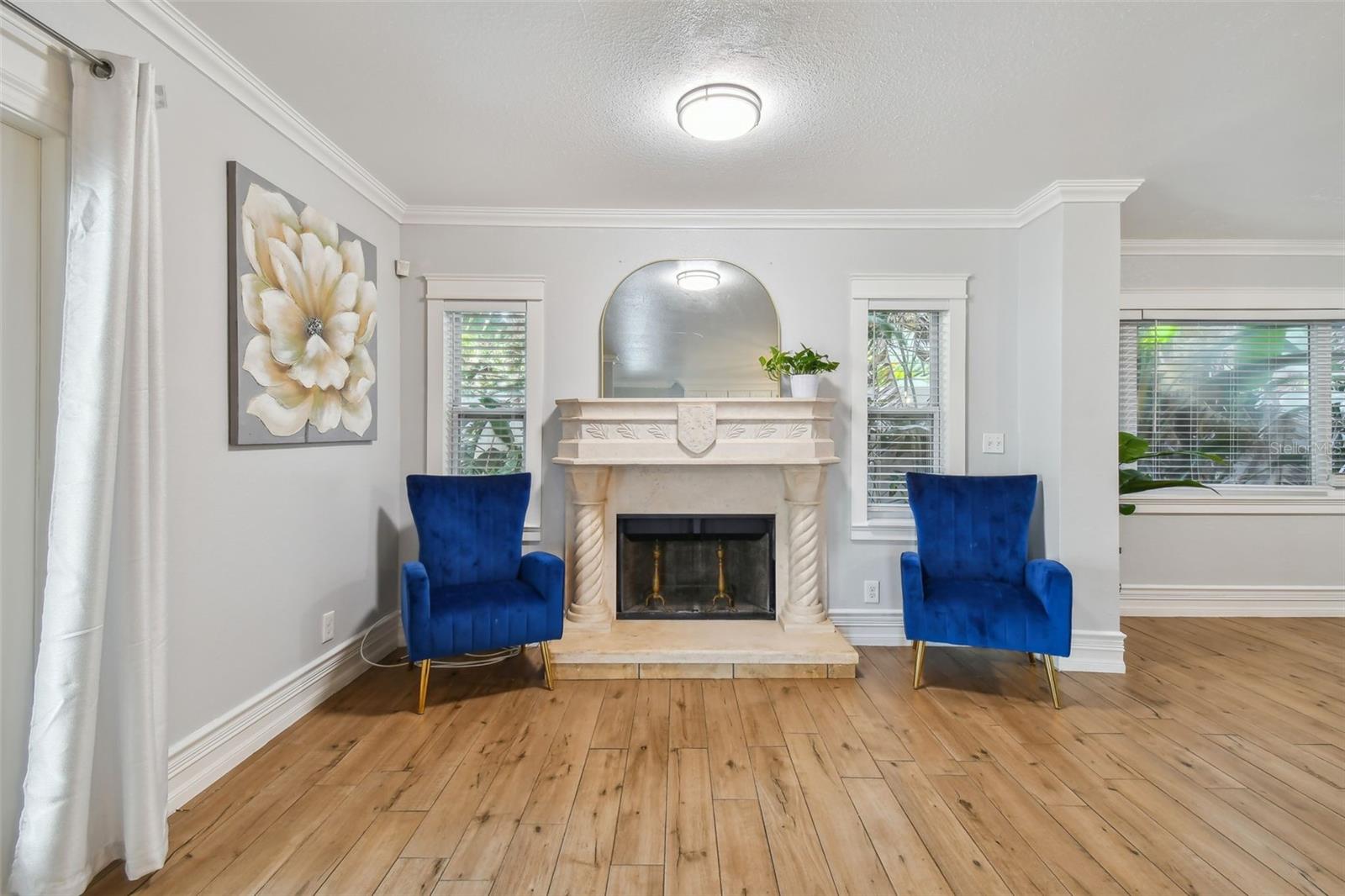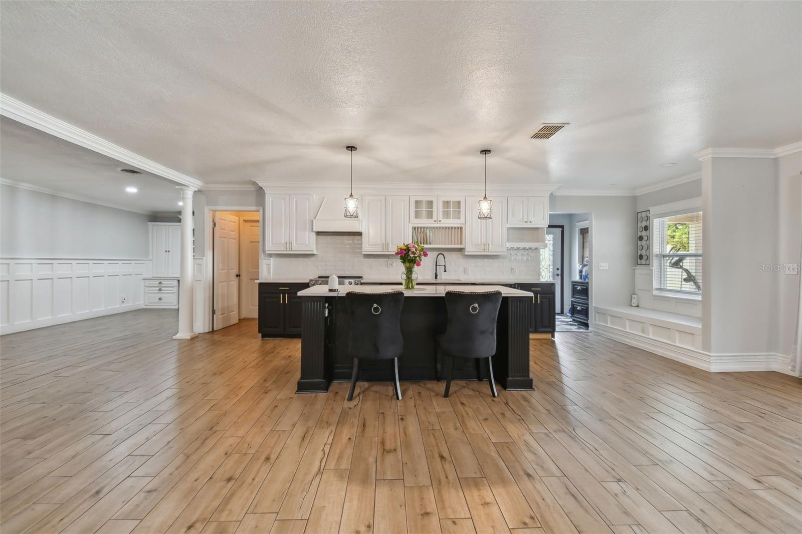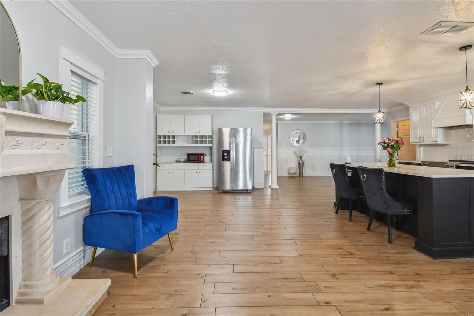 Discover this beautifully updated 3 bedroom, 3 bathroom residence nestled in the sunny locale of St. Pete, FL. Step inside to find a grand foyer adorned with a striking chandelier, leading into a spacious living room. This home seamlessly combines comfort with elegance, boasting recently installed sleek porcelain tile flooring throughout. The heart of the home features a bright and inviting family room and dining area, complete with a cozy wood-burning fireplace and charming built-in window seat. Adjacent to this space is a versatile open area with built-in shelves and a desk, perfect for a home office or study. Culinary enthusiasts will delight in the fully renovated kitchen equipped with exquisite cabinetry, a large central island, and modern built-ins. Double doors open from the kitchen to a beautifully landscaped paver patio, featuring a serene gazebo and an enticing jacuzzi—ideal for relaxation or entertaining guests. Each of the three spacious bedrooms offers ample comfort and style, with the bathrooms having undergone stunning updates. Practical features include solar panels to reduce electricity costs, a brand new HVAC system , and a roof that's been well-maintained for a decade. Enjoy the added financial benefits of no HOA or CDD fees and no flood insurance requirement. Positioned just moments from award-winning beaches, vibrant nightlife, and various attractions, and with easy access to the Skyway Bridge, this home is perfectly placed for enjoying the best of St. Pete’s lifestyle. Make this exquisite house your new home and live your Florida dream in style! PLEASE TAKE NOTE: FLOOD ZONE X (also know as "low risk flood zone")s the area determined to be outside the 500-year flood and protected by levee from 100- year flood.