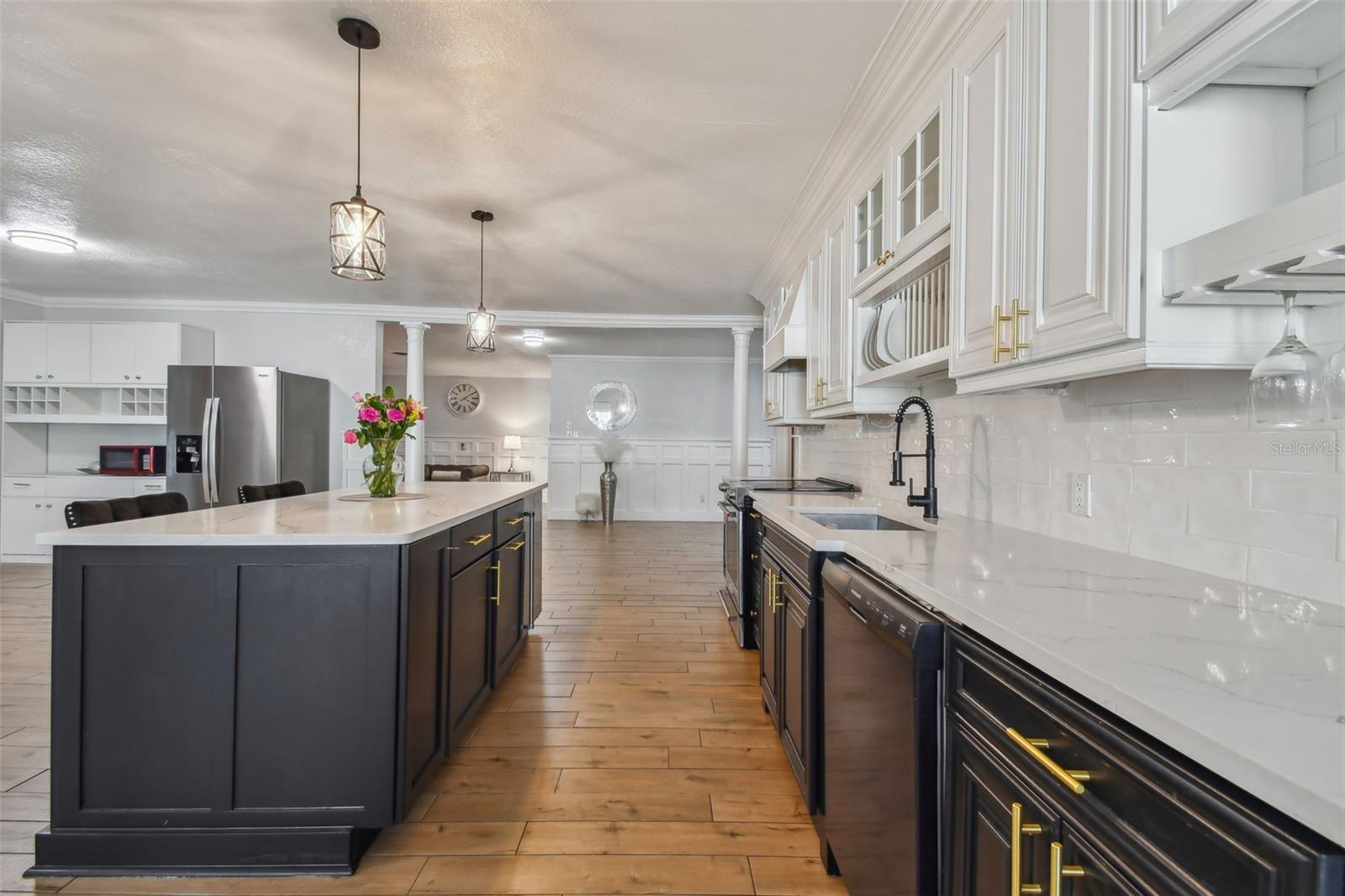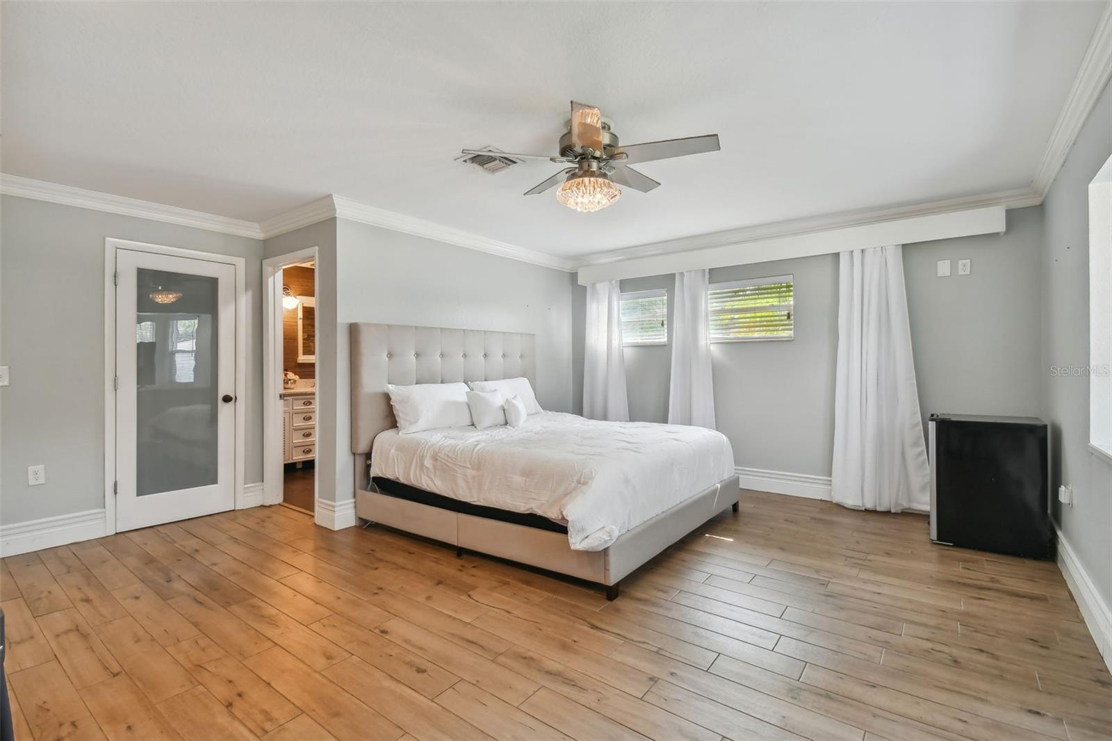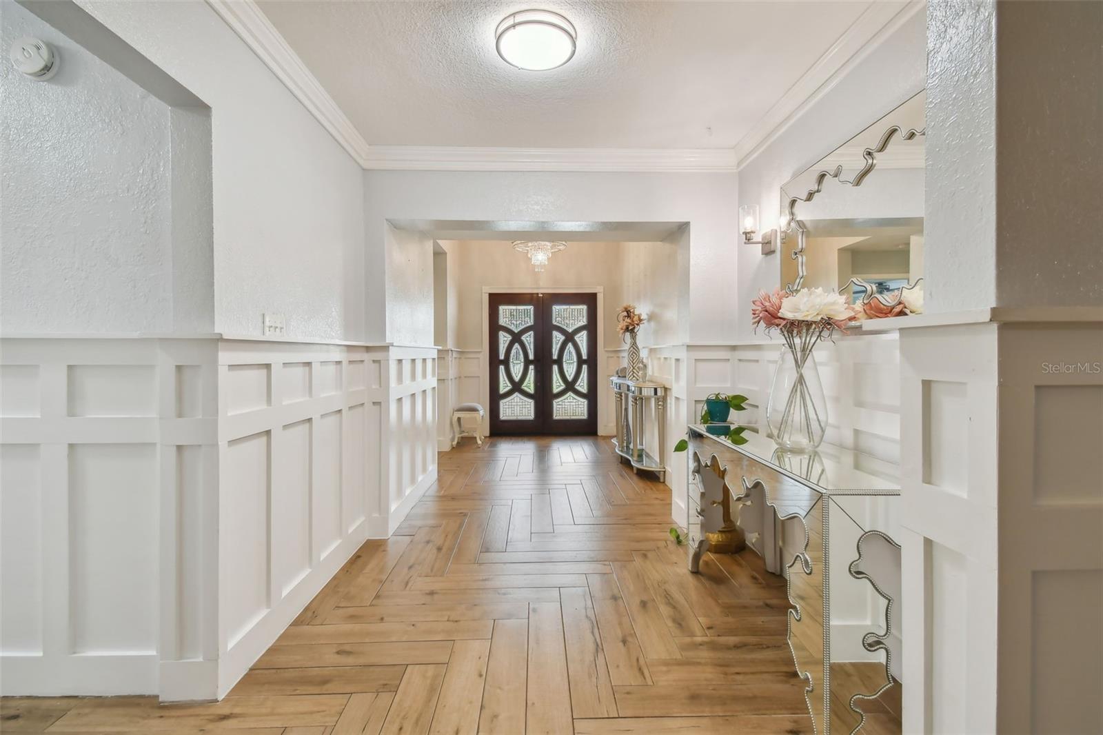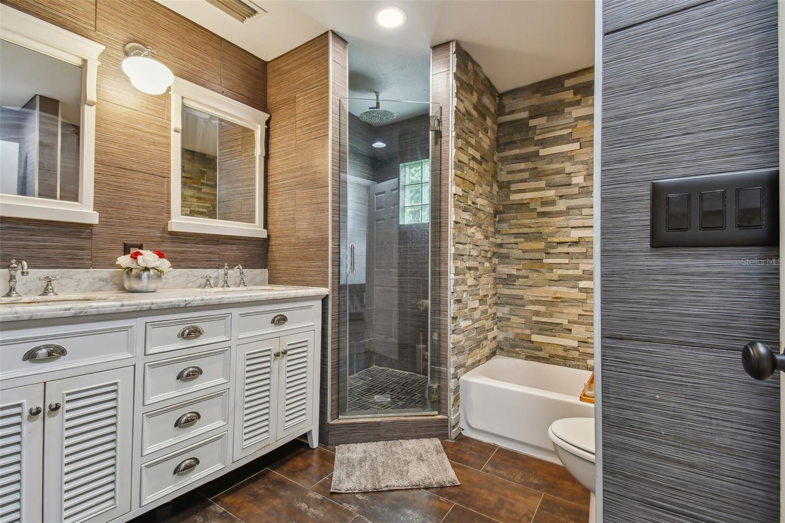 Discover this beautifully updated 3 bedroom, 3 bathroom residence nestled in the sunny locale of St. Pete, FL. Step inside to find a grand foyer adorned with a striking chandelier, leading into a spacious living room. This home seamlessly combines comfort with elegance, boasting recently installed sleek porcelain tile flooring throughout. The heart of the home features a bright and inviting family room and dining area, complete with a cozy wood-burning fireplace and charming built-in window seat. Adjacent to this space is a versatile open area with built-in shelves and a desk, perfect for a home office or study. Culinary enthusiasts will delight in the fully renovated kitchen equipped with exquisite cabinetry, a large central island, and modern built-ins. Double doors open from the kitchen to a beautifully landscaped paver patio, featuring a serene gazebo and an enticing jacuzzi—ideal for relaxation or entertaining guests. Each of the three spacious bedrooms offers ample comfort and style, with the bathrooms having undergone stunning updates. Practical features include solar panels to reduce electricity costs, a brand new HVAC system , and a roof that's been well-maintained for a decade. Enjoy the added financial benefits of no HOA or CDD fees and no flood insurance requirement. Positioned just moments from award-winning beaches, vibrant nightlife, and various attractions, and with easy access to the Skyway Bridge, this home is perfectly placed for enjoying the best of St. Pete’s lifestyle. Make this exquisite house your new home and live your Florida dream in style! PLEASE TAKE NOTE: FLOOD ZONE X (also know as "low risk flood zone")s the area determined to be outside the 500-year flood and protected by levee from 100- year flood.