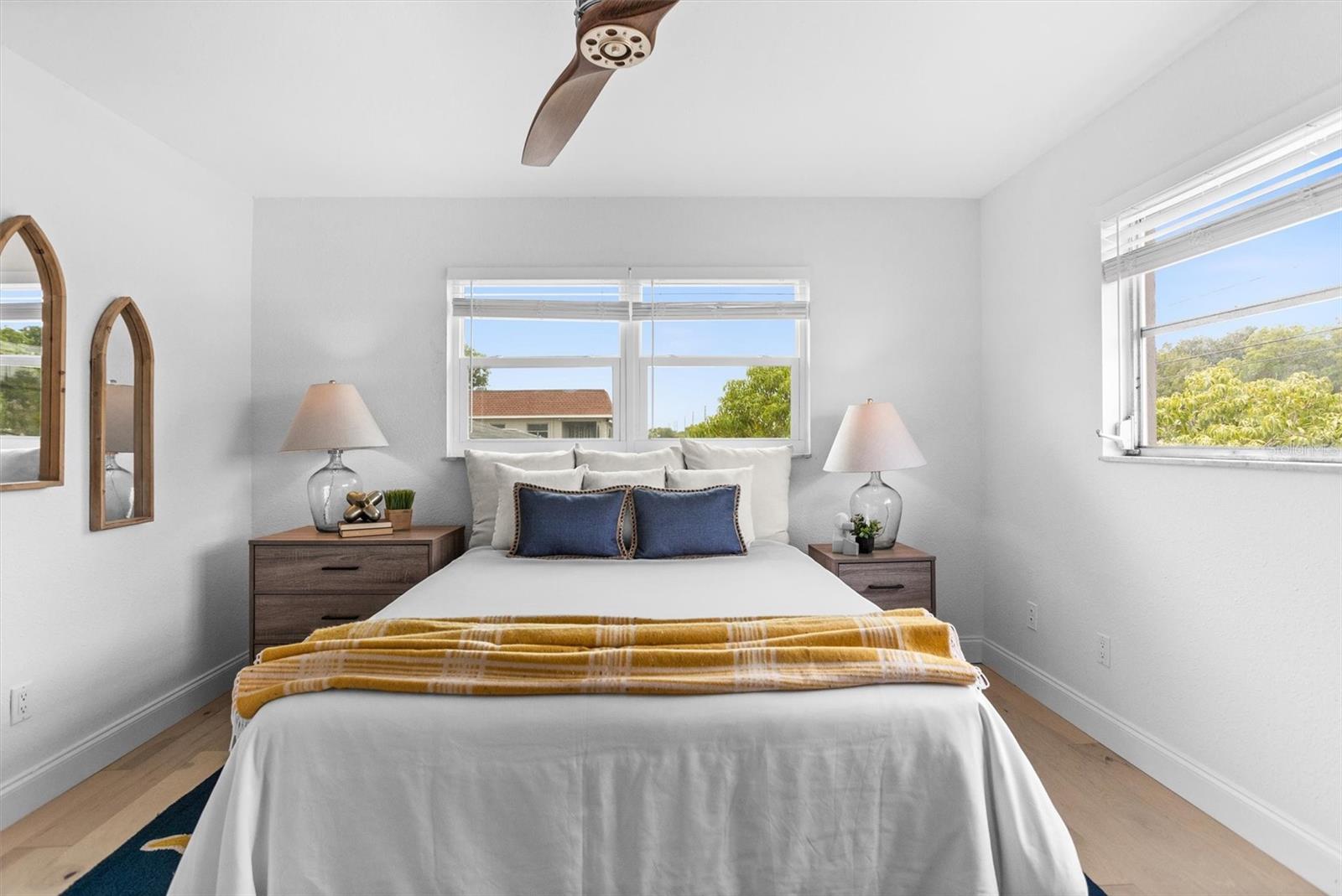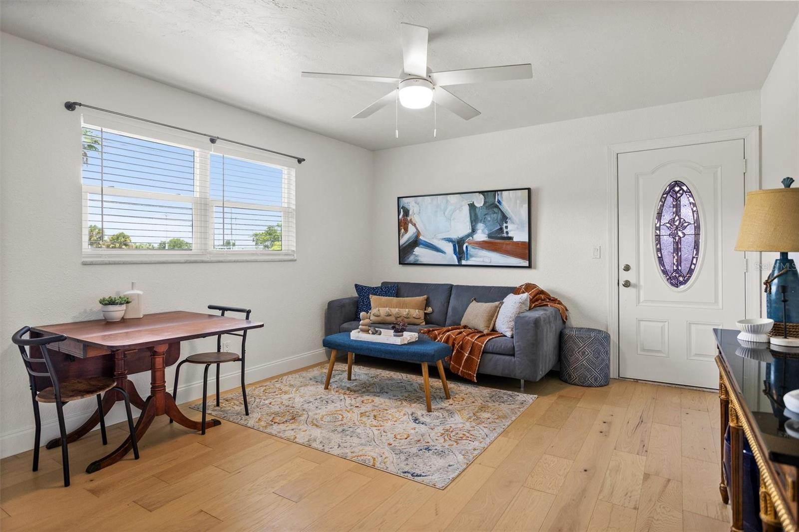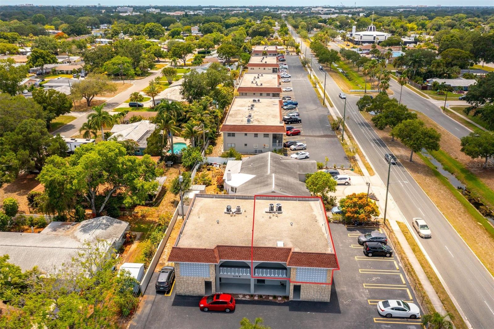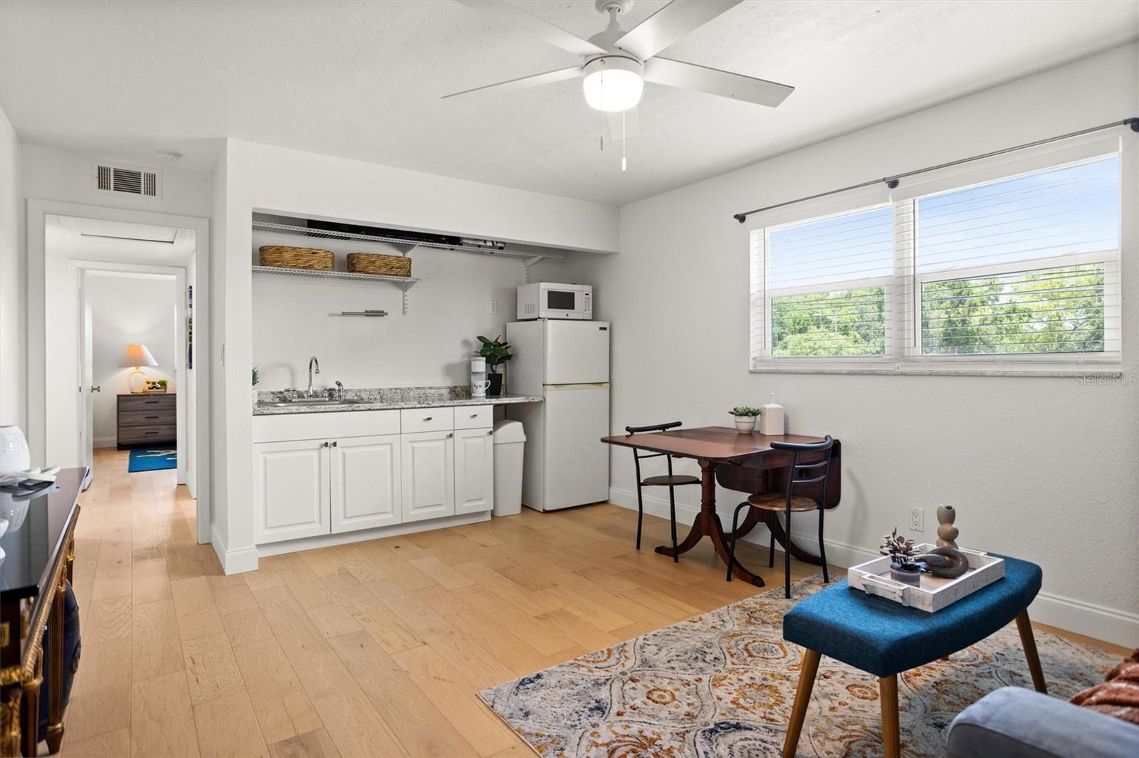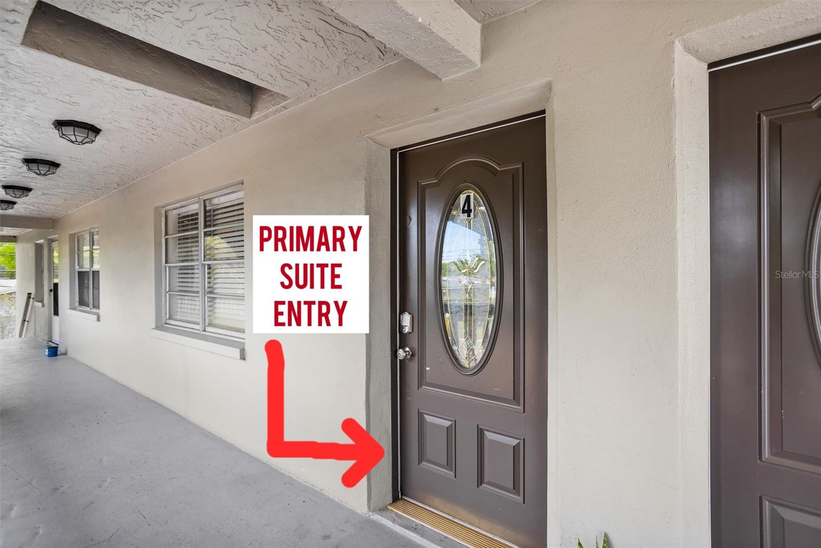 Looking for a duplex!? Or a home with a mother in law suite? Someplace you can own, live, and comfortably cover a portion of your monthly costs? Look no further! Check out this renovated duplex-style 2 bedroom 2 bath CONDO, located minutes from shopping, restaurants, entertainment, the beaches and downtown St Pete! This condo unit is split into two 1 bed 1 bath units, with a primary side and a secondary side - each with their own private entrance. On the primary side, upon entry, the light engineered hardwood floors with the adjustable lighting give the space a light, bright, airy feel - with plenty of space for entertaining, dining, and lounging. The kitchen was completely gut renovated in 2022 with quartz countertops, glass tile backsplash, under cabinet lighting, GE Dual convection oven (2022), Microwave (2022), and most recently a new refrigerator (2024). The primary bedroom also features engineered hardwood floors, adjustable lighting, and an Elfa Closet System (2022) built into the primary closet. The En-Suite is perfect for your needs with a step in shower and tile throughout for easy clean up and maintenance. On the secondary side, as soon as you step in it feels like home. The main living space features a kitchenette with fridge, microwave and space for an induction hot plate and lots of storage. The new impact glass windows look out onto the park and make the space so quiet! The secondary bedroom features engineered hardwood floors and a large closet space that can be used as a traditional closet or an office alcove! There is a laundry room in the building and 1 assigned, semi-private parking spot. Rent out one side of the unit or live in both - door separating units could have knob switched out for a deadbolt or take off the door entirely - the possibilities are endless. The list of improvements is impressive - New HVAC (2023), new hot water heater (2024), new and enlarged electrical panel (2024), plus impact glass windows installed in 2023 and 2024 with only 3 windows remaining to qualify for insurance discounts! New toilets and faucets were installed in 2022 in both bathrooms and both bathrooms were recently repainted (2024). The entire condo was repainted in 2022 along with new flooring installed in 2022 and the secondary side was repainted again in 2024. Door separating sides was installed in 2024. Rental 1/1 currently rented for $1450/month. Owner lives in non-rented half. Schedule your viewing today before it gets snapped up!!