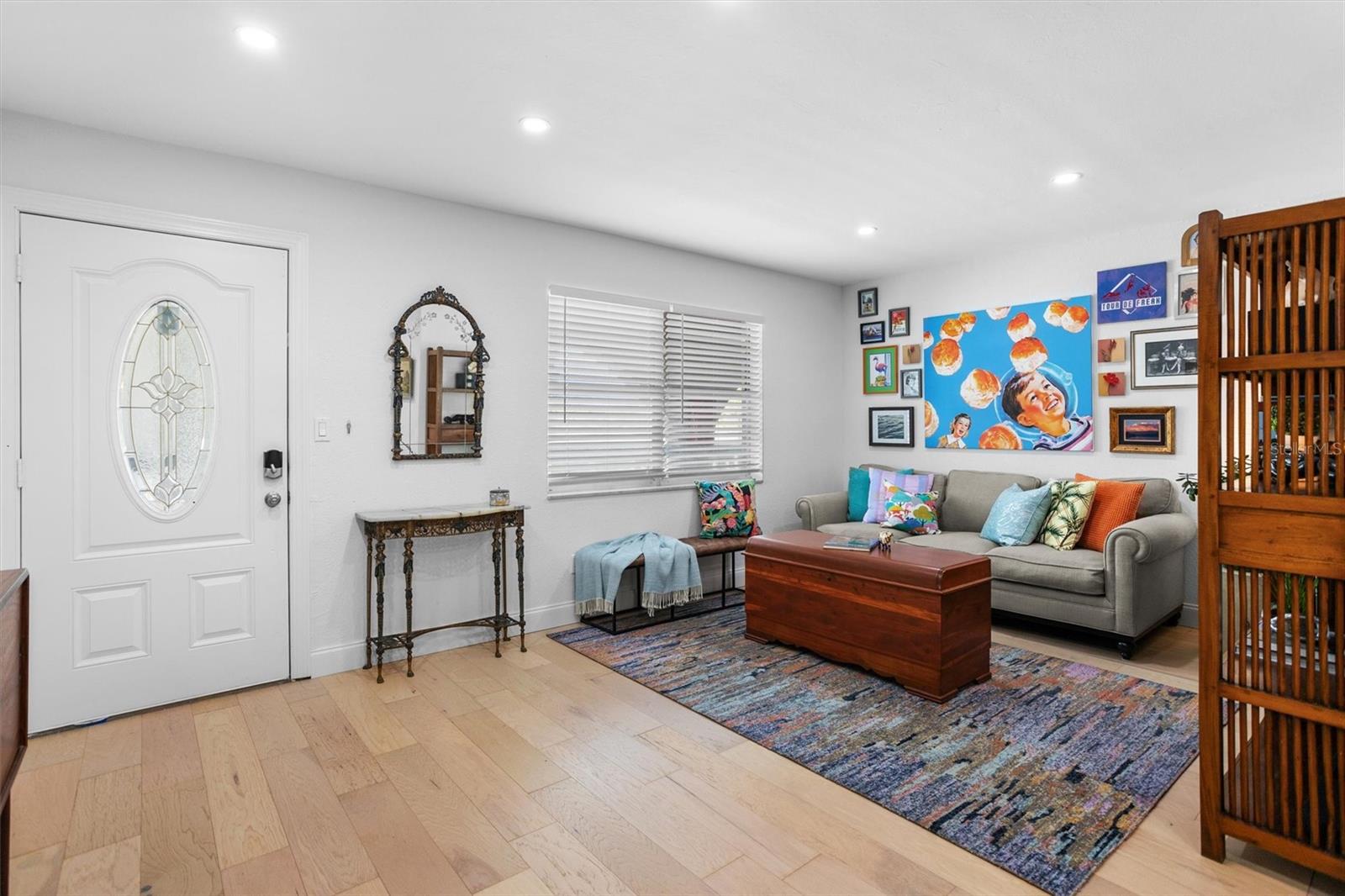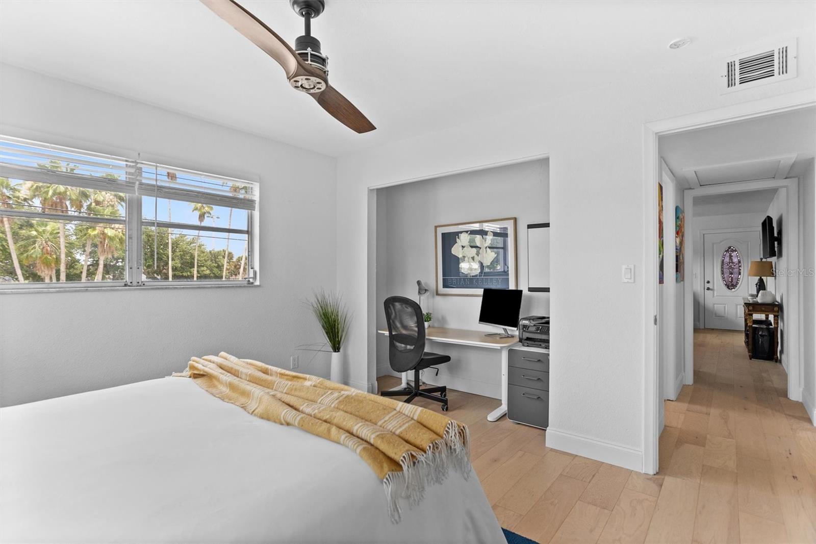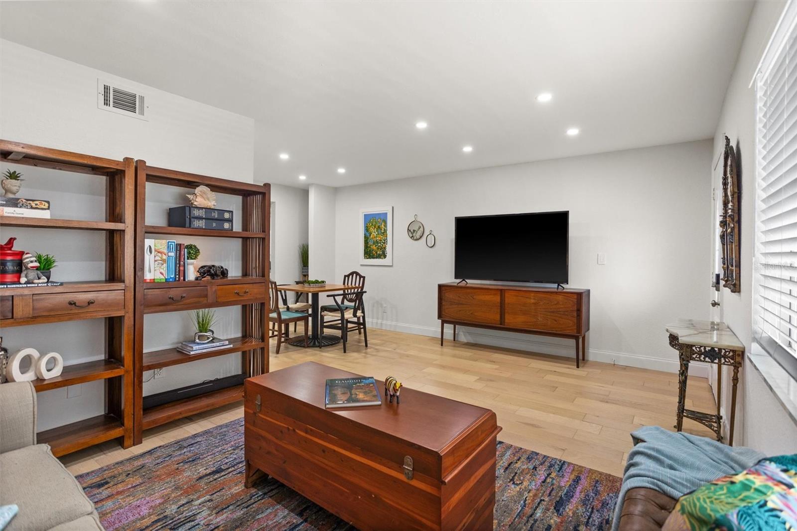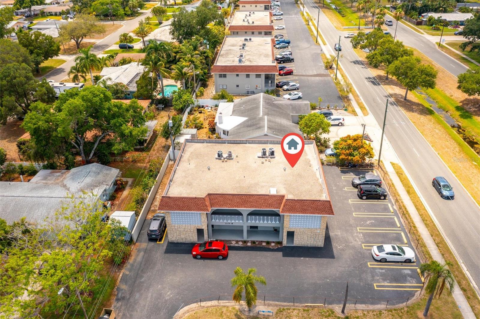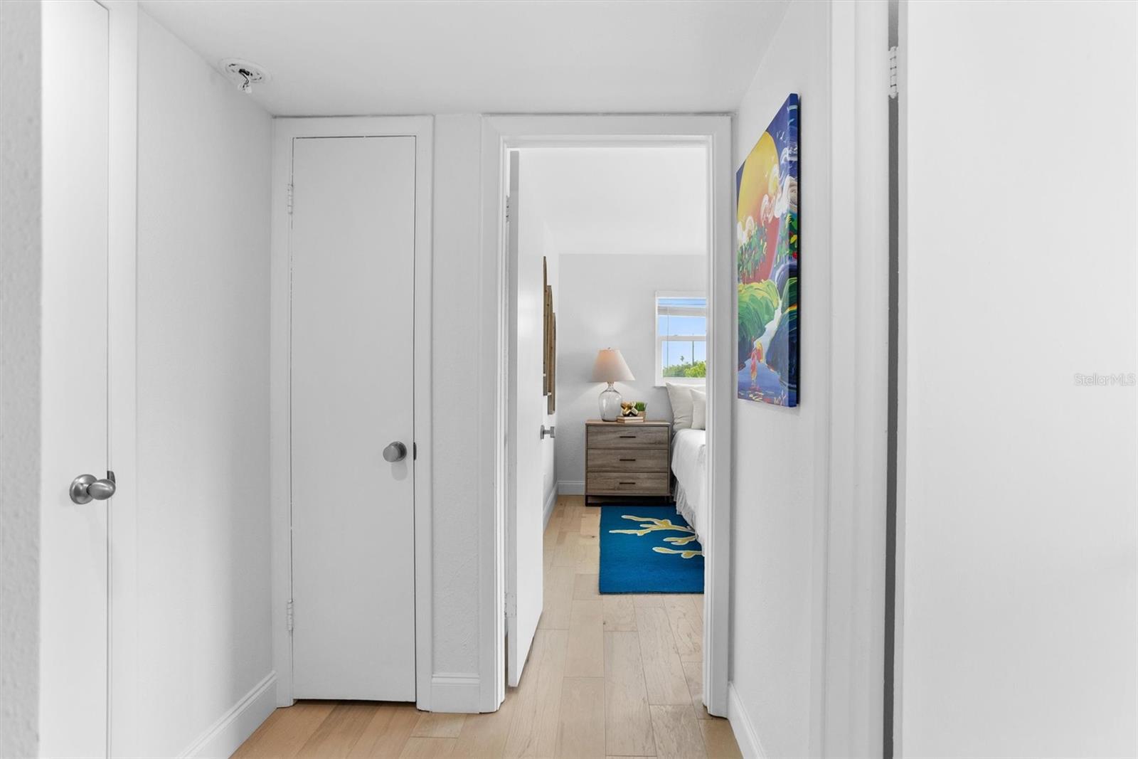 Looking for a duplex!? Or a home with a mother in law suite? Someplace you can own, live, and comfortably cover a portion of your monthly costs? Look no further! Check out this renovated duplex-style 2 bedroom 2 bath CONDO, located minutes from shopping, restaurants, entertainment, the beaches and downtown St Pete! This condo unit is split into two 1 bed 1 bath units, with a primary side and a secondary side - each with their own private entrance. On the primary side, upon entry, the light engineered hardwood floors with the adjustable lighting give the space a light, bright, airy feel - with plenty of space for entertaining, dining, and lounging. The kitchen was completely gut renovated in 2022 with quartz countertops, glass tile backsplash, under cabinet lighting, GE Dual convection oven (2022), Microwave (2022), and most recently a new refrigerator (2024). The primary bedroom also features engineered hardwood floors, adjustable lighting, and an Elfa Closet System (2022) built into the primary closet. The En-Suite is perfect for your needs with a step in shower and tile throughout for easy clean up and maintenance. On the secondary side, as soon as you step in it feels like home. The main living space features a kitchenette with fridge, microwave and space for an induction hot plate and lots of storage. The new impact glass windows look out onto the park and make the space so quiet! The secondary bedroom features engineered hardwood floors and a large closet space that can be used as a traditional closet or an office alcove! There is a laundry room in the building and 1 assigned, semi-private parking spot. Rent out one side of the unit or live in both - door separating units could have knob switched out for a deadbolt or take off the door entirely - the possibilities are endless. The list of improvements is impressive - New HVAC (2023), new hot water heater (2024), new and enlarged electrical panel (2024), plus impact glass windows installed in 2023 and 2024 with only 3 windows remaining to qualify for insurance discounts! New toilets and faucets were installed in 2022 in both bathrooms and both bathrooms were recently repainted (2024). The entire condo was repainted in 2022 along with new flooring installed in 2022 and the secondary side was repainted again in 2024. Door separating sides was installed in 2024. Rental 1/1 currently rented for $1450/month. Owner lives in non-rented half. Schedule your viewing today before it gets snapped up!!