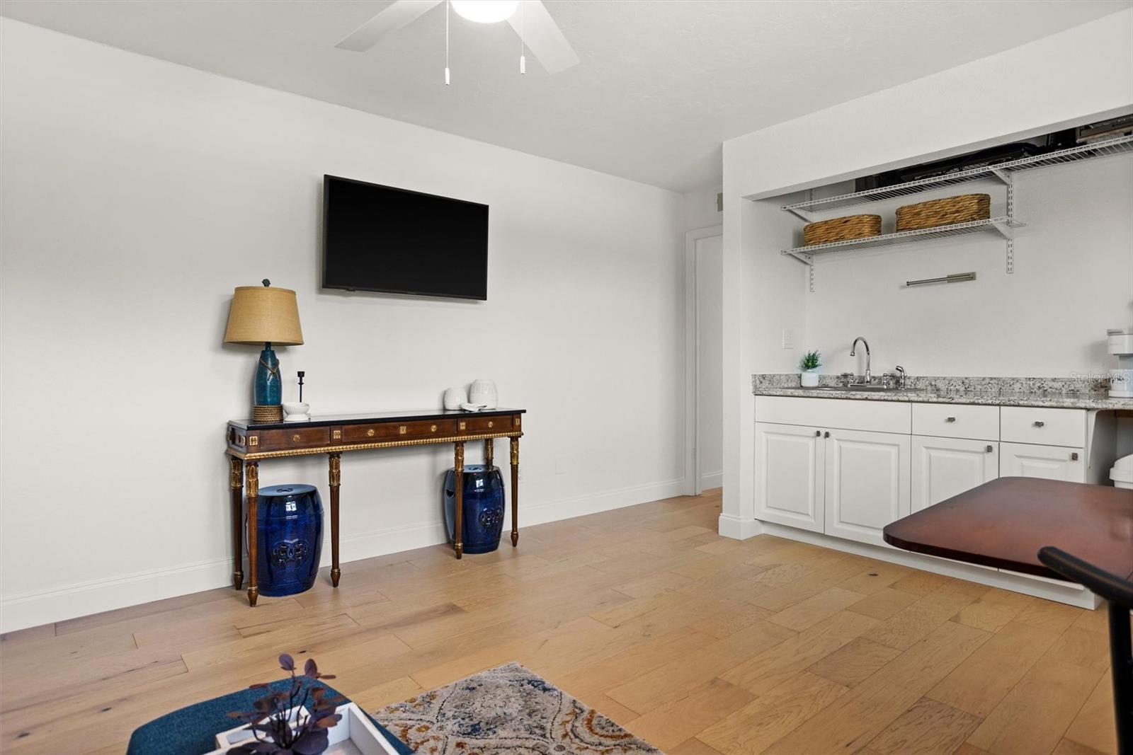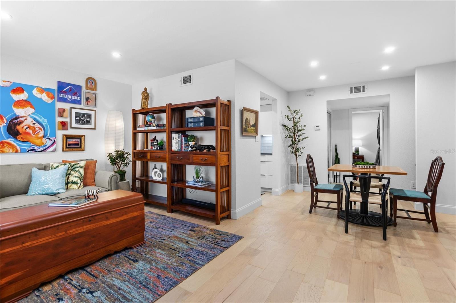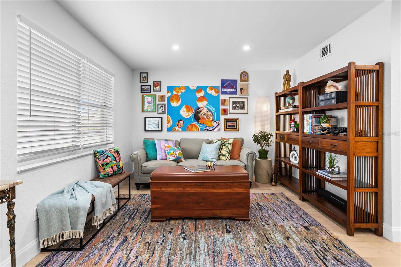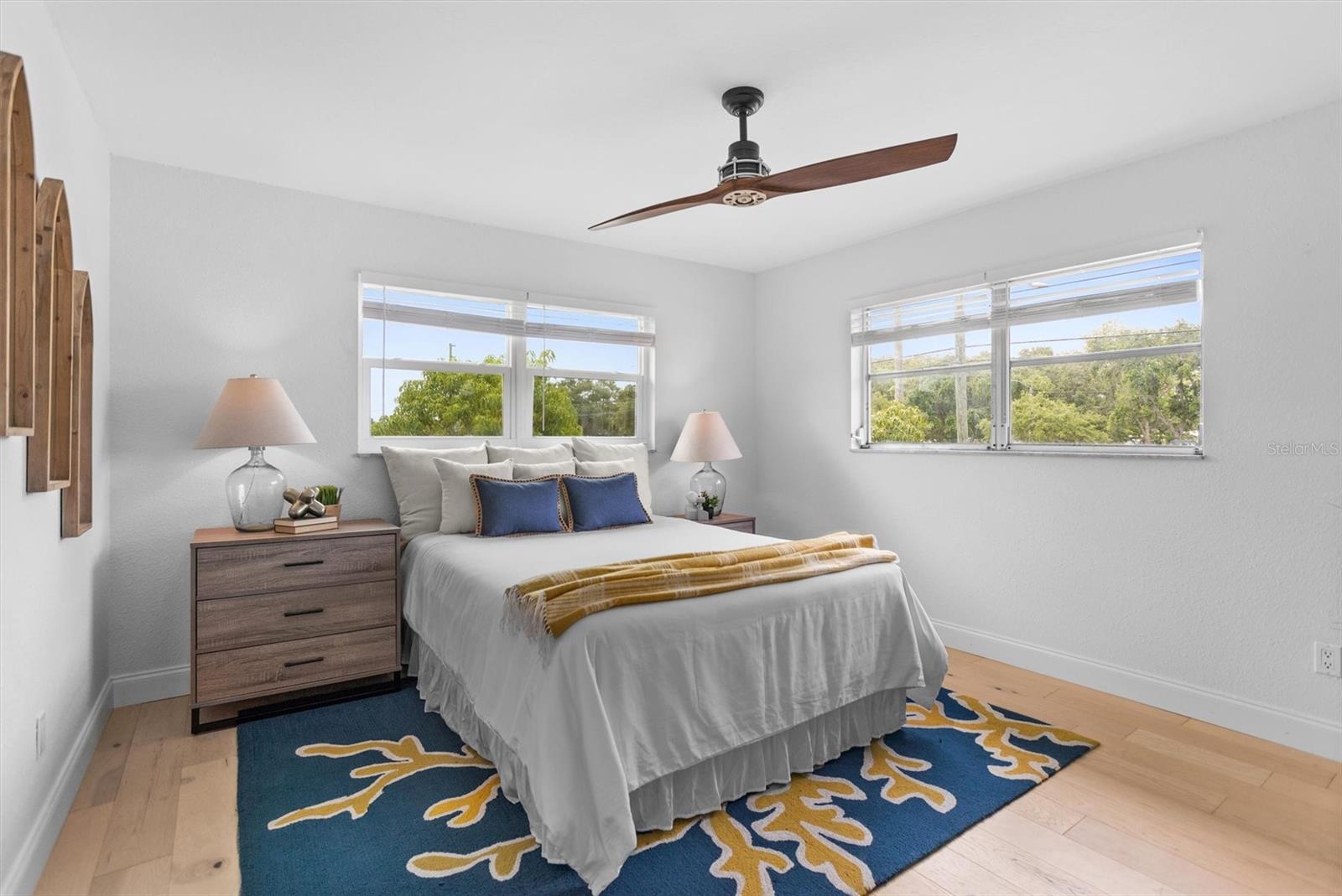 Looking for a duplex!? Or a home with a mother in law suite? Someplace you can own, live, and comfortably cover a portion of your monthly costs? Look no further! Check out this renovated duplex-style 2 bedroom 2 bath CONDO, located minutes from shopping, restaurants, entertainment, the beaches and downtown St Pete! This condo unit is split into two 1 bed 1 bath units, with a primary side and a secondary side - each with their own private entrance. On the primary side, upon entry, the light engineered hardwood floors with the adjustable lighting give the space a light, bright, airy feel - with plenty of space for entertaining, dining, and lounging. The kitchen was completely gut renovated in 2022 with quartz countertops, glass tile backsplash, under cabinet lighting, GE Dual convection oven (2022), Microwave (2022), and most recently a new refrigerator (2024). The primary bedroom also features engineered hardwood floors, adjustable lighting, and an Elfa Closet System (2022) built into the primary closet. The En-Suite is perfect for your needs with a step in shower and tile throughout for easy clean up and maintenance. On the secondary side, as soon as you step in it feels like home. The main living space features a kitchenette with fridge, microwave and space for an induction hot plate and lots of storage. The new impact glass windows look out onto the park and make the space so quiet! The secondary bedroom features engineered hardwood floors and a large closet space that can be used as a traditional closet or an office alcove! There is a laundry room in the building and 1 assigned, semi-private parking spot. Rent out one side of the unit or live in both - door separating units could have knob switched out for a deadbolt or take off the door entirely - the possibilities are endless. The list of improvements is impressive - New HVAC (2023), new hot water heater (2024), new and enlarged electrical panel (2024), plus impact glass windows installed in 2023 and 2024 with only 3 windows remaining to qualify for insurance discounts! New toilets and faucets were installed in 2022 in both bathrooms and both bathrooms were recently repainted (2024). The entire condo was repainted in 2022 along with new flooring installed in 2022 and the secondary side was repainted again in 2024. Door separating sides was installed in 2024. Rental 1/1 currently rented for $1450/month. Owner lives in non-rented half. Schedule your viewing today before it gets snapped up!!