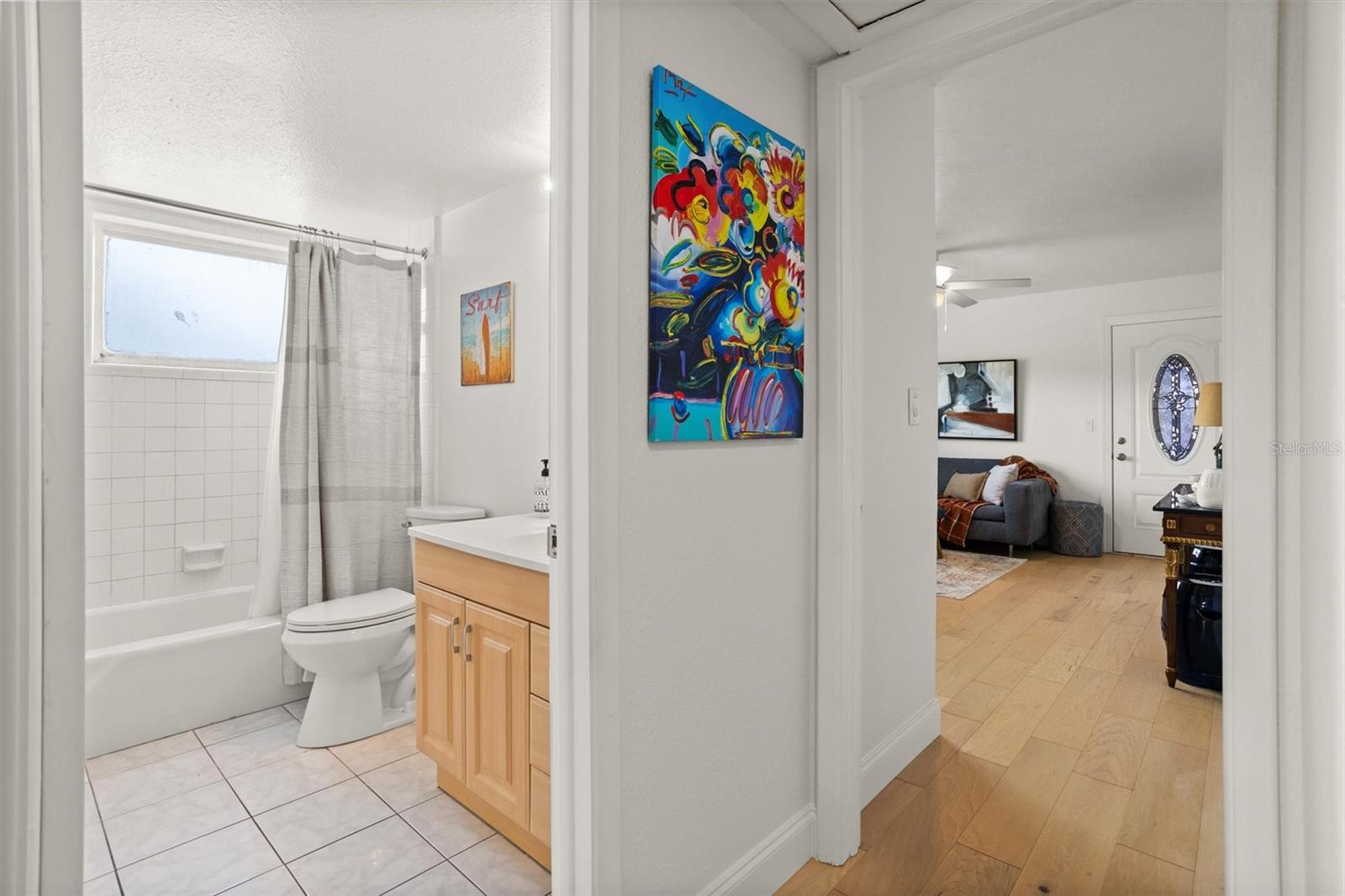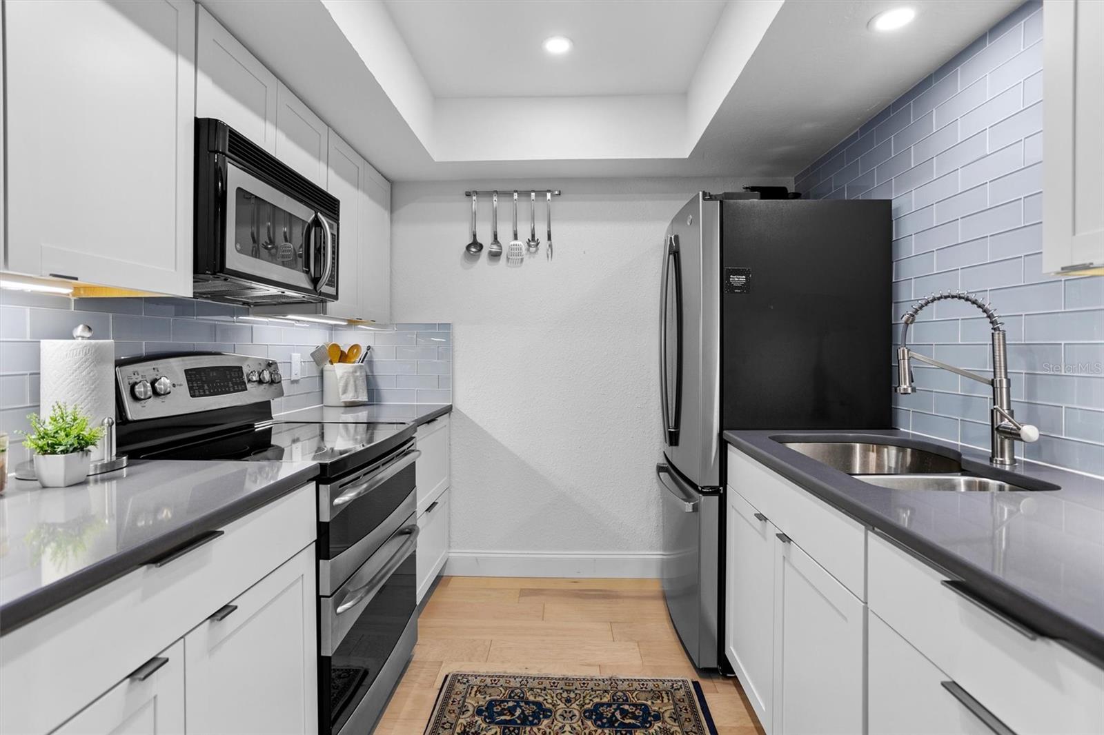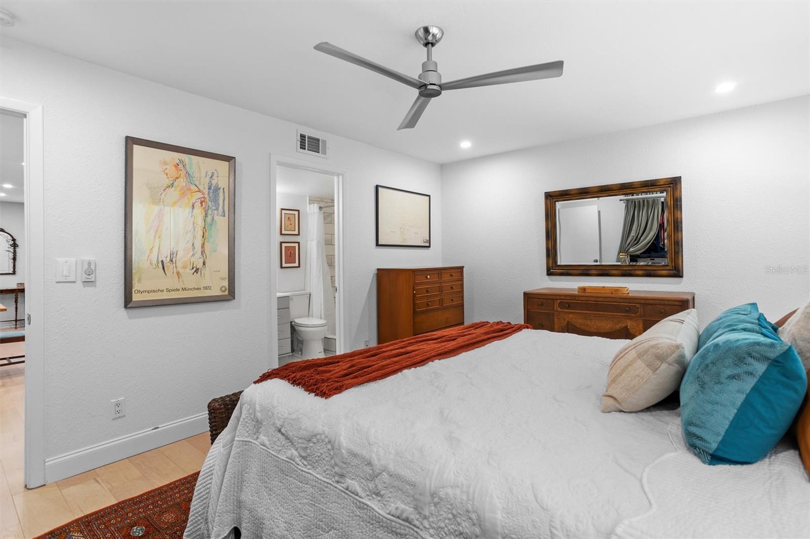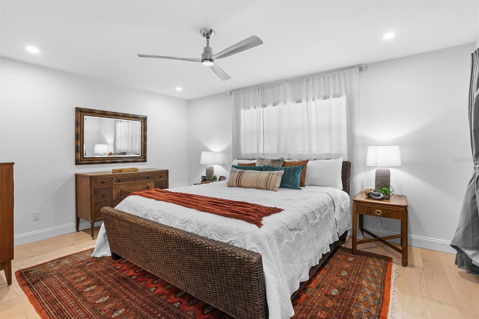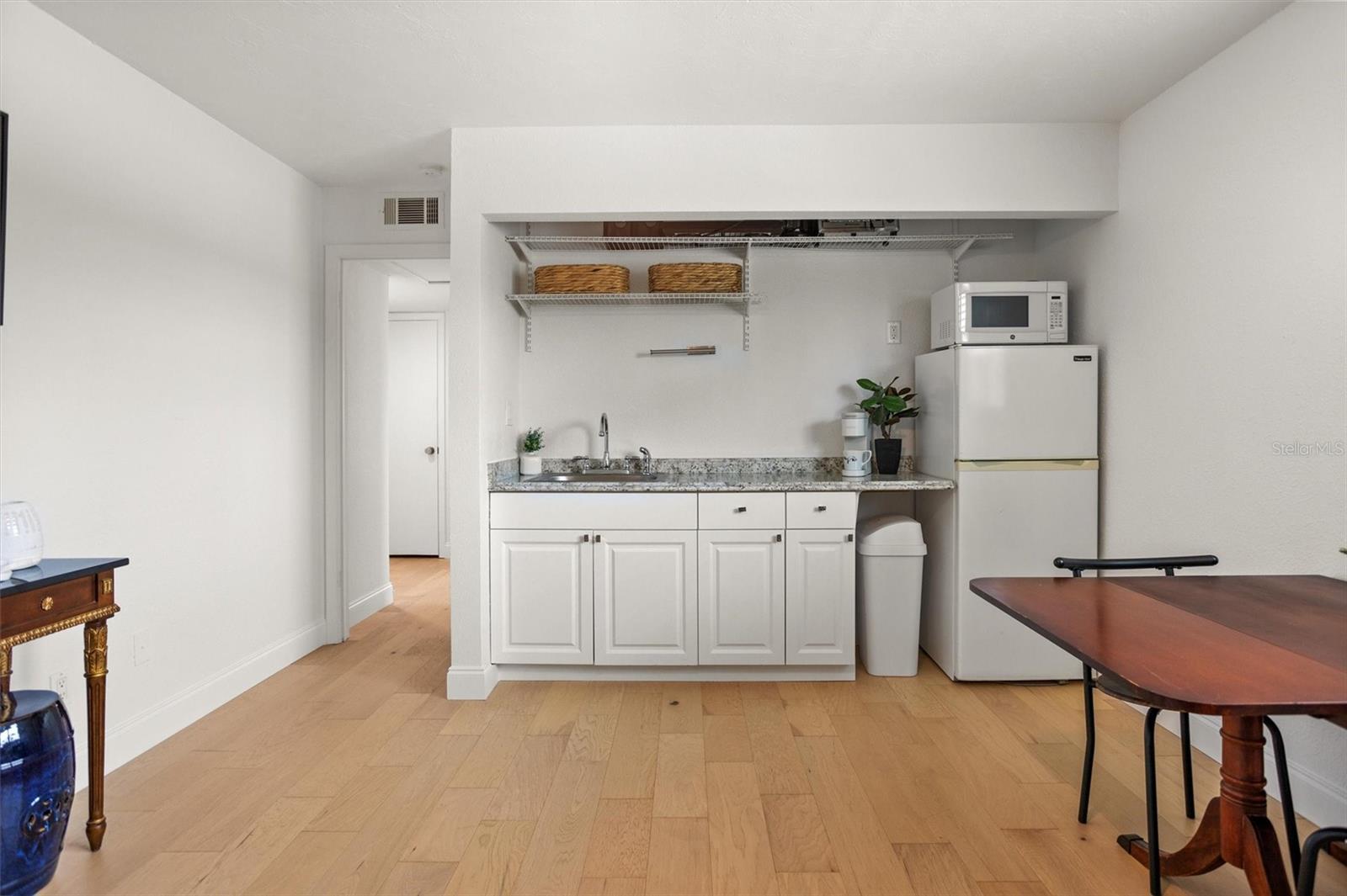Looking for a duplex!? Or a home with a mother in law suite? Someplace you can own, live, and comfortably cover a portion of your monthly costs? Look no further! Check out this renovated duplex-style 2 bedroom 2 bath CONDO, located minutes from shopping, restaurants, entertainment, the beaches and downtown St Pete! This condo unit is split into two 1 bed 1 bath units, with a primary side and a secondary side - each with their own private entrance. On the primary side, upon entry, the light engineered hardwood floors with the adjustable lighting give the space a light, bright, airy feel - with plenty of space for entertaining, dining, and lounging. The kitchen was completely gut renovated in 2022 with quartz countertops, glass tile backsplash, under cabinet lighting, GE Dual convection oven (2022), Microwave (2022), and most recently a new refrigerator (2024). The primary bedroom also features engineered hardwood floors, adjustable lighting, and an Elfa Closet System (2022) built into the primary closet. The En-Suite is perfect for your needs with a step in shower and tile throughout for easy clean up and maintenance. On the secondary side, as soon as you step in it feels like home. The main living space features a kitchenette with fridge, microwave and space for an induction hot plate and lots of storage. The new impact glass windows look out onto the park and make the space so quiet! The secondary bedroom features engineered hardwood floors and a large closet space that can be used as a traditional closet or an office alcove! There is a laundry room in the building and 1 assigned, semi-private parking spot. Rent out one side of the unit or live in both - door separating units could have knob switched out for a deadbolt or take off the door entirely - the possibilities are endless. The list of improvements is impressive - New HVAC (2023), new hot water heater (2024), new and enlarged electrical panel (2024), plus impact glass windows installed in 2023 and 2024 with only 3 windows remaining to qualify for insurance discounts! New toilets and faucets were installed in 2022 in both bathrooms and both bathrooms were recently repainted (2024). The entire condo was repainted in 2022 along with new flooring installed in 2022 and the secondary side was repainted again in 2024. Door separating sides was installed in 2024. Rental 1/1 currently rented for $1450/month. Owner lives in non-rented half. Schedule your viewing today before it gets snapped up!!