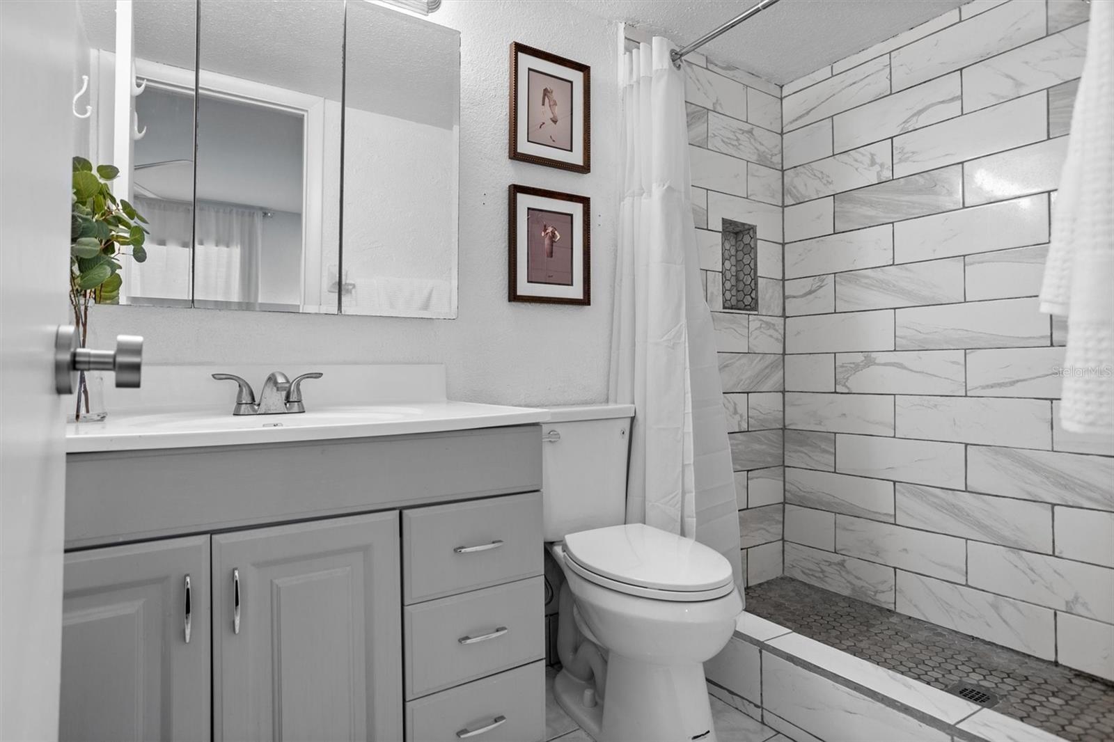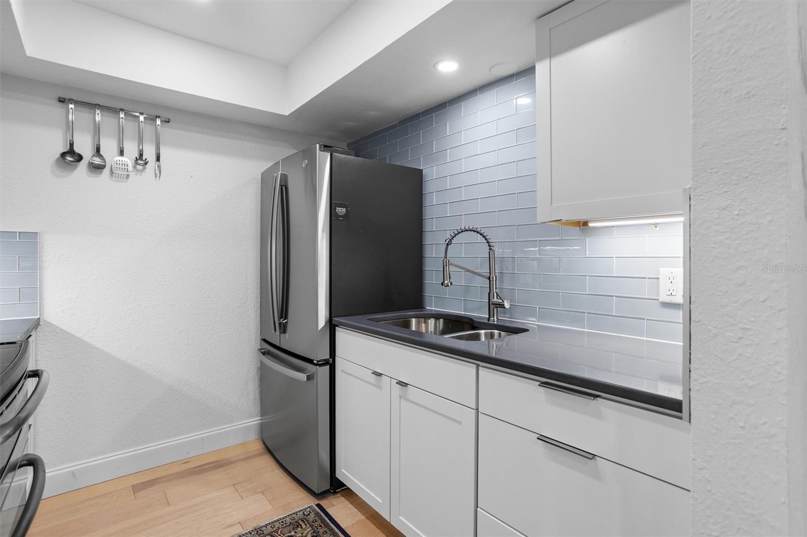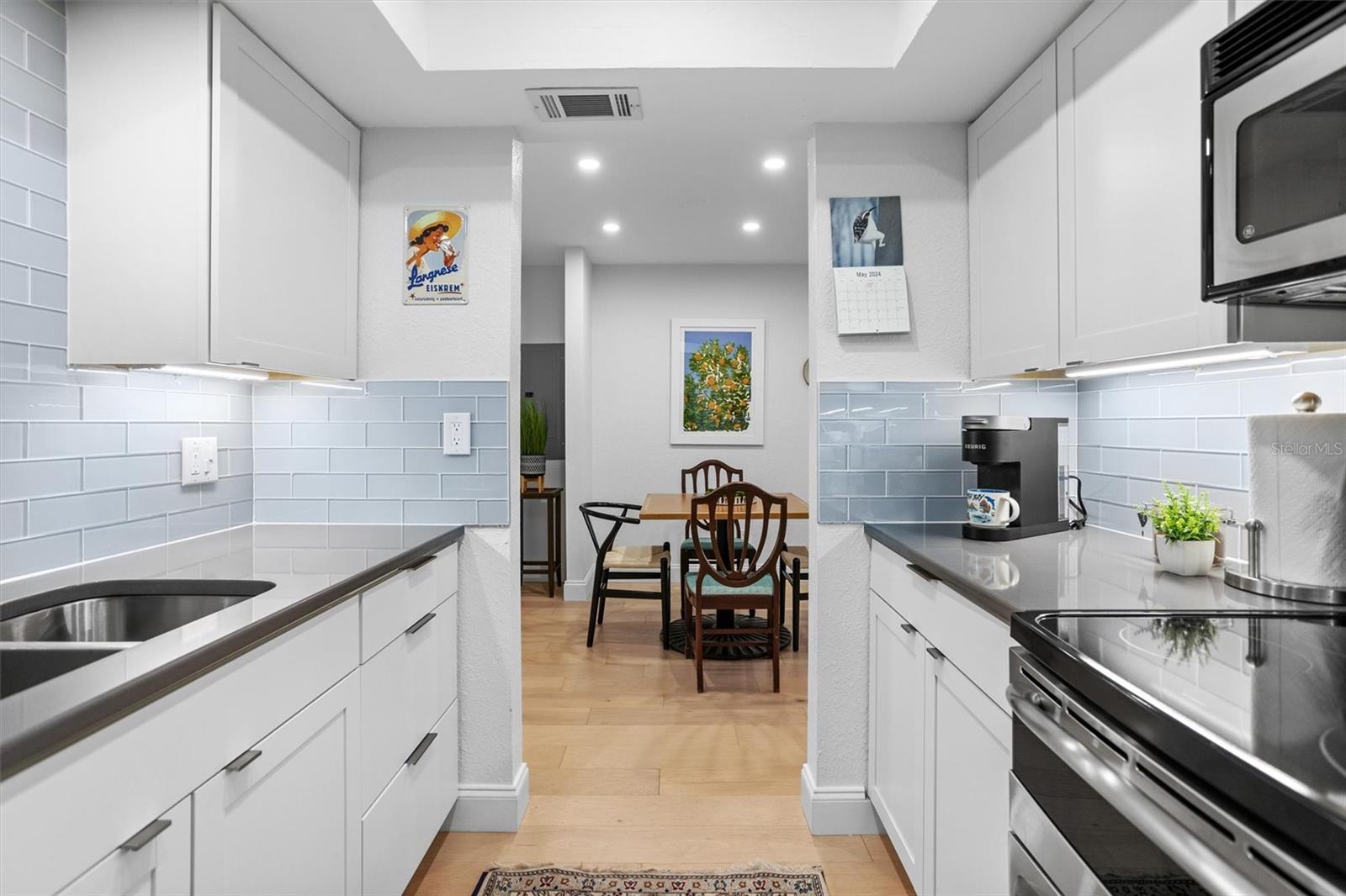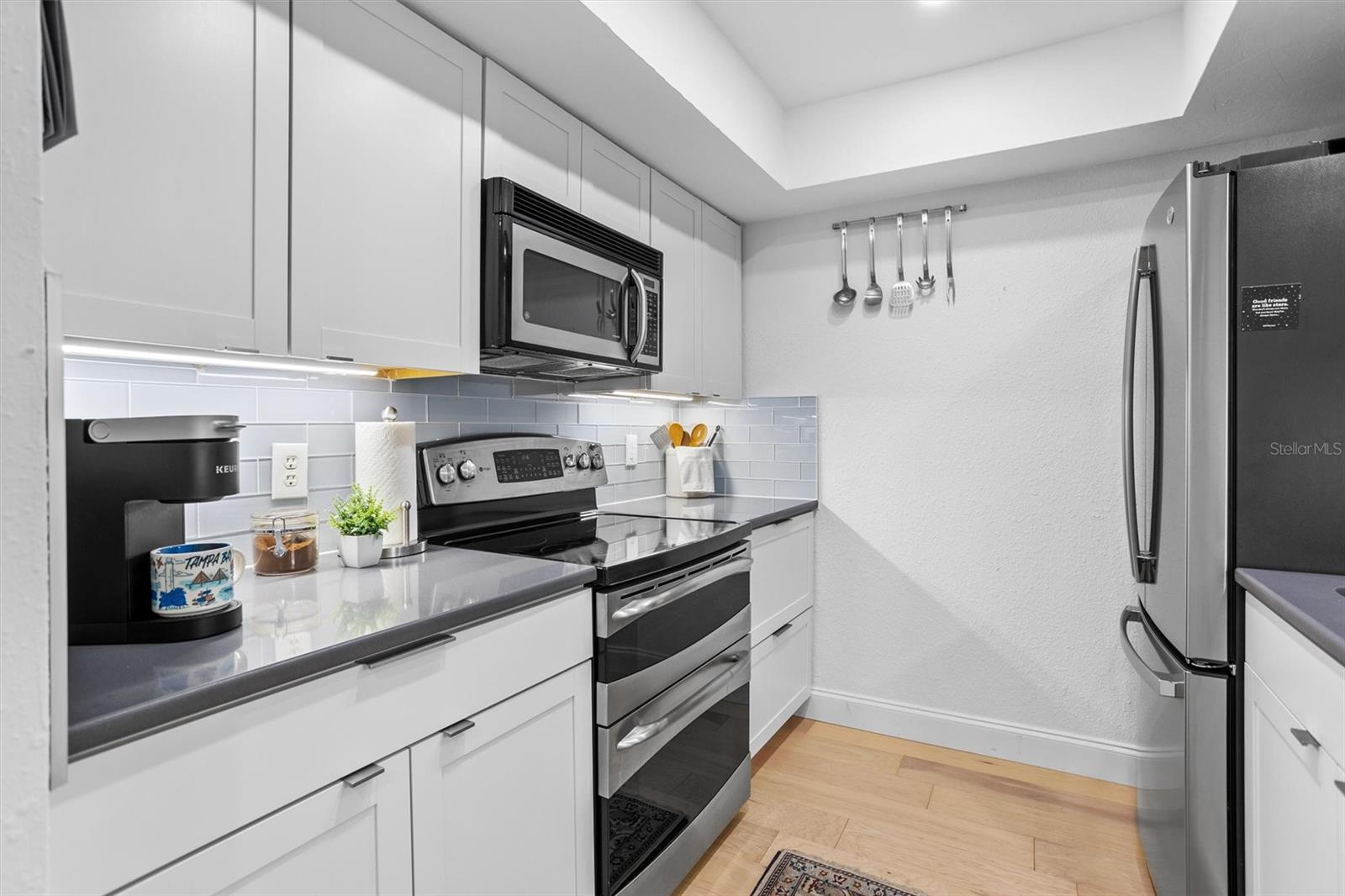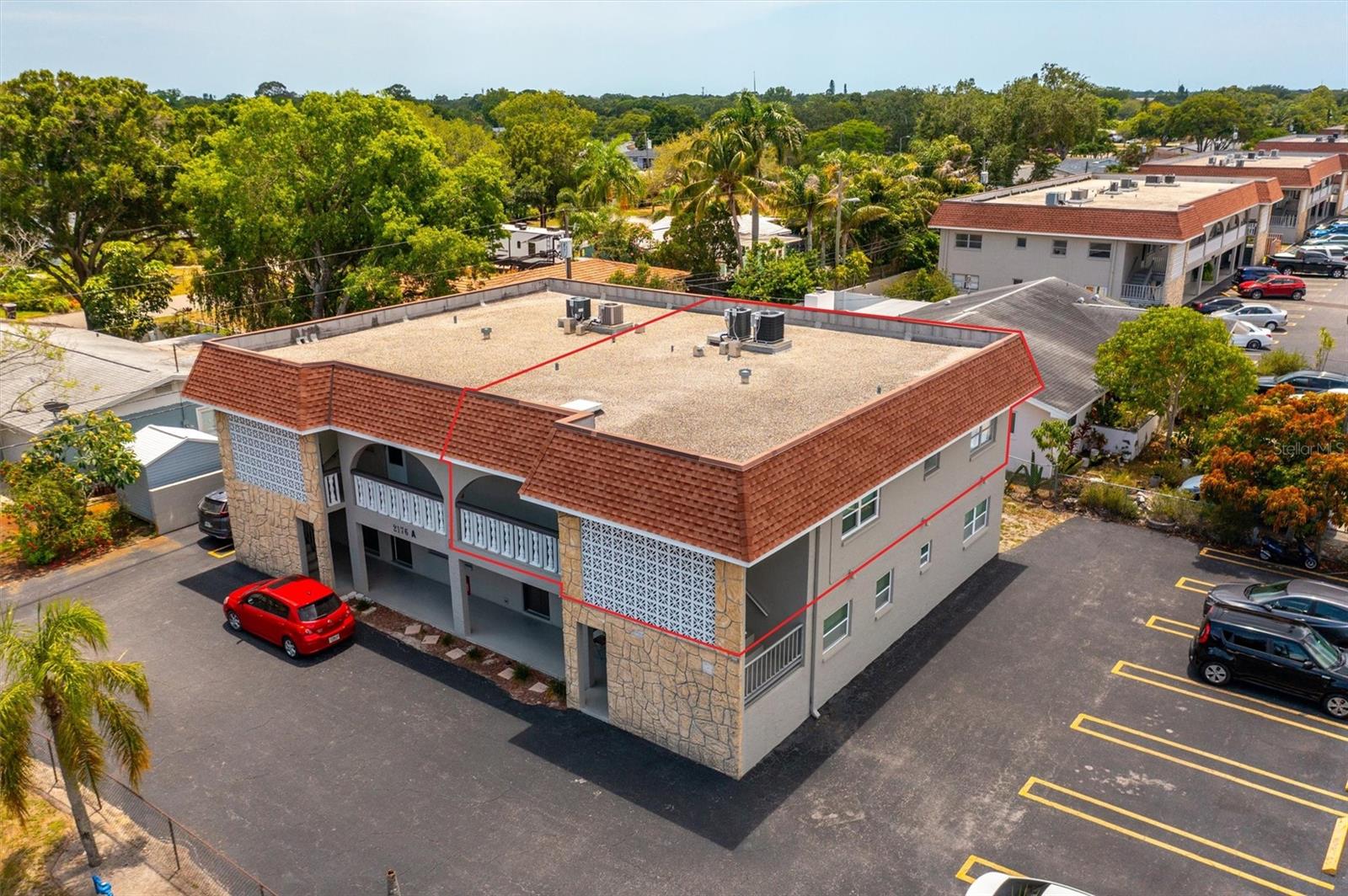 Looking for a duplex!? Or a home with a mother in law suite? Someplace you can own, live, and comfortably cover a portion of your monthly costs? Look no further! Check out this renovated duplex-style 2 bedroom 2 bath CONDO, located minutes from shopping, restaurants, entertainment, the beaches and downtown St Pete! This condo unit is split into two 1 bed 1 bath units, with a primary side and a secondary side - each with their own private entrance. On the primary side, upon entry, the light engineered hardwood floors with the adjustable lighting give the space a light, bright, airy feel - with plenty of space for entertaining, dining, and lounging. The kitchen was completely gut renovated in 2022 with quartz countertops, glass tile backsplash, under cabinet lighting, GE Dual convection oven (2022), Microwave (2022), and most recently a new refrigerator (2024). The primary bedroom also features engineered hardwood floors, adjustable lighting, and an Elfa Closet System (2022) built into the primary closet. The En-Suite is perfect for your needs with a step in shower and tile throughout for easy clean up and maintenance. On the secondary side, as soon as you step in it feels like home. The main living space features a kitchenette with fridge, microwave and space for an induction hot plate and lots of storage. The new impact glass windows look out onto the park and make the space so quiet! The secondary bedroom features engineered hardwood floors and a large closet space that can be used as a traditional closet or an office alcove! There is a laundry room in the building and 1 assigned, semi-private parking spot. Rent out one side of the unit or live in both - door separating units could have knob switched out for a deadbolt or take off the door entirely - the possibilities are endless. The list of improvements is impressive - New HVAC (2023), new hot water heater (2024), new and enlarged electrical panel (2024), plus impact glass windows installed in 2023 and 2024 with only 3 windows remaining to qualify for insurance discounts! New toilets and faucets were installed in 2022 in both bathrooms and both bathrooms were recently repainted (2024). The entire condo was repainted in 2022 along with new flooring installed in 2022 and the secondary side was repainted again in 2024. Door separating sides was installed in 2024. Rental 1/1 currently rented for $1450/month. Owner lives in non-rented half. Schedule your viewing today before it gets snapped up!!