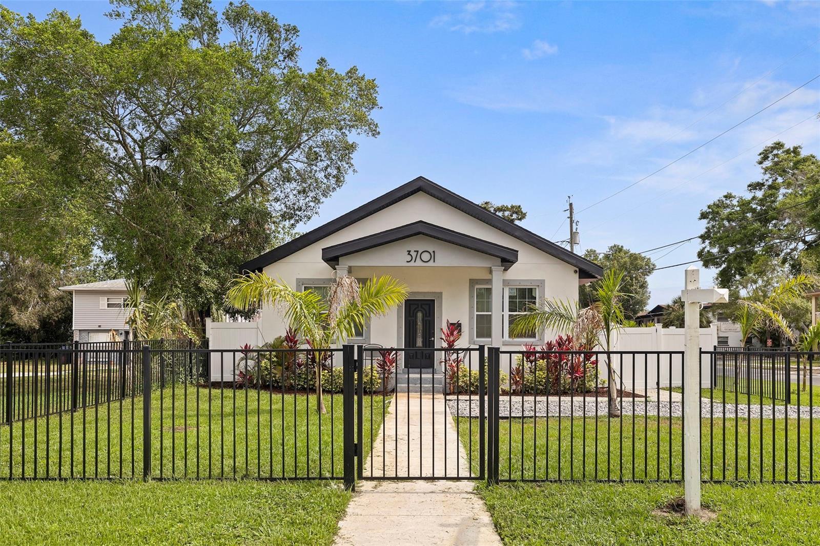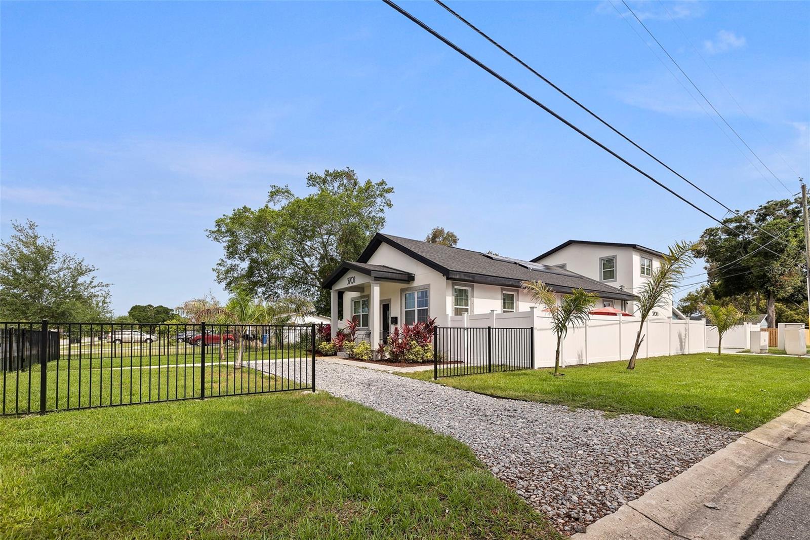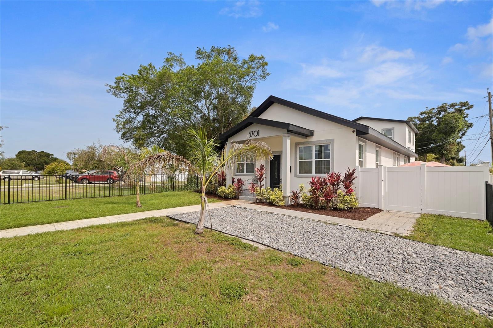 Welcome to your dream home! This stunning newer residence with a DETACHED 1/1 ADU embodies modern living at its finest, boasting an array of sought-after features that are sure to impress. Nestled in a serene neighborhood, this property offers the perfect blend of luxury, comfort, and versatility. As you step inside, you'll be greeted by soaring 10 foot ceilings that create an immediate sense of spaciousness and grandeur. The open floor plan seamlessly connects the main living areas, providing the ideal setting for entertaining guests or simply enjoying quality time with friends. Natural light floods the interior, accentuating the contemporary design and creating an inviting ambiance throughout. The heart of the home is the gourmet kitchen, which is sure to delight even the most discerning chefs. Equipped with stainless steel appliances, granite counters with a seamless granite backsplash, ample counter space, and stylish cabinetry, this culinary haven is as functional as it is beautiful. Whether you're preparing a casual meal or hosting a formal dinner party, this kitchen is sure to inspire your inner culinary creativity. Retreat to the luxurious primary suite, where tranquility awaits. Featuring high ceilings, a huge walk-in-closet and an en-suite bathroom, this private sanctuary offers the perfect escape from the hustle and bustle of everyday life. The additional two bedrooms in the main house are thoughtfully designed with comfort and convenience in mind. One of the unique highlights of this property is the detached 1 bedroom, 1 bathroom mother in-law suite, providing the perfect solution for multigenerational living or accommodating guests with privacy and comfort. Complete with its own living area, kitchenette, bedroom, bathroom, and in-unit laundry this separate dwelling offers endless possibilities for you to house-hack and rent out or host guests and family. Whether you're hosting a barbecue with friends or simply unwinding after a long day, the pavered backyard provides the perfect backdrop for outdoor living and entertaining. Additional features include solar panels, detached 2 car garage, and two separate driveways. Conveniently located 7 minutes to Grand Central District, 10 minutes to downtown St. Petersburg, and 15 minutes to Treasure Island! With its impressive features, versatile layout, and prime location, this is truly a once-in-a-lifetime opportunity to own a piece of paradise. Don't miss out on the chance to make this extraordinary property your own – schedule a showing today and prepare to fall in love! Up to 1% in closing costs using Seller's preferred lender!