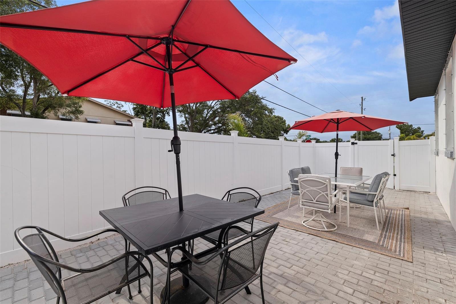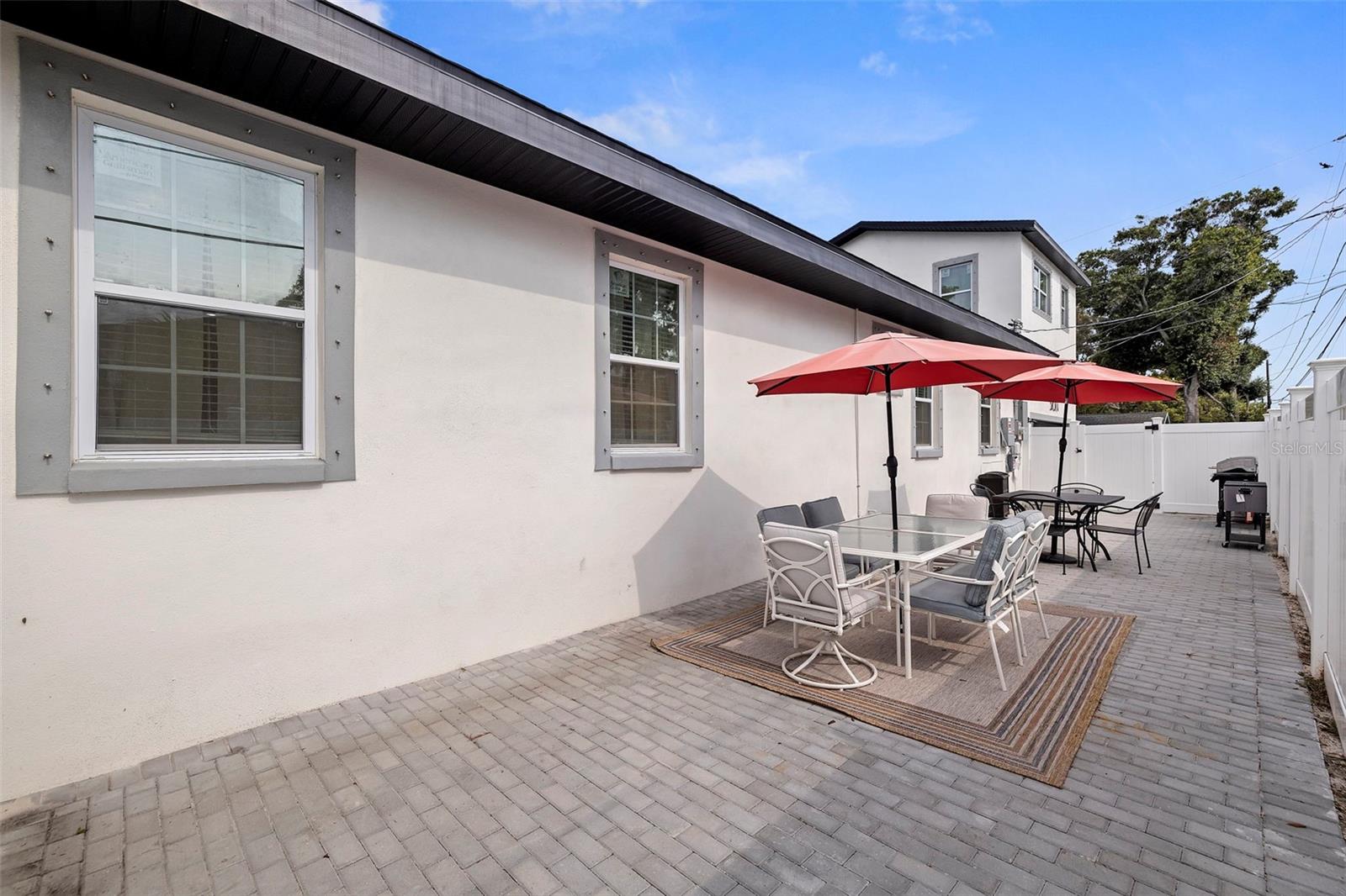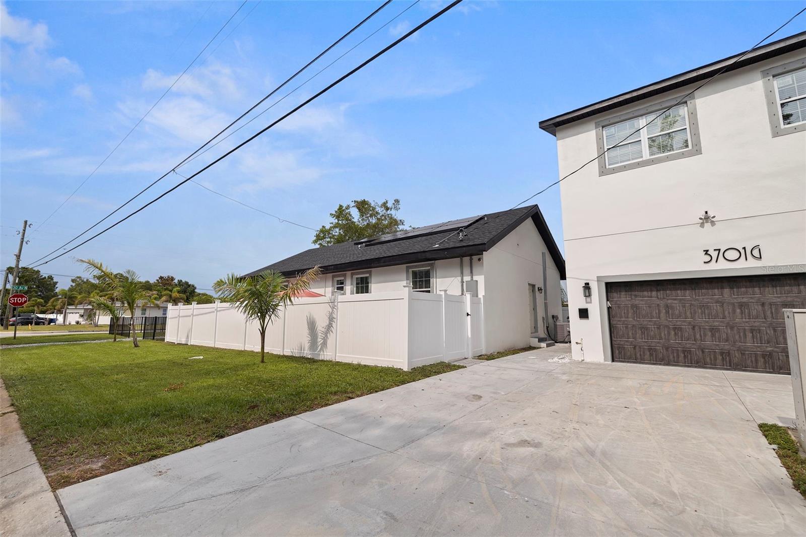 Welcome to your dream home! This stunning newer residence with a DETACHED 1/1 ADU embodies modern living at its finest, boasting an array of sought-after features that are sure to impress. Nestled in a serene neighborhood, this property offers the perfect blend of luxury, comfort, and versatility. As you step inside, you'll be greeted by soaring 10 foot ceilings that create an immediate sense of spaciousness and grandeur. The open floor plan seamlessly connects the main living areas, providing the ideal setting for entertaining guests or simply enjoying quality time with friends. Natural light floods the interior, accentuating the contemporary design and creating an inviting ambiance throughout. The heart of the home is the gourmet kitchen, which is sure to delight even the most discerning chefs. Equipped with stainless steel appliances, granite counters with a seamless granite backsplash, ample counter space, and stylish cabinetry, this culinary haven is as functional as it is beautiful. Whether you're preparing a casual meal or hosting a formal dinner party, this kitchen is sure to inspire your inner culinary creativity. Retreat to the luxurious primary suite, where tranquility awaits. Featuring high ceilings, a huge walk-in-closet and an en-suite bathroom, this private sanctuary offers the perfect escape from the hustle and bustle of everyday life. The additional two bedrooms in the main house are thoughtfully designed with comfort and convenience in mind. One of the unique highlights of this property is the detached 1 bedroom, 1 bathroom mother in-law suite, providing the perfect solution for multigenerational living or accommodating guests with privacy and comfort. Complete with its own living area, kitchenette, bedroom, bathroom, and in-unit laundry this separate dwelling offers endless possibilities for you to house-hack and rent out or host guests and family. Whether you're hosting a barbecue with friends or simply unwinding after a long day, the pavered backyard provides the perfect backdrop for outdoor living and entertaining. Additional features include solar panels, detached 2 car garage, and two separate driveways. Conveniently located 7 minutes to Grand Central District, 10 minutes to downtown St. Petersburg, and 15 minutes to Treasure Island! With its impressive features, versatile layout, and prime location, this is truly a once-in-a-lifetime opportunity to own a piece of paradise. Don't miss out on the chance to make this extraordinary property your own – schedule a showing today and prepare to fall in love! Up to 1% in closing costs using Seller's preferred lender!