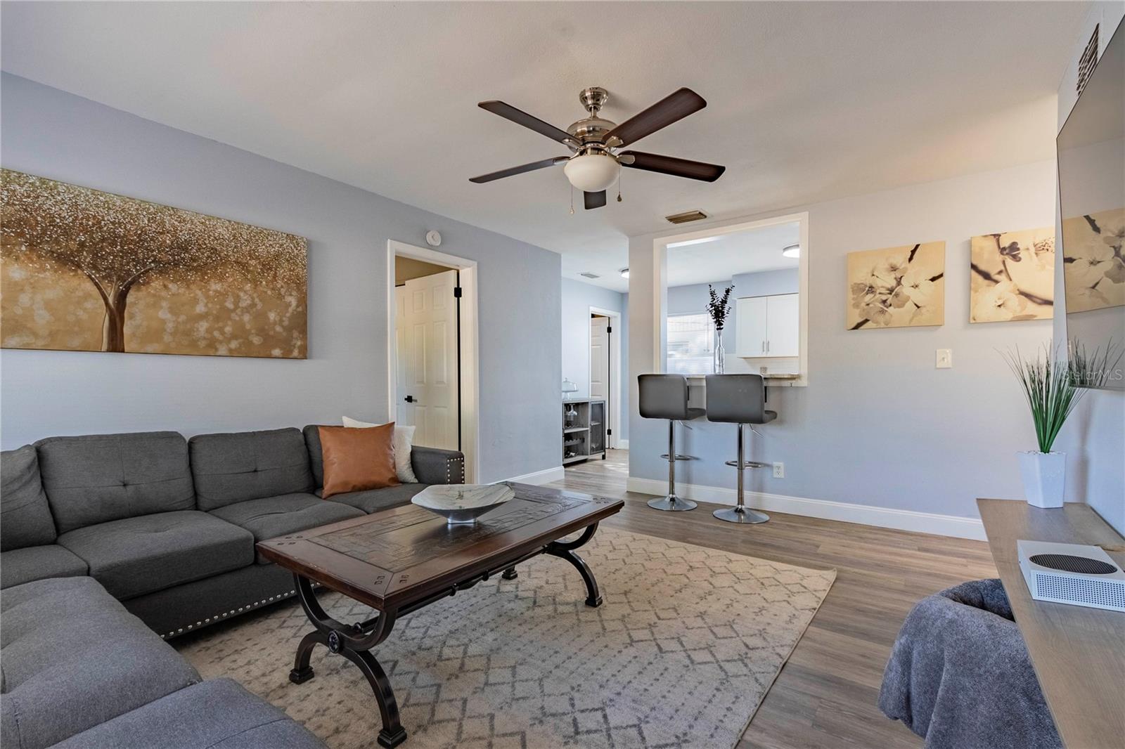 Welcome to this inviting 3 bed, 1.5 bath home situated on a prime corner lot! The home was updated in 2021 and features a kitchen complete with stainless steel appliances, granite countertops, and an open window into the living room. In addition to the renovations in 2021, permits were pulled for a new roof and a 125-amp electric service panel with meter: giving any new homeowner peace of mind. All major appliances such as the refrigerator and washer/dryer convey. Enjoy the privacy of a fenced-in backyard, perfect for relaxing or entertaining. The home is in an ideal location, just steps from the Pinellas Trail and Twin Brooks Golf Course, with the beach and downtown only a short trip away. Come enjoy the Florida lifestyle.