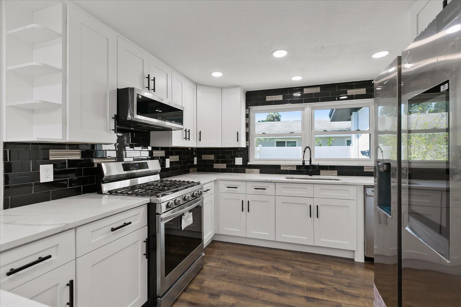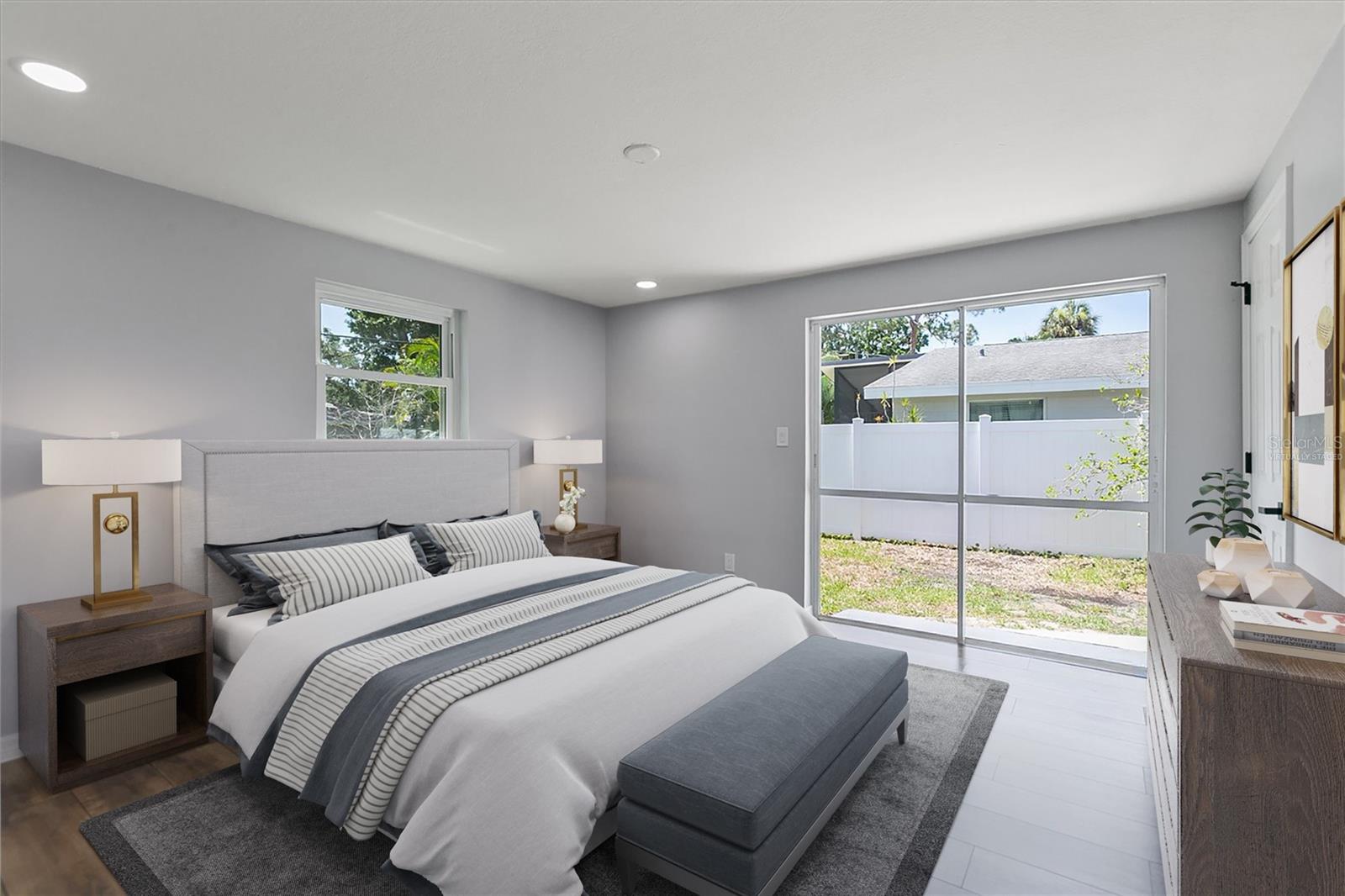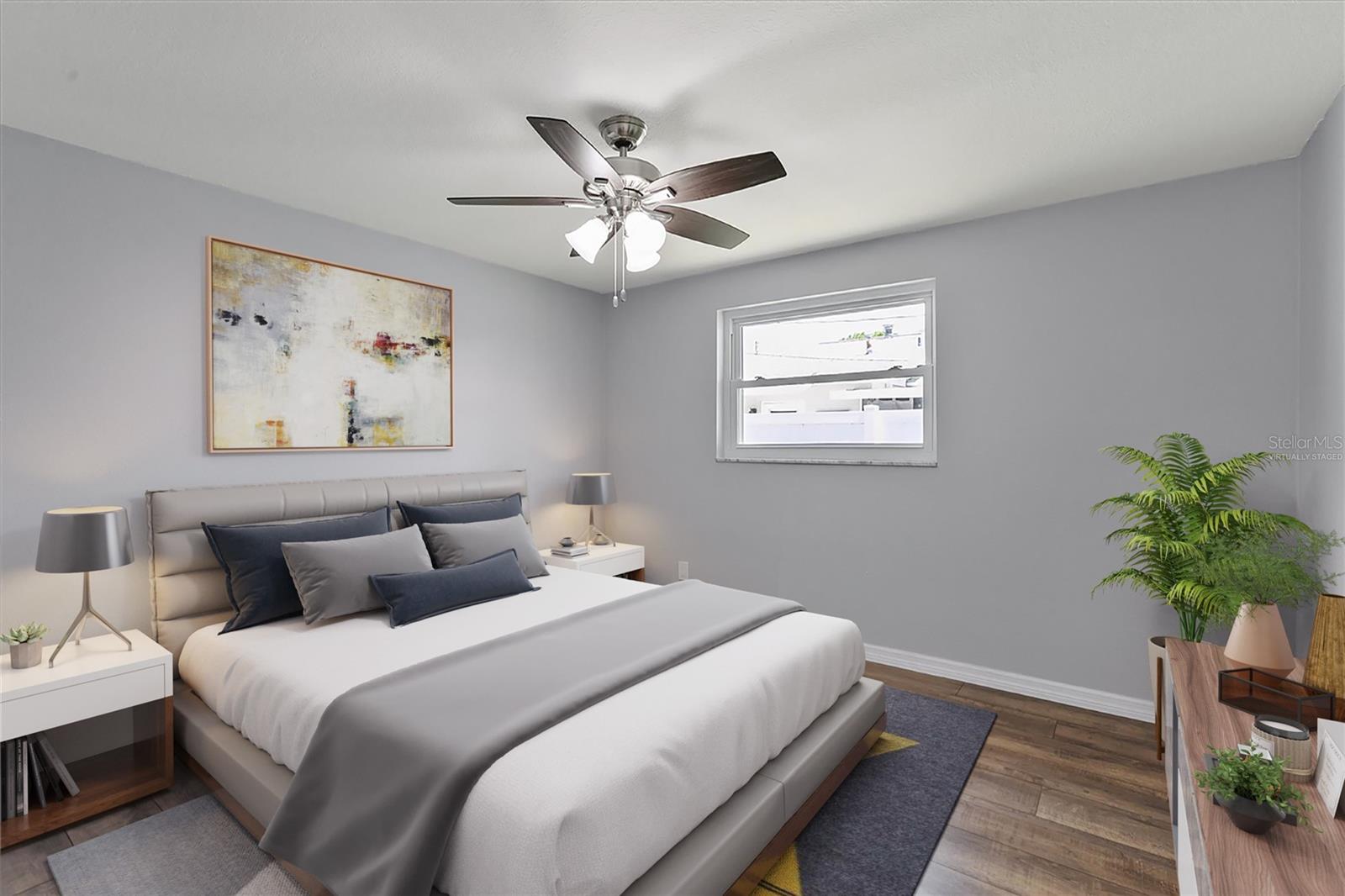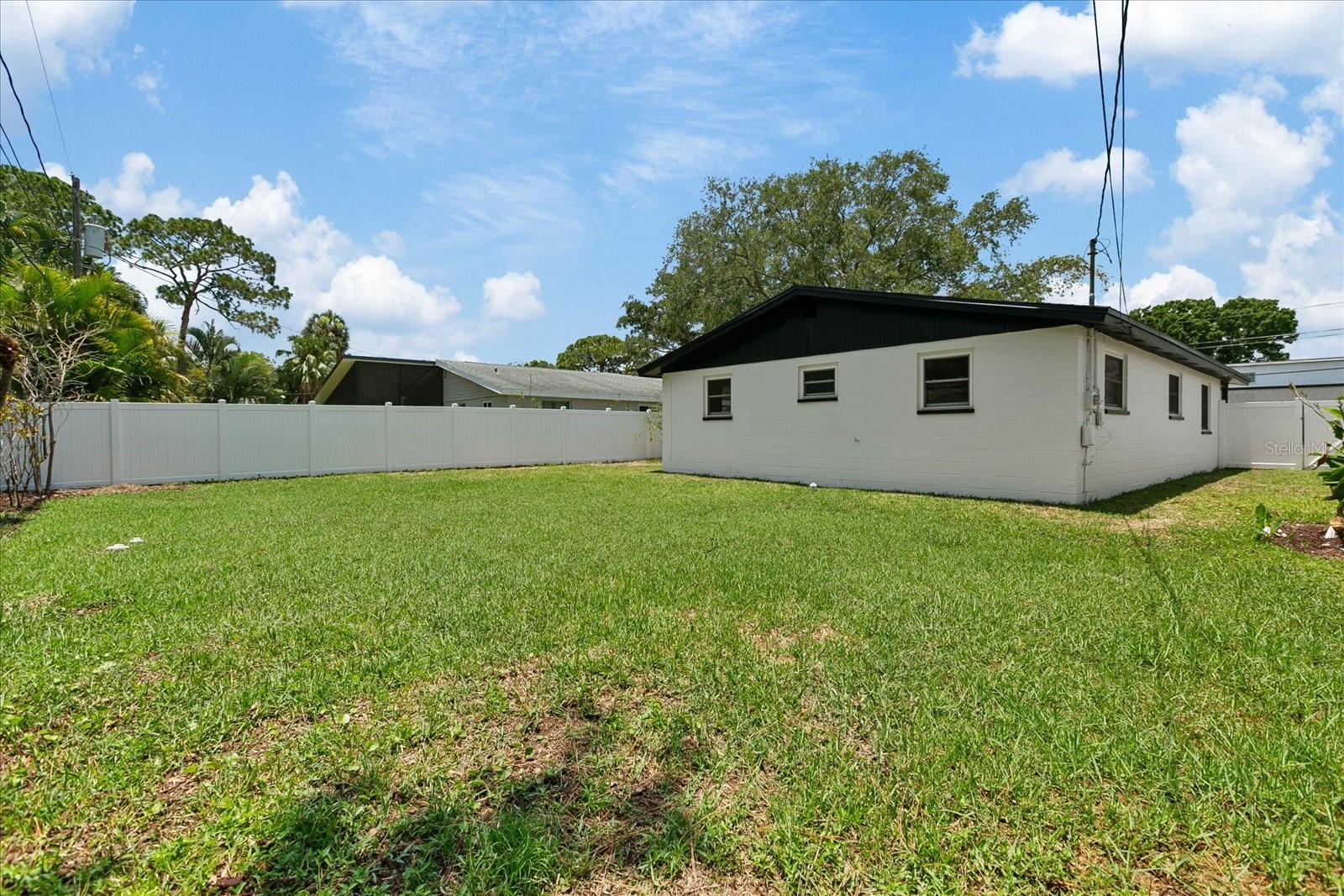 One or more photo(s) has been virtually staged. Step into modern luxury! This completely renovated block home features 3 bedrooms and 2 bathrooms, boasting stunning quartz kitchen countertops, pristine white shaker cabinets, and abundant shelving and storage space. Enjoy sleek laminate flooring throughout, a spacious two-car garage, and a brand-new roof. Modern amenities include a gas heater, gas stovetop, and brand-new appliances. The ample backyard offers the possibility of adding a pool for ultimate relaxation. Nestled in a quiet neighborhood, this home is conveniently located close to downtown St. Pete and beautiful beaches. Plus, enjoy the freedom of no HOA or CDD fees. Don't miss out on this perfect blend of style and convenience!