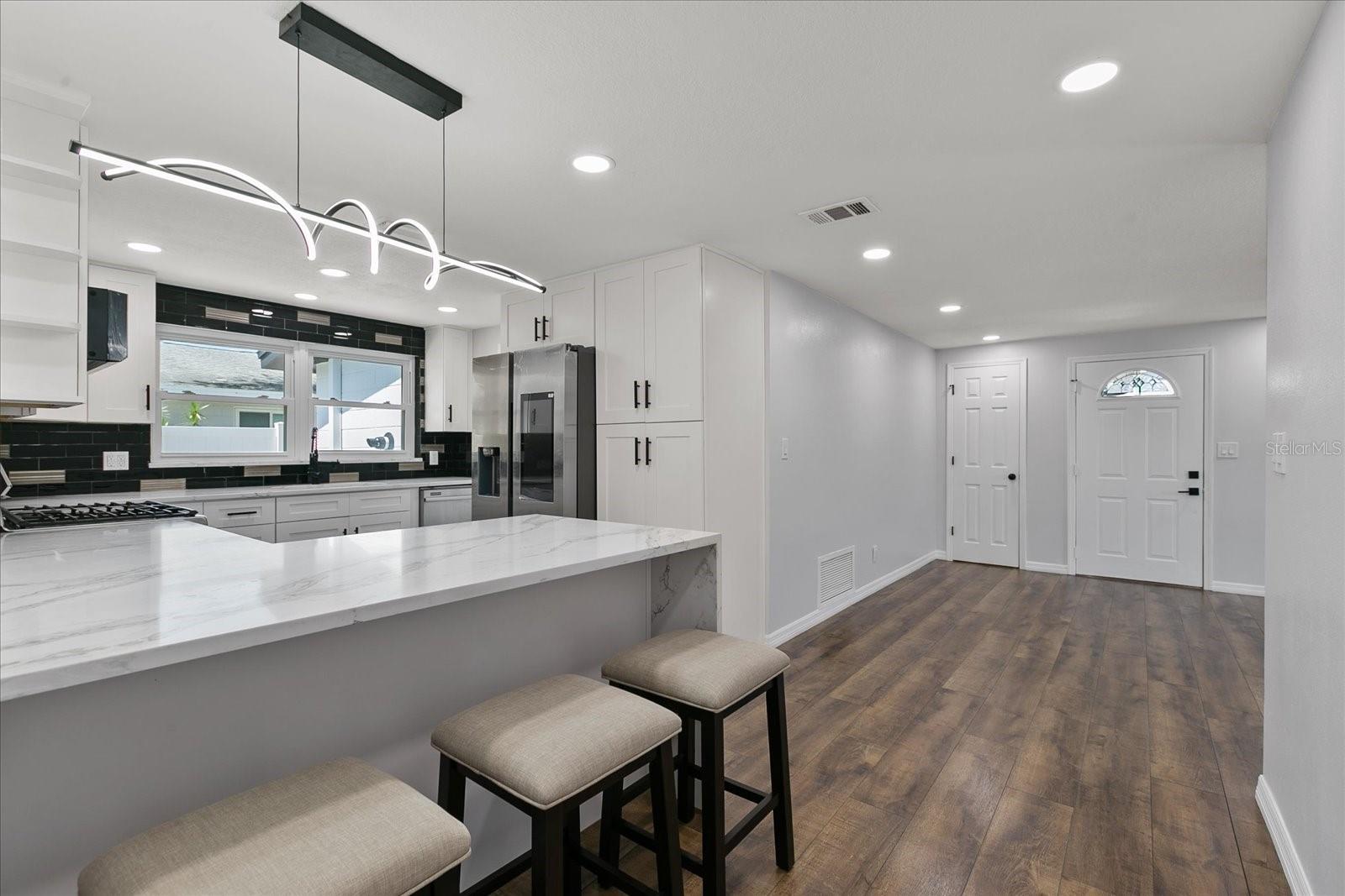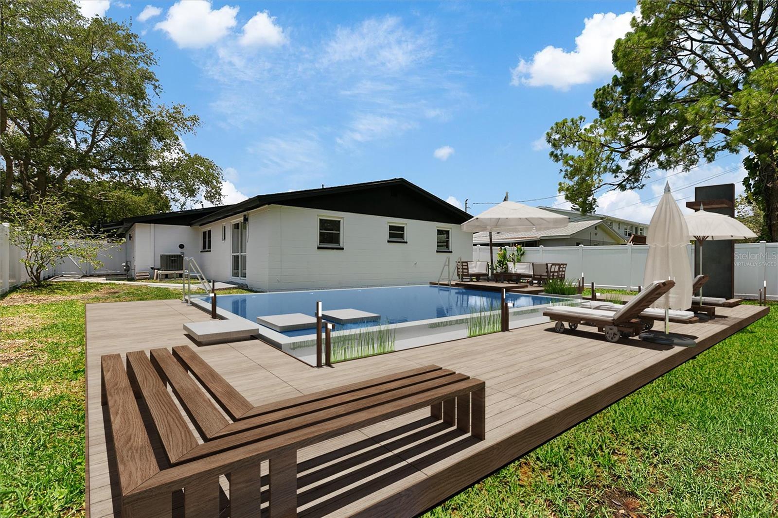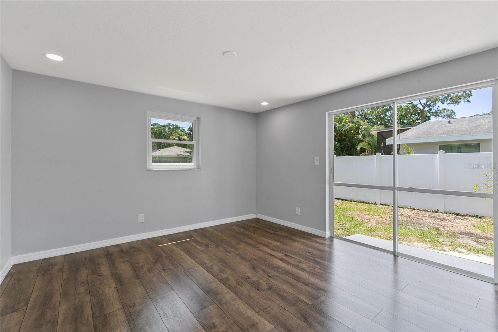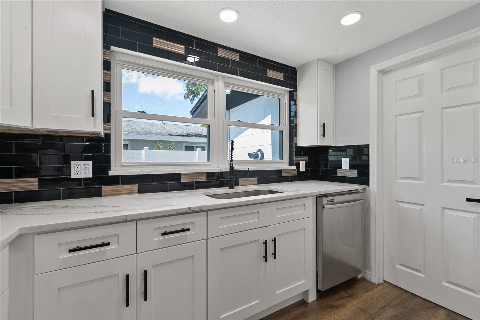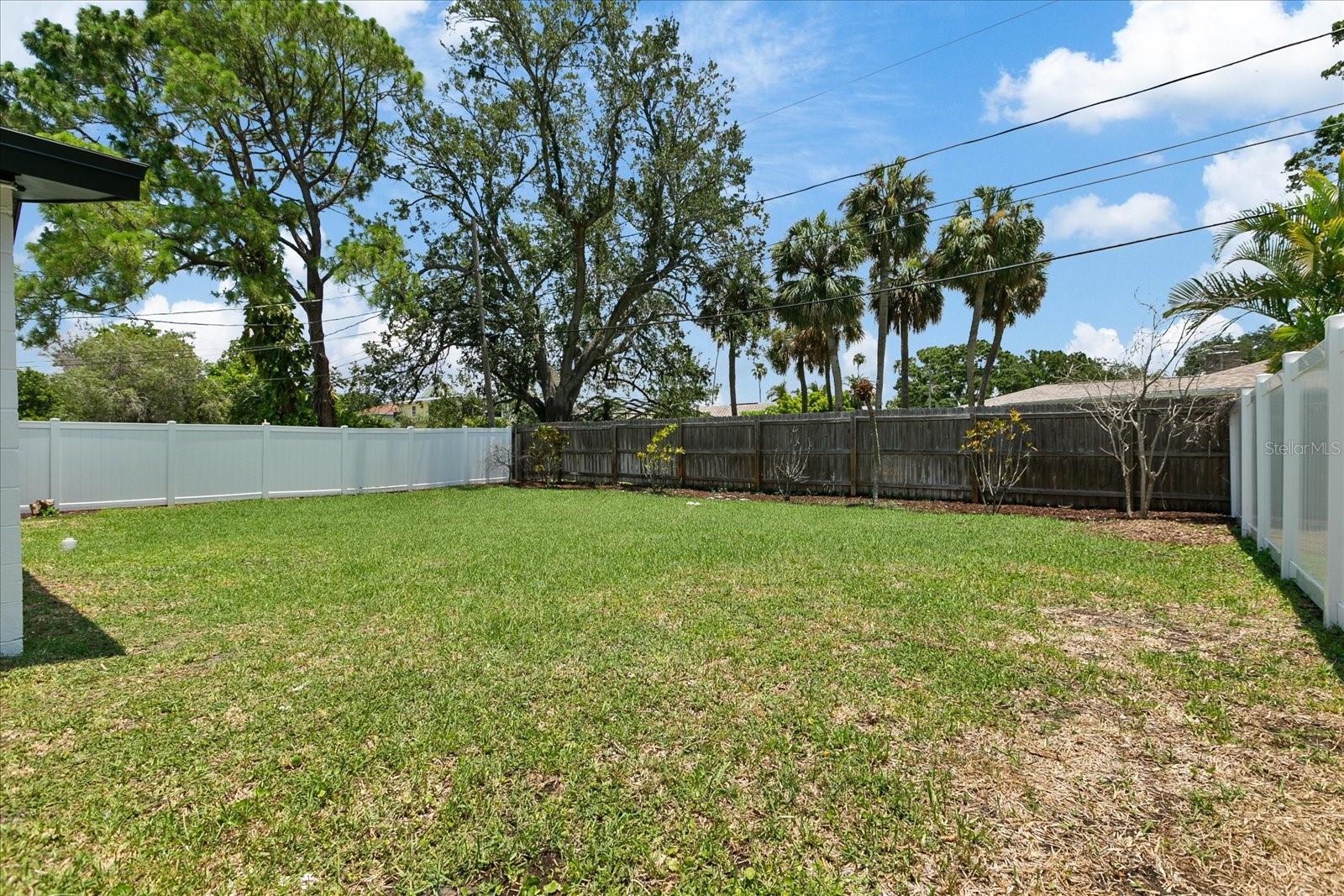One or more photo(s) has been virtually staged. Step into modern luxury! This completely renovated block home features 3 bedrooms and 2 bathrooms, boasting stunning quartz kitchen countertops, pristine white shaker cabinets, and abundant shelving and storage space. Enjoy sleek laminate flooring throughout, a spacious two-car garage, and a brand-new roof. Modern amenities include a gas heater, gas stovetop, and brand-new appliances. The ample backyard offers the possibility of adding a pool for ultimate relaxation. Nestled in a quiet neighborhood, this home is conveniently located close to downtown St. Pete and beautiful beaches. Plus, enjoy the freedom of no HOA or CDD fees. Don't miss out on this perfect blend of style and convenience!