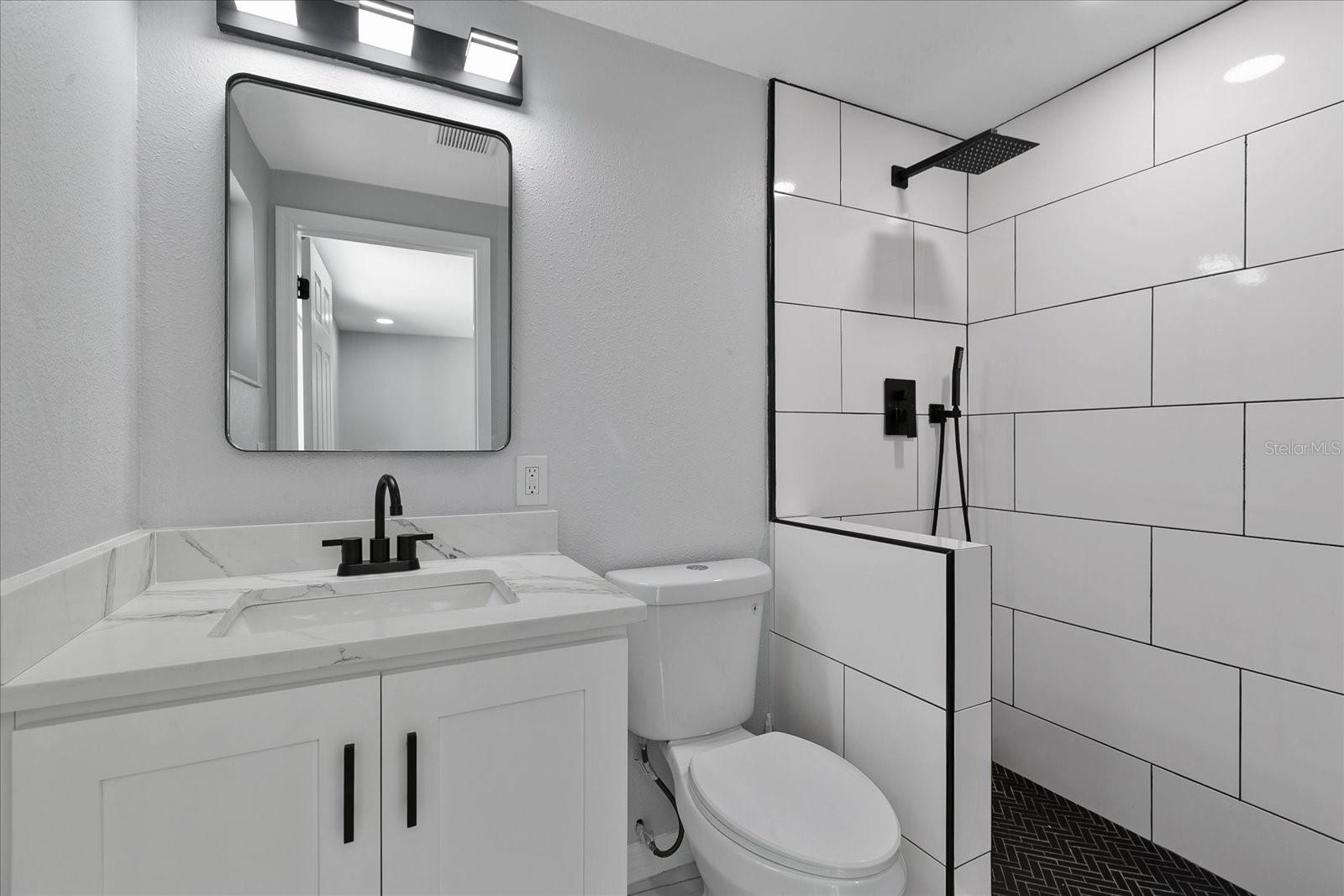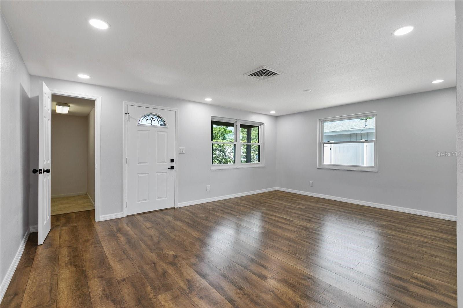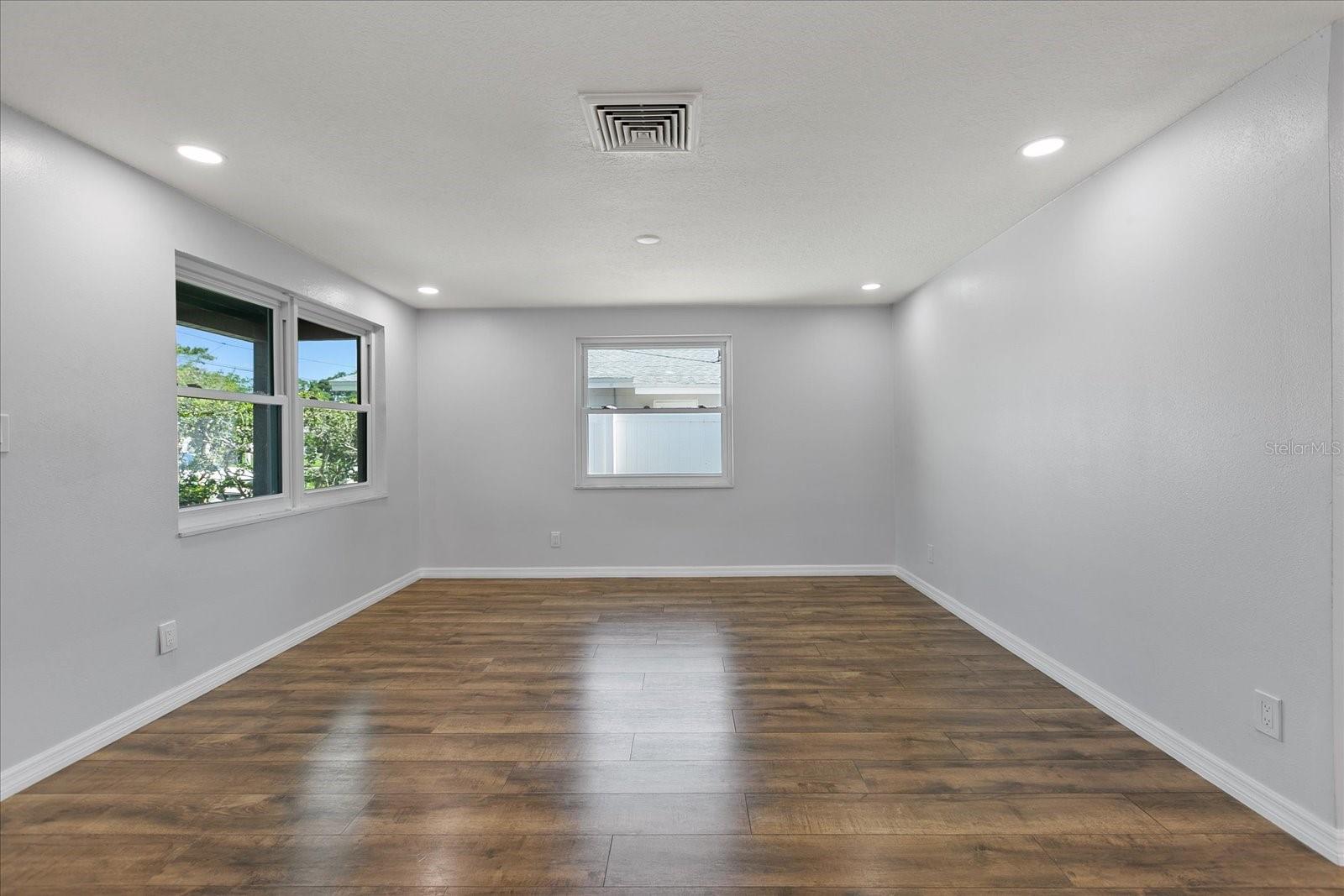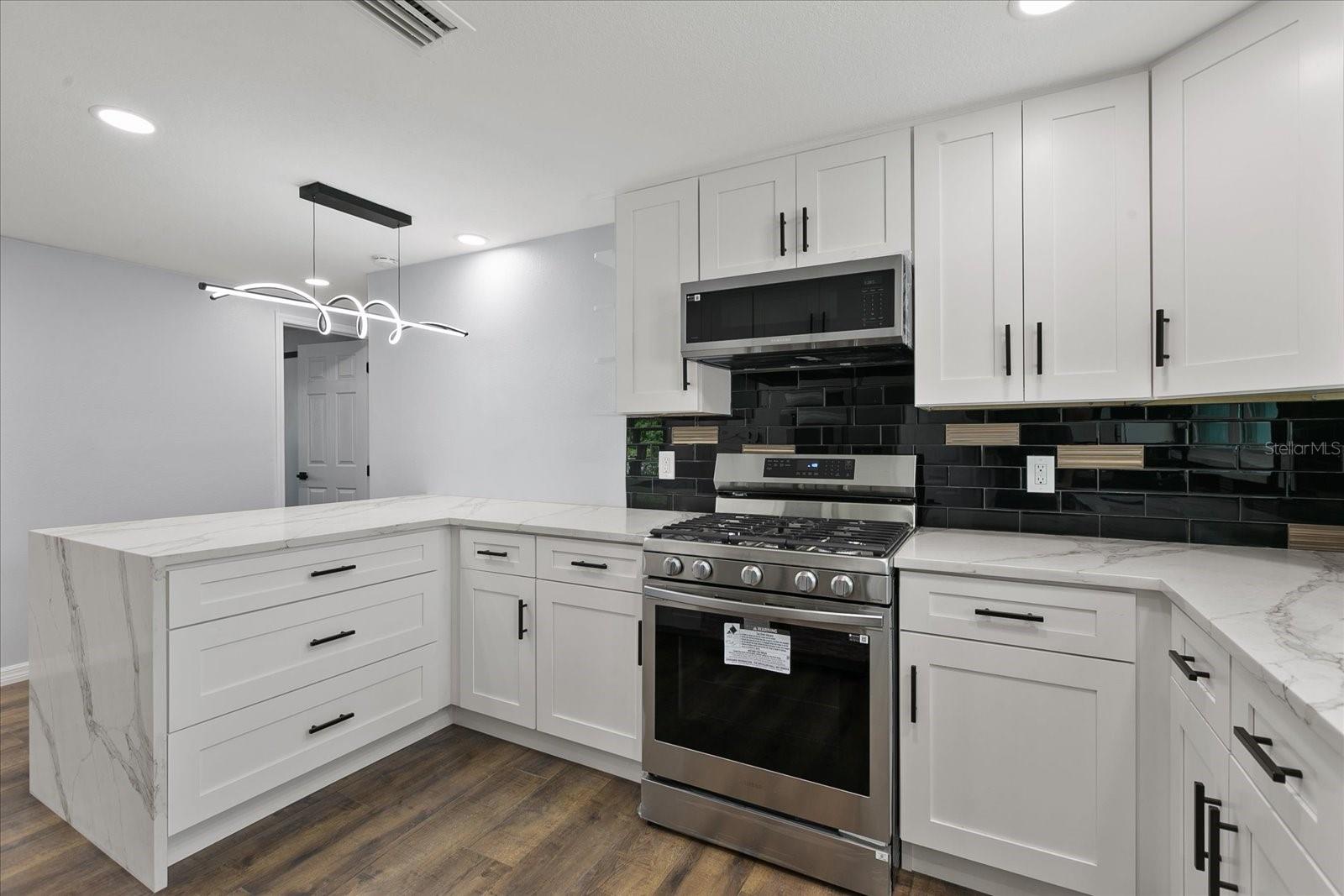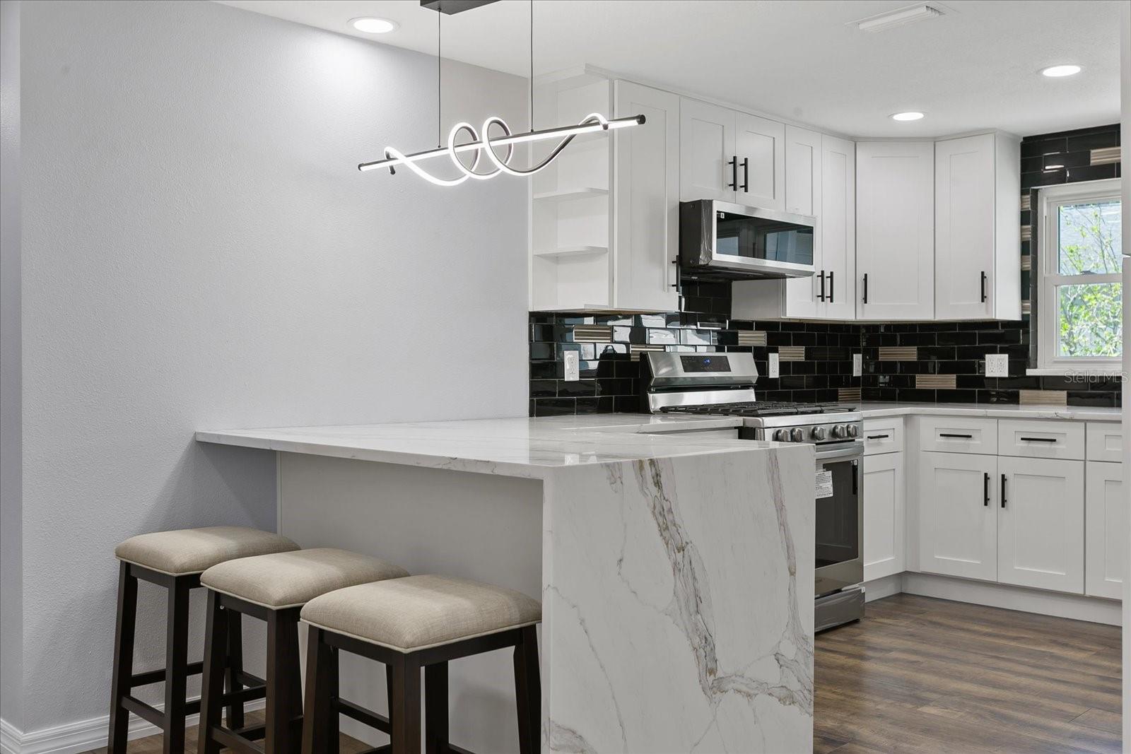 One or more photo(s) has been virtually staged. Step into modern luxury! This completely renovated block home features 3 bedrooms and 2 bathrooms, boasting stunning quartz kitchen countertops, pristine white shaker cabinets, and abundant shelving and storage space. Enjoy sleek laminate flooring throughout, a spacious two-car garage, and a brand-new roof. Modern amenities include a gas heater, gas stovetop, and brand-new appliances. The ample backyard offers the possibility of adding a pool for ultimate relaxation. Nestled in a quiet neighborhood, this home is conveniently located close to downtown St. Pete and beautiful beaches. Plus, enjoy the freedom of no HOA or CDD fees. Don't miss out on this perfect blend of style and convenience!