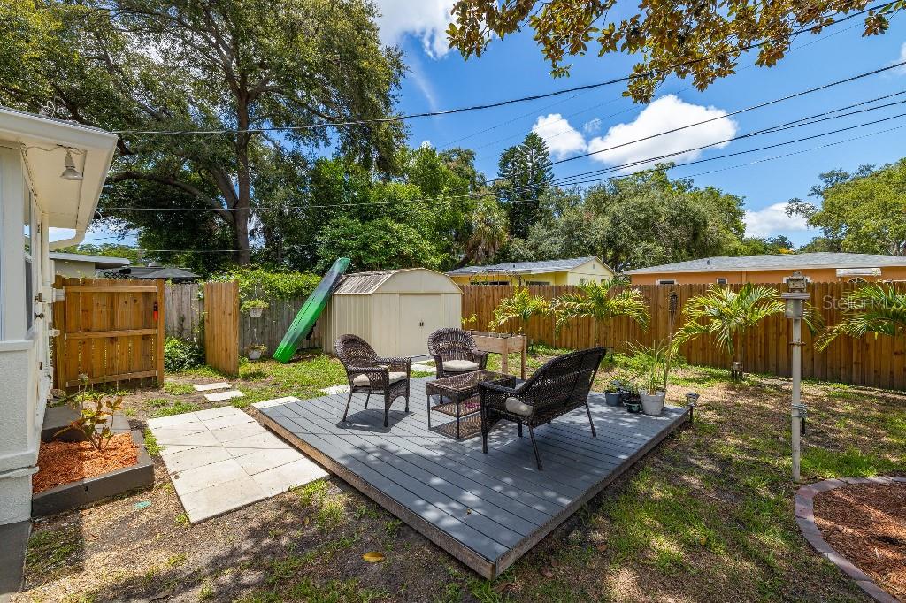 Welcome to this recently renovated and move-in ready 2-bedroom, 1-bathroom house, centrally located in the Disston Heights neighborhood. This home offers beautiful hardwood floors, a stylish walk-in shower and all new kitchen and laundry appliances (2022). Each bedroom contains custom built-in closets to maximize space and storage. The entire house has fresh paint, inside and out, creating a bright and airy atmosphere that complements the natural light that floods in through the windows. Newly installed double-pane energy-efficient windows along with block construction contribute to your safety in all kinds of weather- plus this home is not in a flood zone. The fenced-in backyard features a 12x12 deck, perfect for enjoying the outdoors and hosting gatherings, a large shed with storage racks and a beautiful magnolia tree that provides indispensable afternoon shade. Unwind in the comforts of your new home knowing your neighborhood is safe, quiet and peaceful. This home faces a small pond, so no need to worry about neighbors across the street. Additionally, a carport provides covered parking and the new (2023) driveway allows for ample parking. Conveniently located 12 minutes from beautiful Florida beaches, 10 minutes to downtown St. Pete and 25 minutes to Tampa International Airport, this property provides easy access to all the amenities you’ll need. Don't miss the opportunity to make this house your home. Contact us today to schedule a viewing.