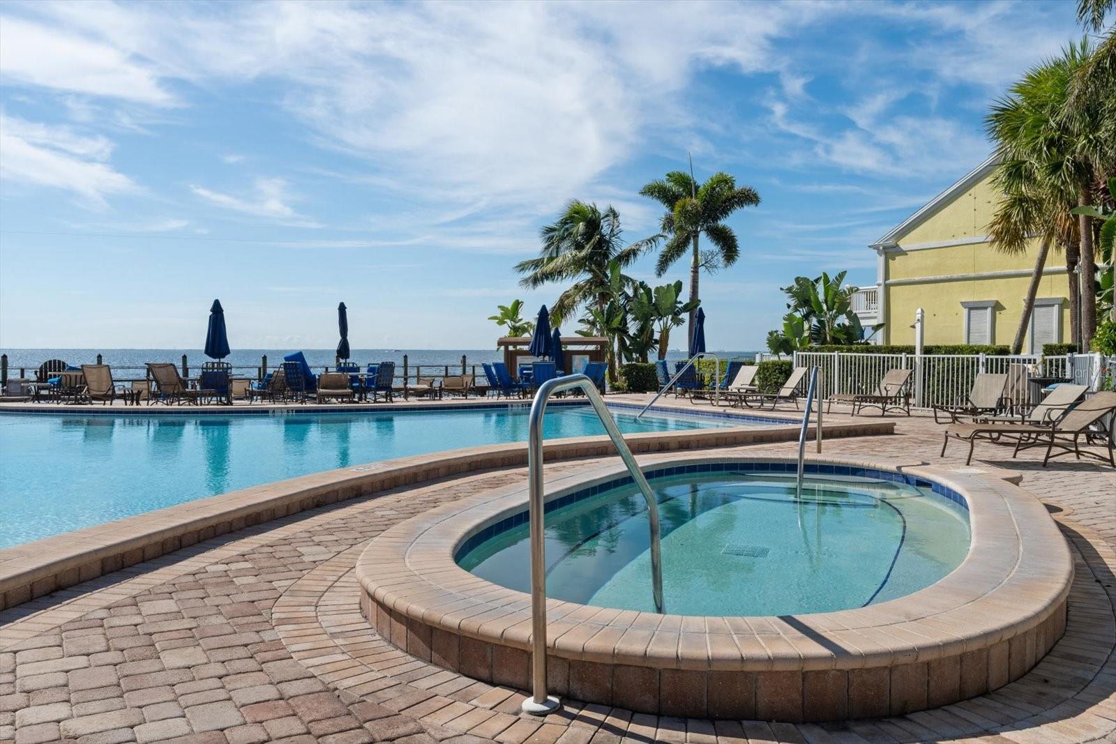 ZERO damage from Helene and Milton! These views at PRICED TO SELL! Welcome to your FURNISHED & TURNKEY waterfront dream home! This stunning 1st floor, corner unit in Coquina Key Waterside offers breathtaking views of Tampa Bay. Enjoy the serene waterfront from your oversized private patio and watch wildlife, boats, and cruise ships float by. This unit features a built-in Murphy bed for guests, in-unit laundry, and numerous recent updates including: Shaker style cabinets, granite countertops, hurricane impact windows, electrical panel, tiled walk-in shower, tile floors throughout, new roof and balcony (completed in 2022/2023), new HVAC system. Waterside is a gated community spread across 88 acres of lushly landscaped grounds, offering a ton of amenities for your enjoyment: 24-hour security, two pools, clubhouse, fitness center, pickleball courts, tennis courts, volleyball and basketball courts, billiards, library, fishing dock, kayak launches and storage, dog park. This PET FRIENDLY community welcomes your furbabies! Located just minutes from Downtown St. Pete and some of the Gulf's best award-winning beaches, Waterside at Coquina Key offers the best of Florida living. Short drive to Tampa and two international airports. This is a must-see condo! Schedule a showing today! VIDEO TOUR available! https://youtu.be/C1C4nBAZMQk