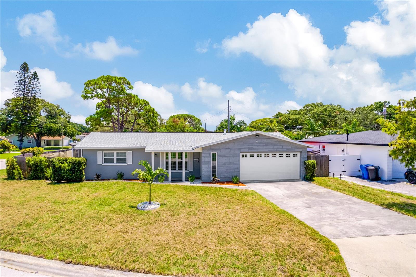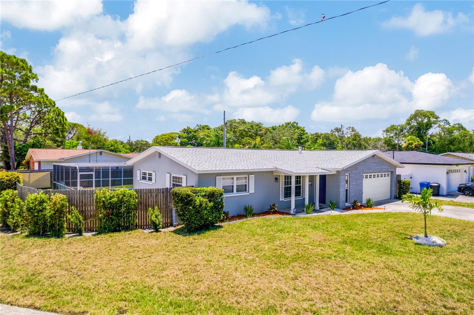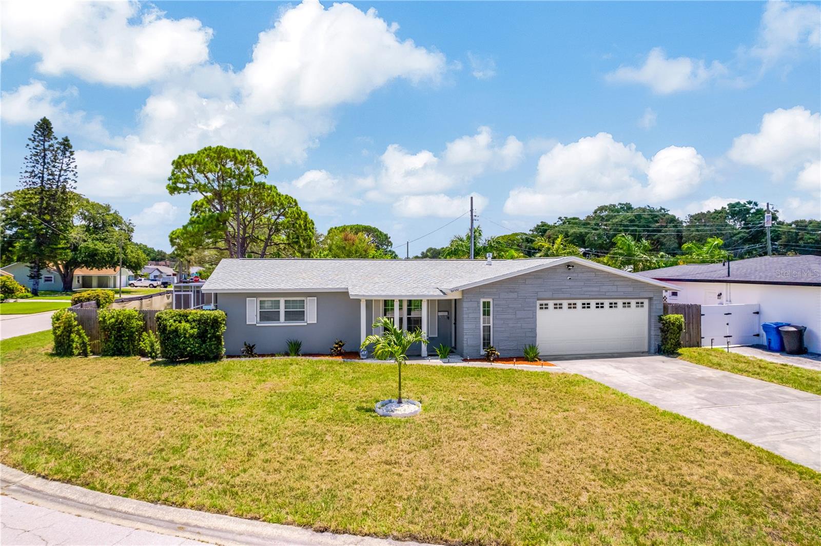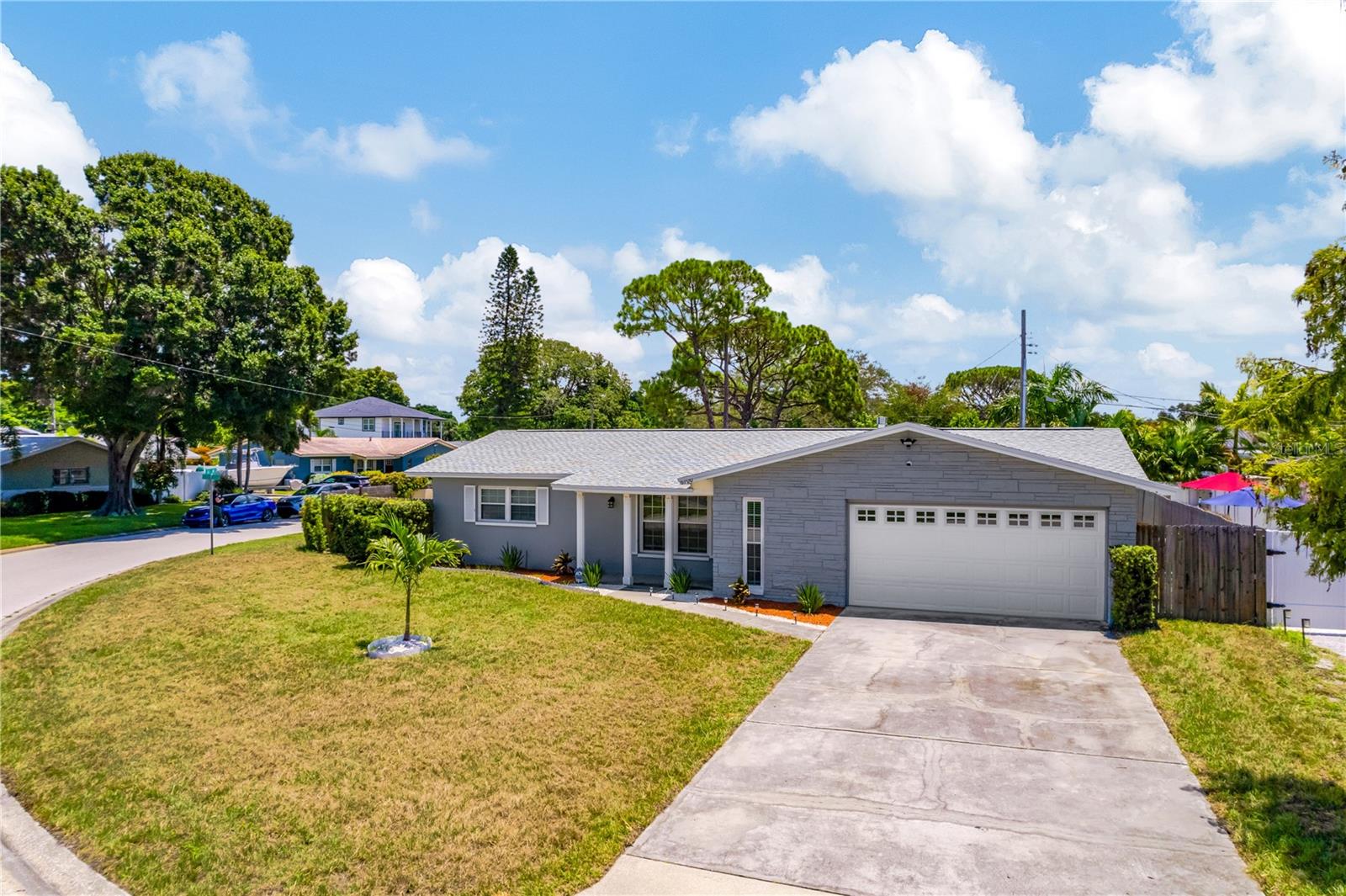 WELCOME TO THIS DELIGHTFULLY RENOVATED St Pete BEAUTY!! Located in St Pete's Highly Sought After Pinellas Point Neighborhood!!! This Completely Updated 3 Bed/2 Bath/2 Car Garage, POOL HOME on a Large, Pie-Shaped, Corner Lot is Absolutely Turn-Key! From the moment you step inside, you’ll feel the Comfy, Cozy Vibe of this Open Floor Plan Design with Plenty of Windows that allow lots of Natural Light to Flow Through! The Neutral LVP Flooring in all the main living areas is not only Nice Looking, but also Easy to Maintain! From the Foyer Entryway is a Living Room Space that could be great for quiet reading or good as an "At Home Office" with a Window View! The Spacious Kitchen boasts Beautiful Granite Counters, Crisp-Bright Shaker Style Cabinets, Undermount Single Basin Sink, Stainless Steel Appliances & a Breakfast Bar that overlooks the Dining Area from one side and is open to the Family Room on the other Side! This type of layout is Perfect for Entertaining family & friends or keeping Or watching TV while preparing a meal. You will Love the View of the Sparkling In-Ground Pool from the Glass French Doors in the Dining Area. The Roomy Primary Bedroom Retreat offers Soft Carpet for when you step out of bed, additional Glass French Doors that open to a Walk-In Closet and en-suite Bathroom with Granite Counters, Undermount Sink and Stall Shower. Your Outdoor Backyard Retreat provides a Covered Patio for Dining in the Shade, as well as a Large Screened Lanai Deck Area for Grilling Out & Sunbathing or Swimming & Cooling Off in the Pool! You can even Roast Marshmallows over the Fire Pit and gaze at the stars in the Shell Covered Side Yard space! You’ll appreciate having a Longer Driveway for Extra Parking Space and will enjoy Relaxing on the Front Porch watching the Glorious Florida Gulf-Coast Sunsets! This Great Home is Just Minutes from the Beach and near Numerous Fantastic Restaurants, Entertainment, Shopping, Arts and All the Amazing St Pete Area has to offer! Nothing left to do in this home except unpack the Truck and Love where you live! Come See it TODAY!