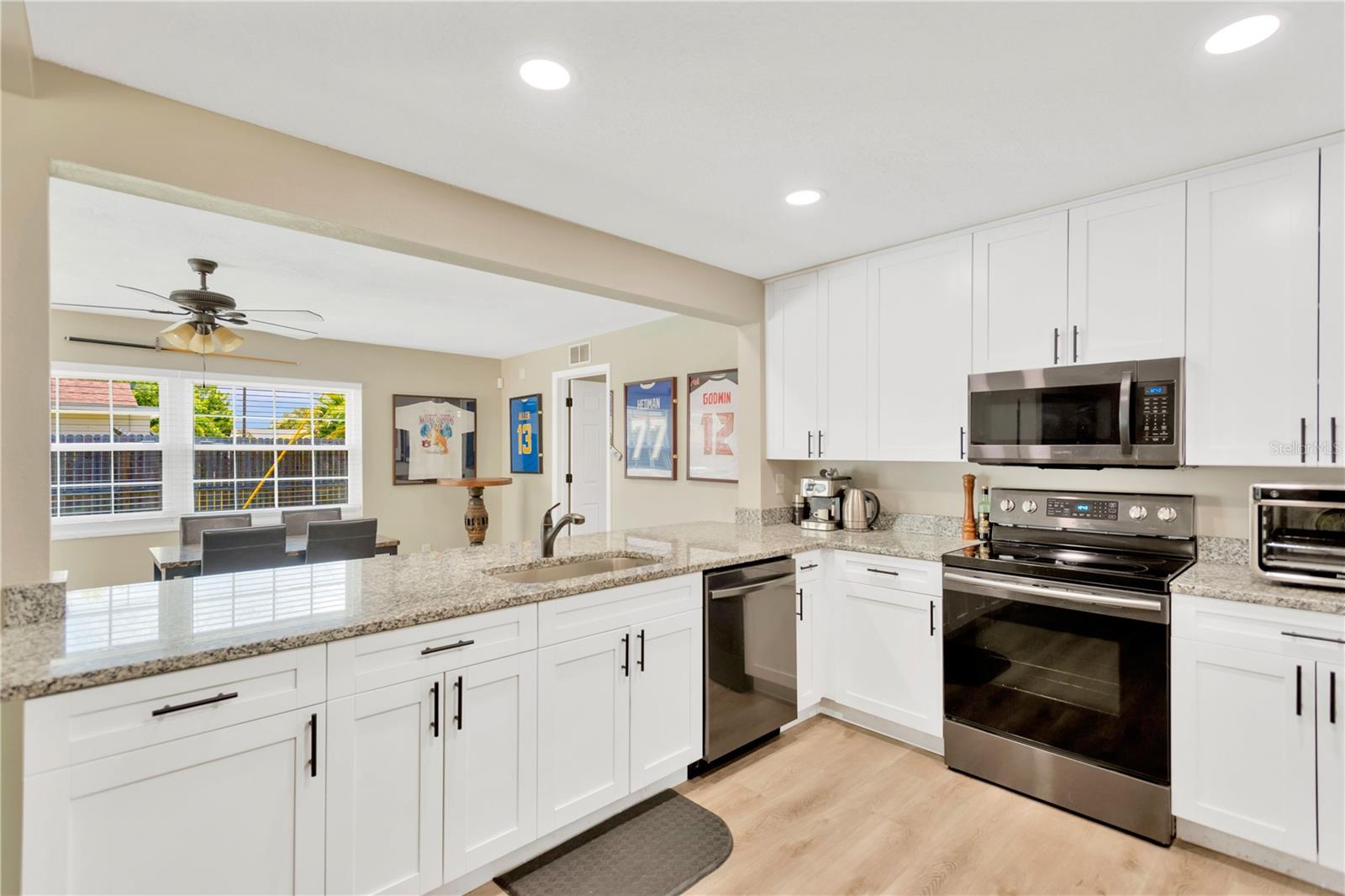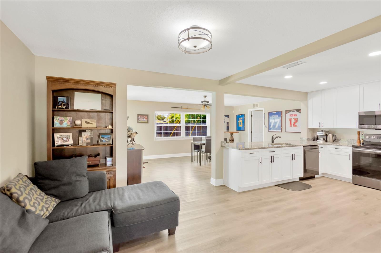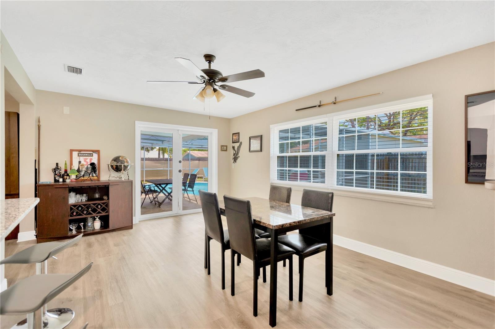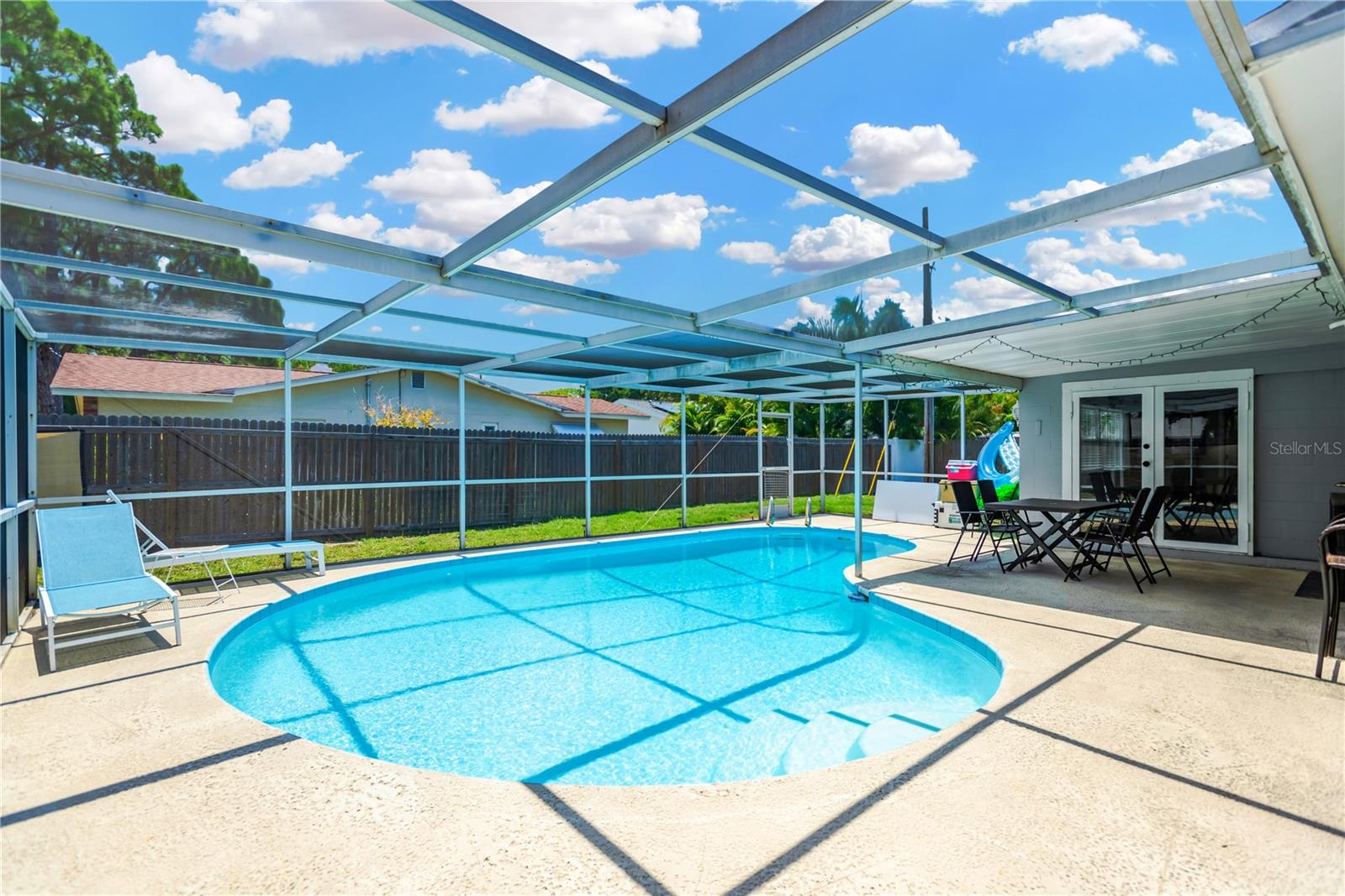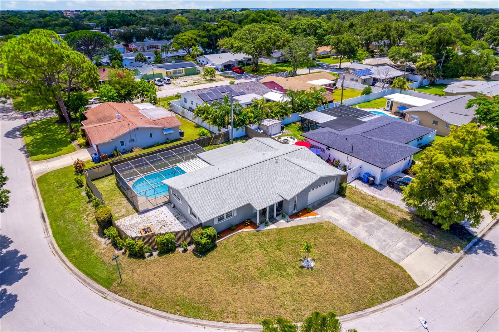 WELCOME TO THIS DELIGHTFULLY RENOVATED St Pete BEAUTY!! Located in St Pete's Highly Sought After Pinellas Point Neighborhood!!! This Completely Updated 3 Bed/2 Bath/2 Car Garage, POOL HOME on a Large, Pie-Shaped, Corner Lot is Absolutely Turn-Key! From the moment you step inside, you’ll feel the Comfy, Cozy Vibe of this Open Floor Plan Design with Plenty of Windows that allow lots of Natural Light to Flow Through! The Neutral LVP Flooring in all the main living areas is not only Nice Looking, but also Easy to Maintain! From the Foyer Entryway is a Living Room Space that could be great for quiet reading or good as an "At Home Office" with a Window View! The Spacious Kitchen boasts Beautiful Granite Counters, Crisp-Bright Shaker Style Cabinets, Undermount Single Basin Sink, Stainless Steel Appliances & a Breakfast Bar that overlooks the Dining Area from one side and is open to the Family Room on the other Side! This type of layout is Perfect for Entertaining family & friends or keeping Or watching TV while preparing a meal. You will Love the View of the Sparkling In-Ground Pool from the Glass French Doors in the Dining Area. The Roomy Primary Bedroom Retreat offers Soft Carpet for when you step out of bed, additional Glass French Doors that open to a Walk-In Closet and en-suite Bathroom with Granite Counters, Undermount Sink and Stall Shower. Your Outdoor Backyard Retreat provides a Covered Patio for Dining in the Shade, as well as a Large Screened Lanai Deck Area for Grilling Out & Sunbathing or Swimming & Cooling Off in the Pool! You can even Roast Marshmallows over the Fire Pit and gaze at the stars in the Shell Covered Side Yard space! You’ll appreciate having a Longer Driveway for Extra Parking Space and will enjoy Relaxing on the Front Porch watching the Glorious Florida Gulf-Coast Sunsets! This Great Home is Just Minutes from the Beach and near Numerous Fantastic Restaurants, Entertainment, Shopping, Arts and All the Amazing St Pete Area has to offer! Nothing left to do in this home except unpack the Truck and Love where you live! Come See it TODAY!